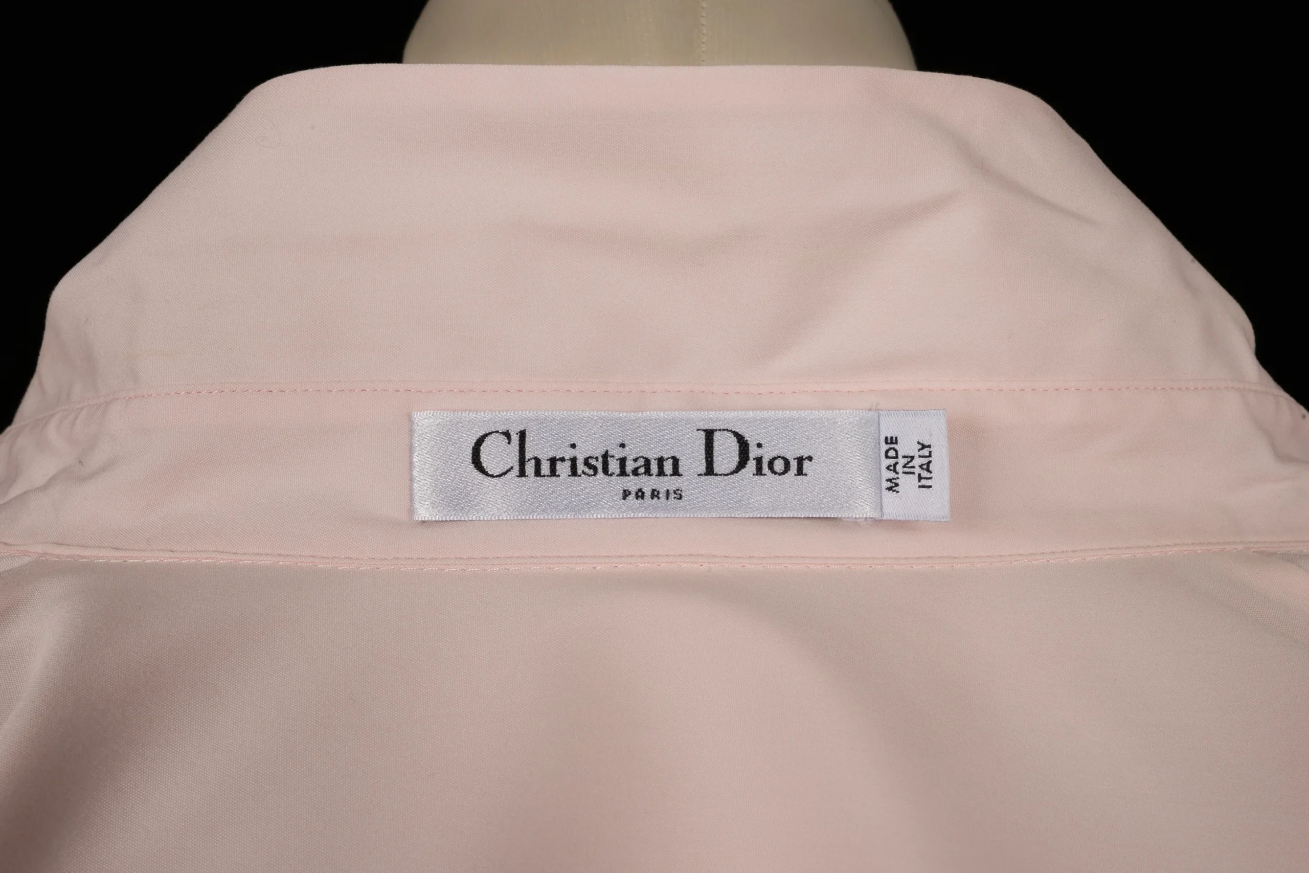 DIOR -(Made in Italy) Chemise en coton rose brodée au niveau de la manche. Taille 42FR. Condition : Très bon état Dimensions : Largeur d’épaules : 42 cm – Longueur des manches : 65 cm – Longueur : 70 cm
