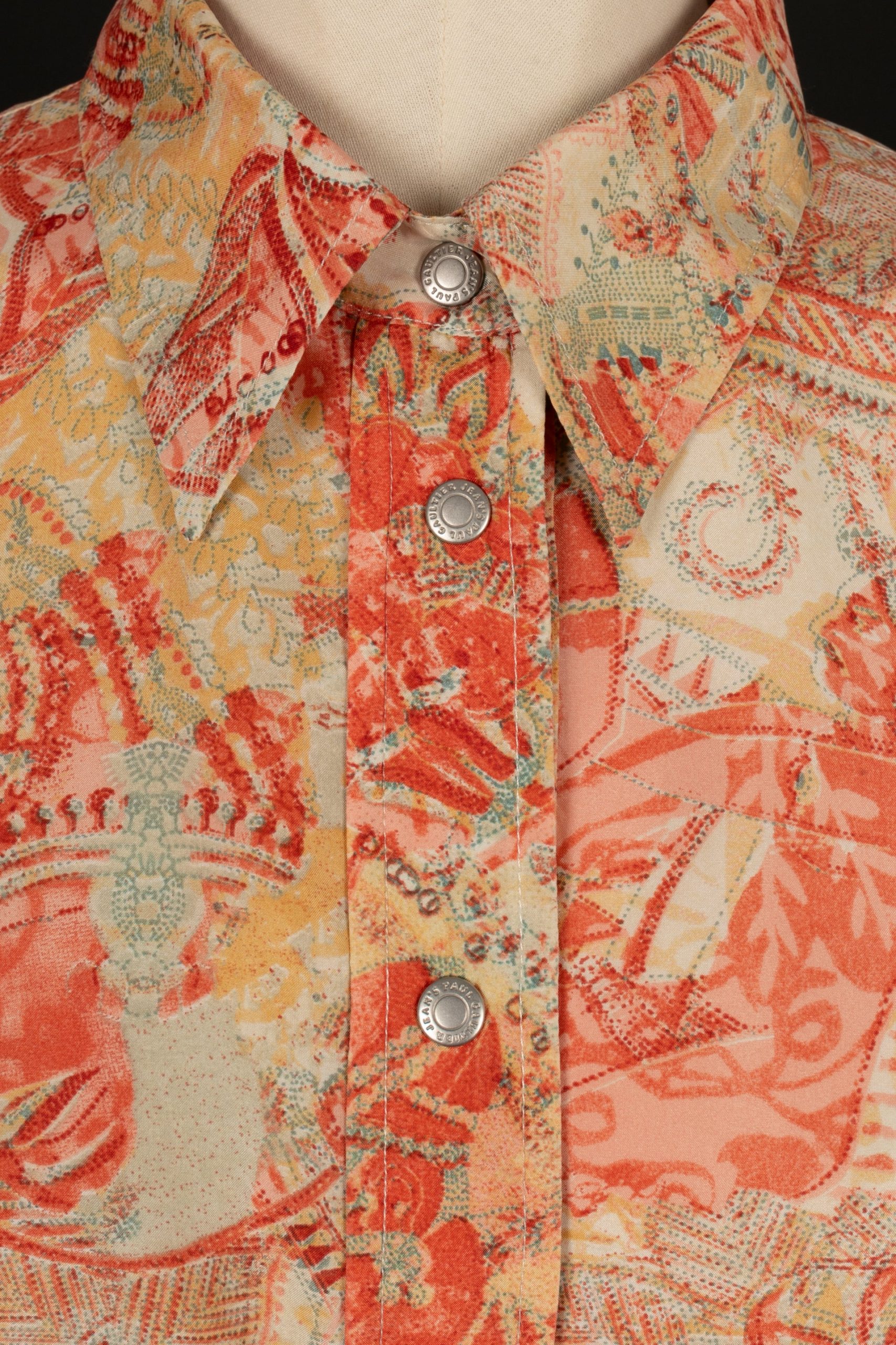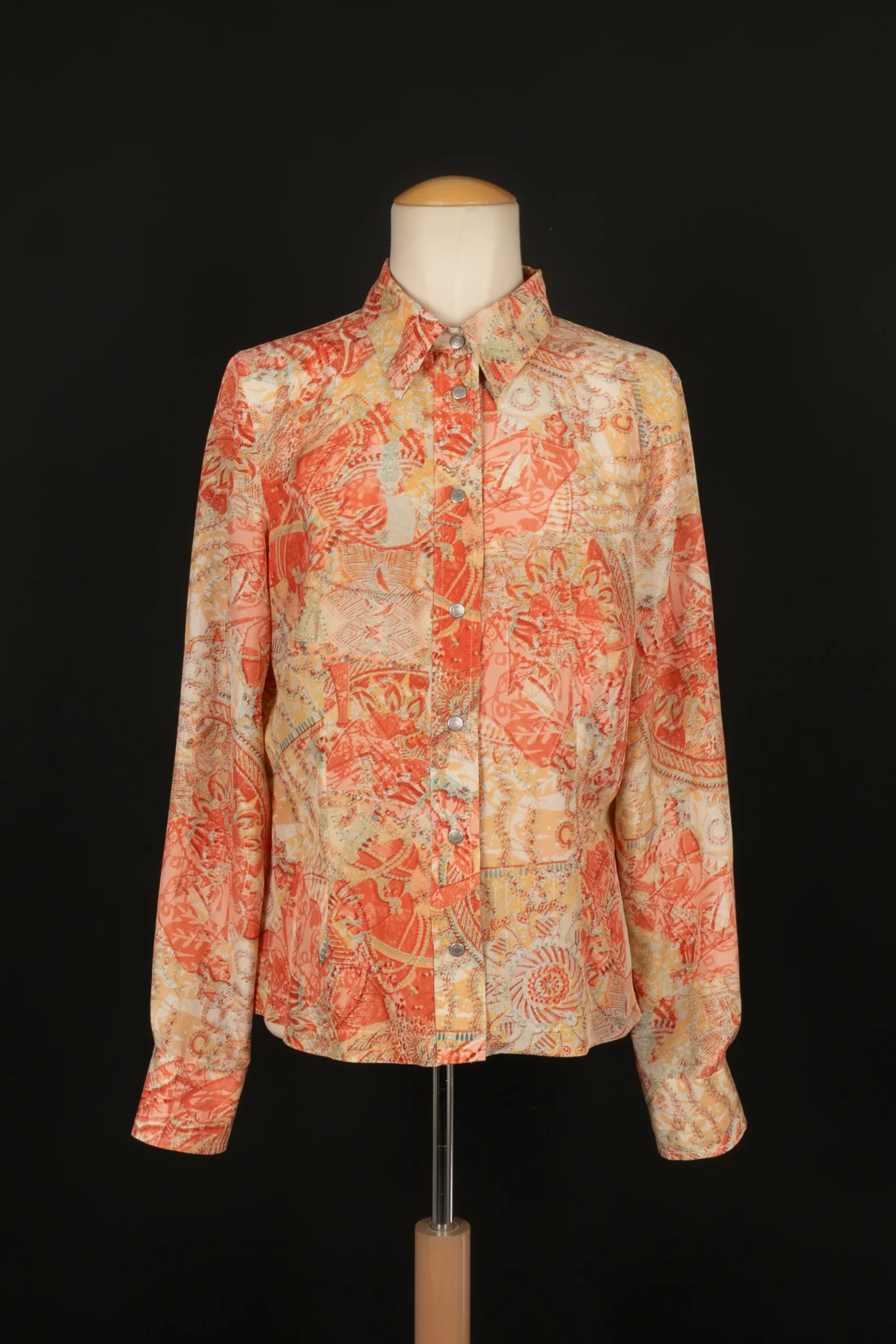 JEAN-PAUL GAULTIER -Chemise en soie à motifs. Taille indiquée L, il peut convenir à un 38FR.