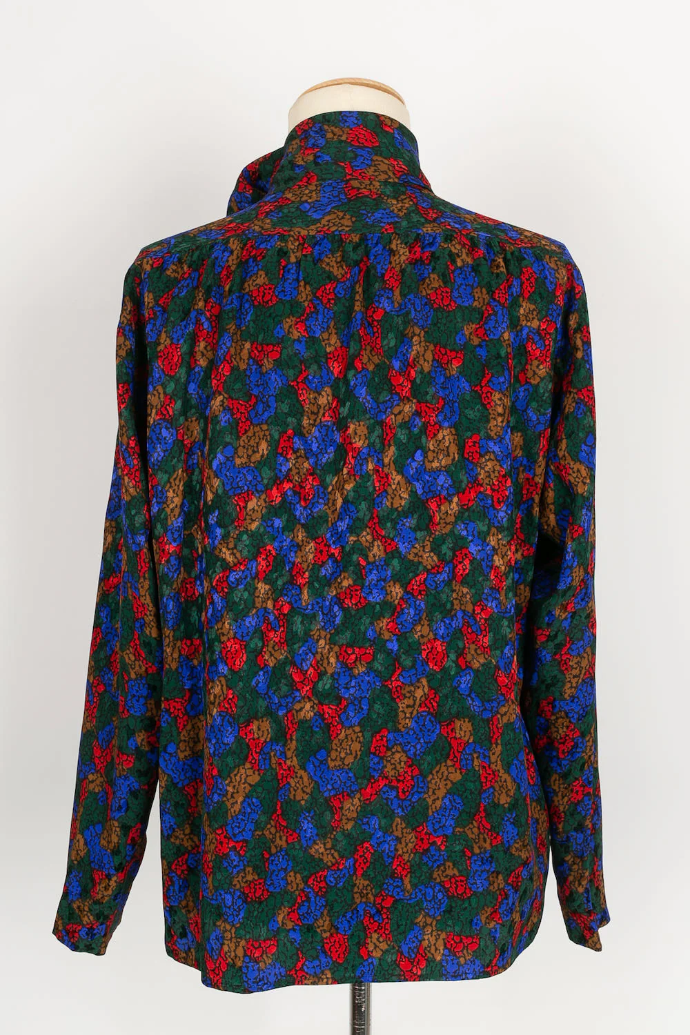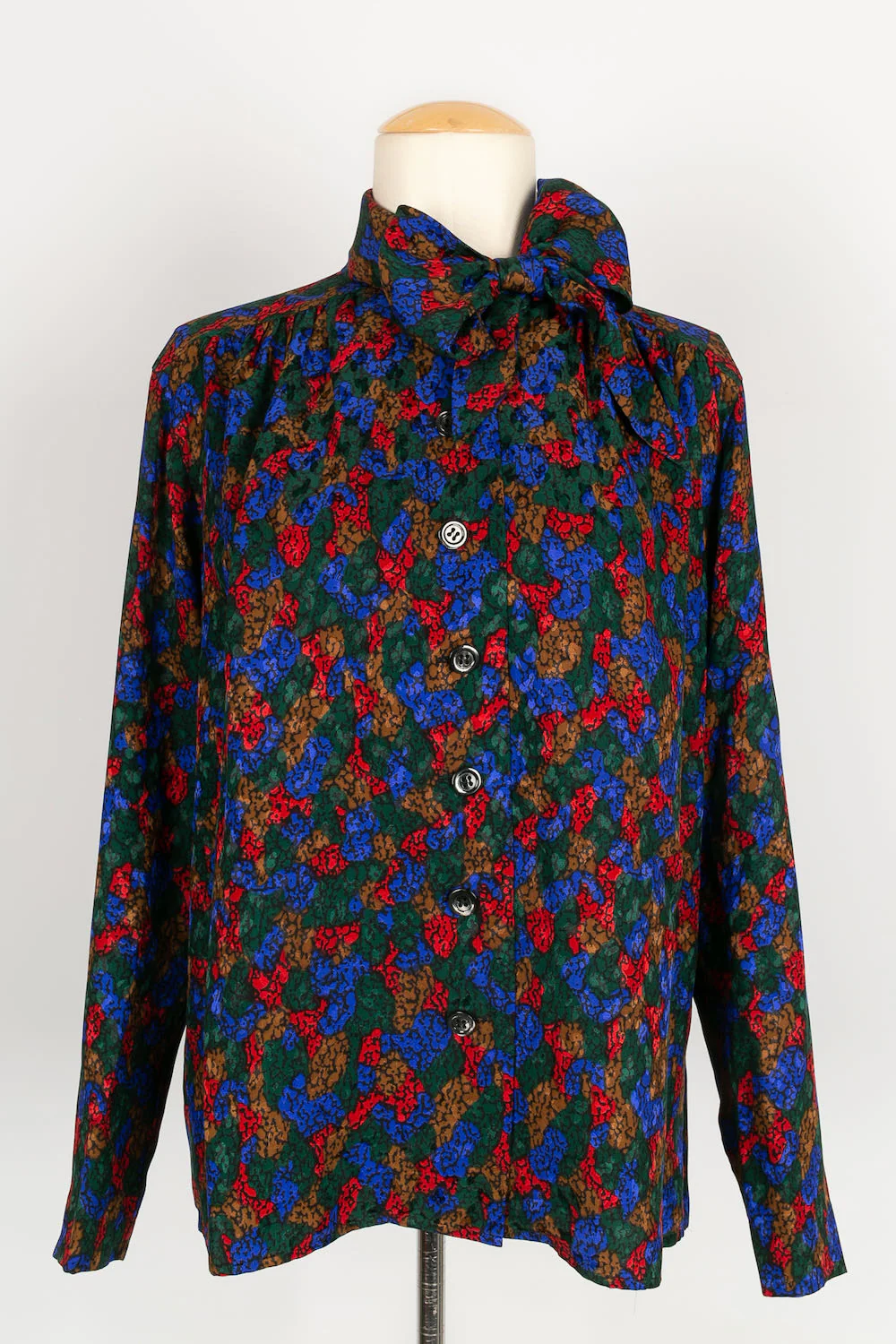 YVES SAINT LAURENT -(Made in France) Chemise vintage en soie multicolore. Marquée taille 40FR, elle convient à un 38FR.