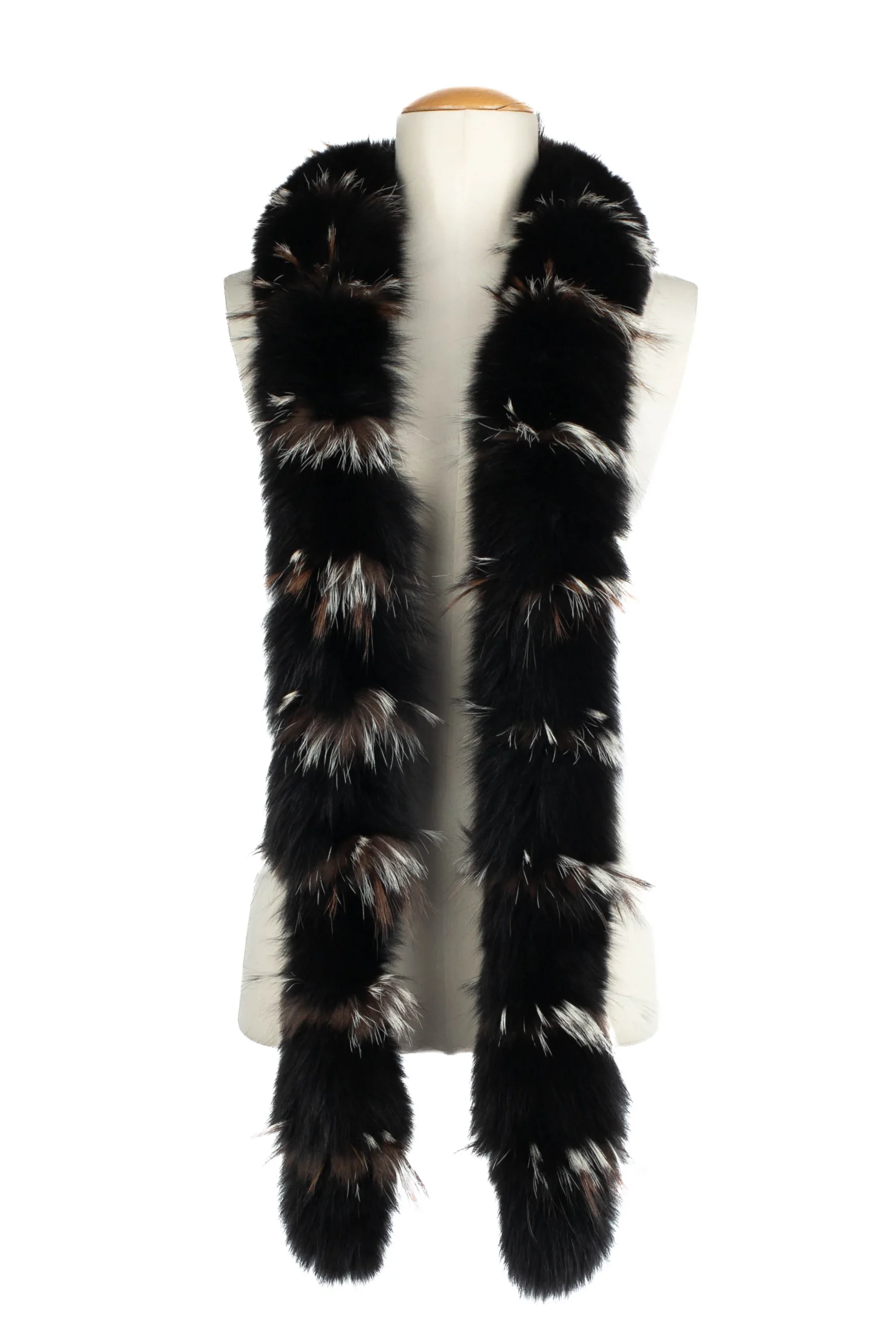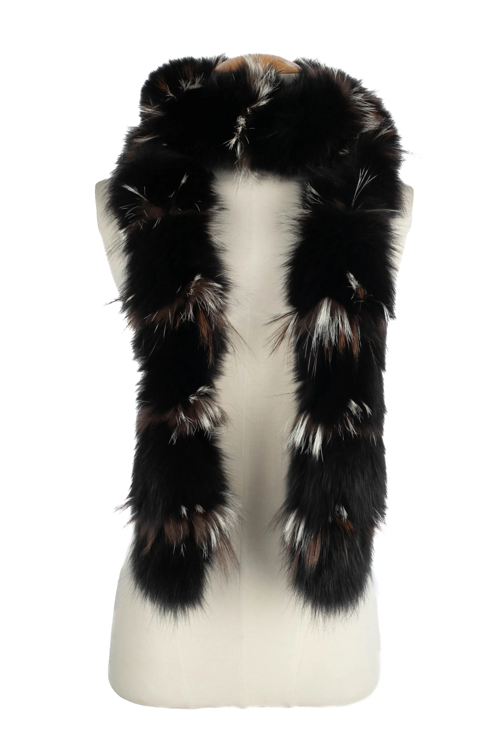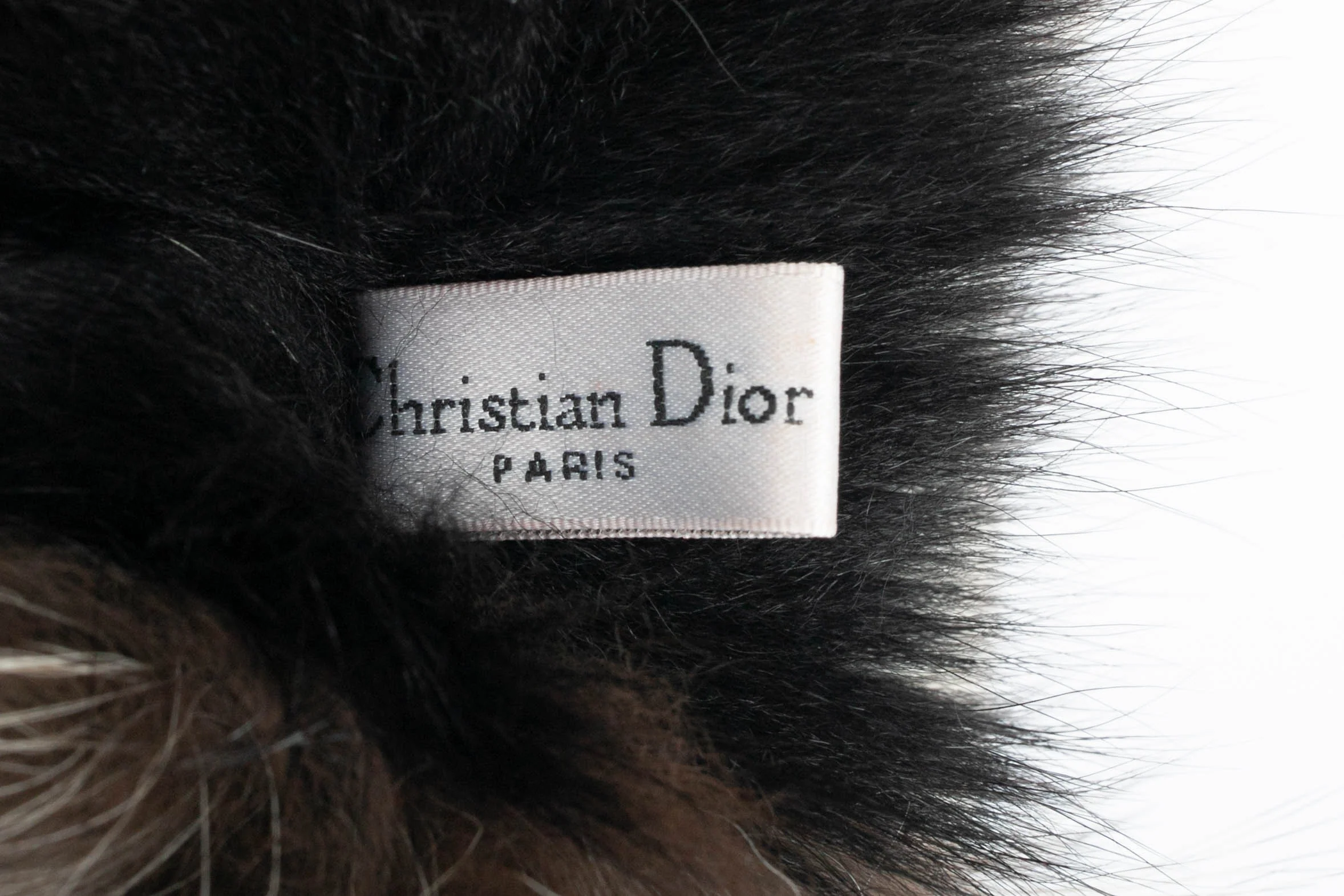 DIOR – (Made in France) Col en fourrure noir, marron et blanc.