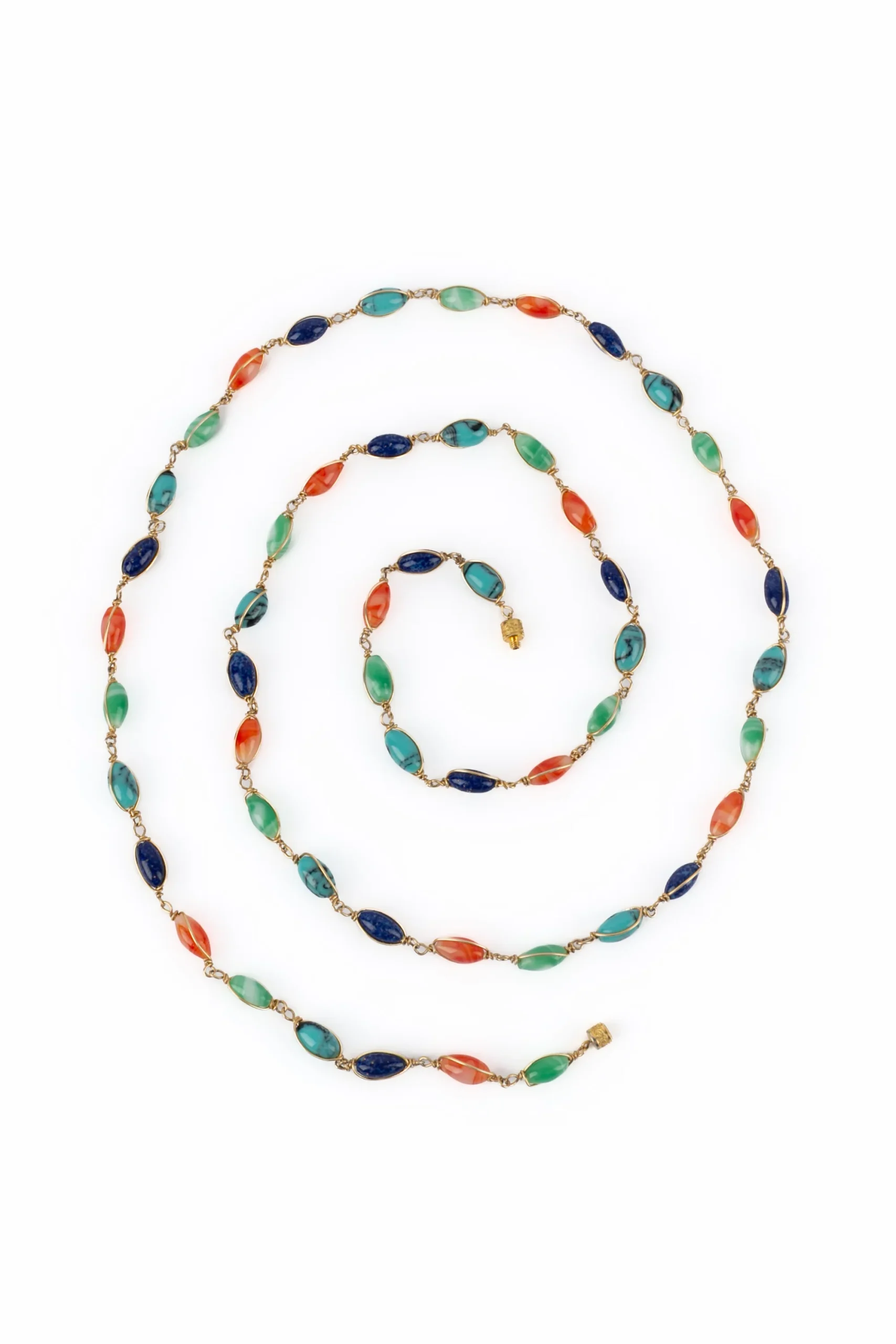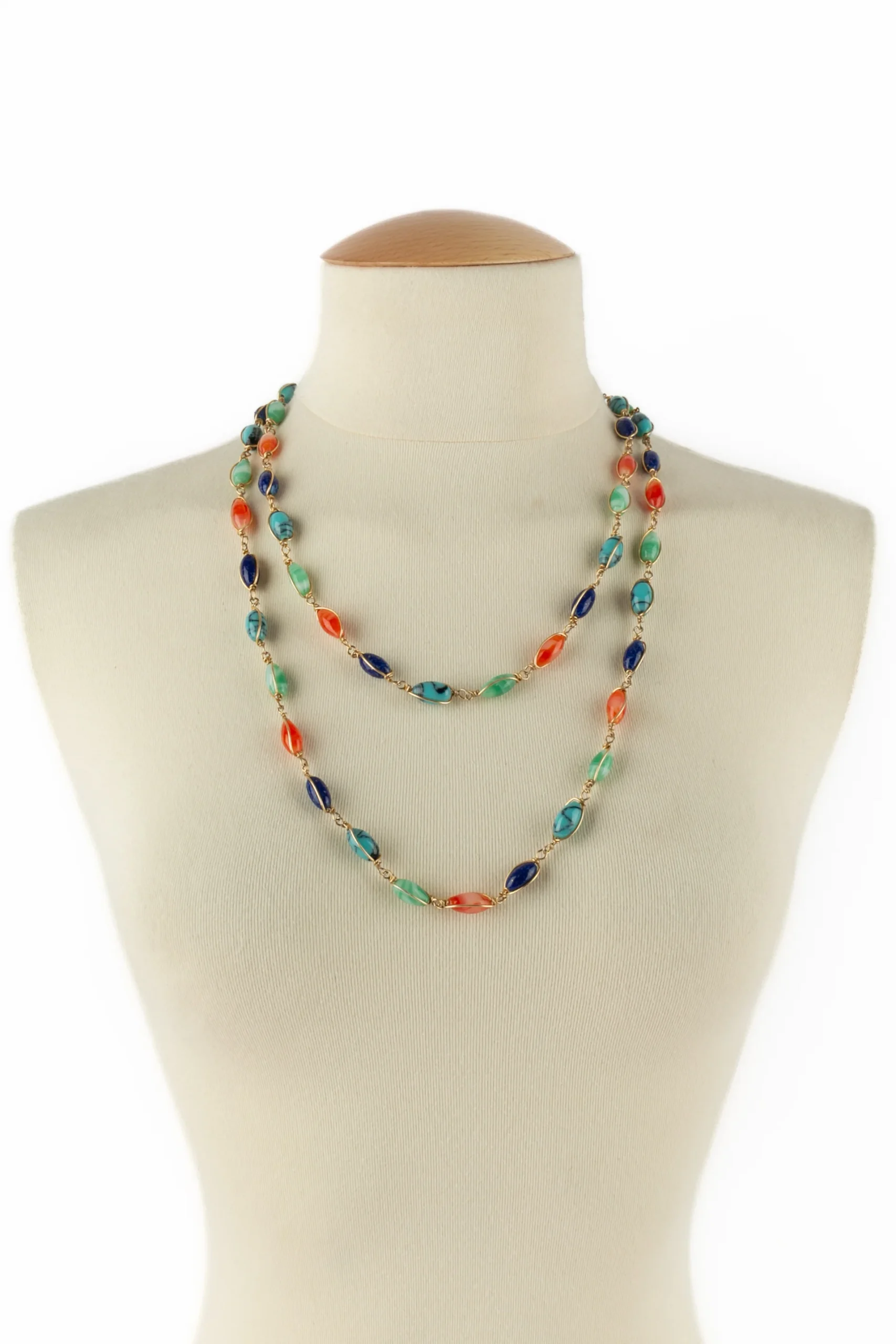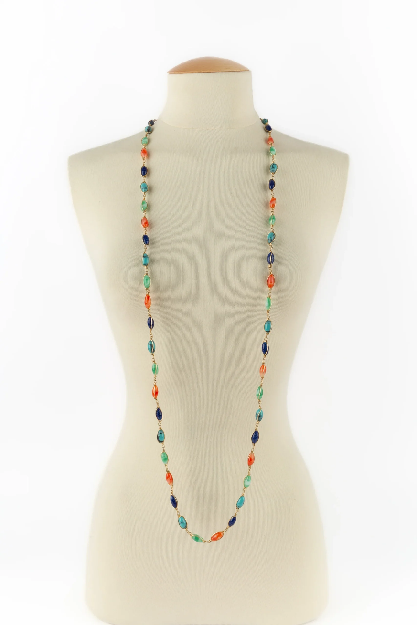 ANONYME -Collier en métal doré et perles en pâte de verre multicolore. Condition : Très bon état Dimensions : Longueur : 128 cm