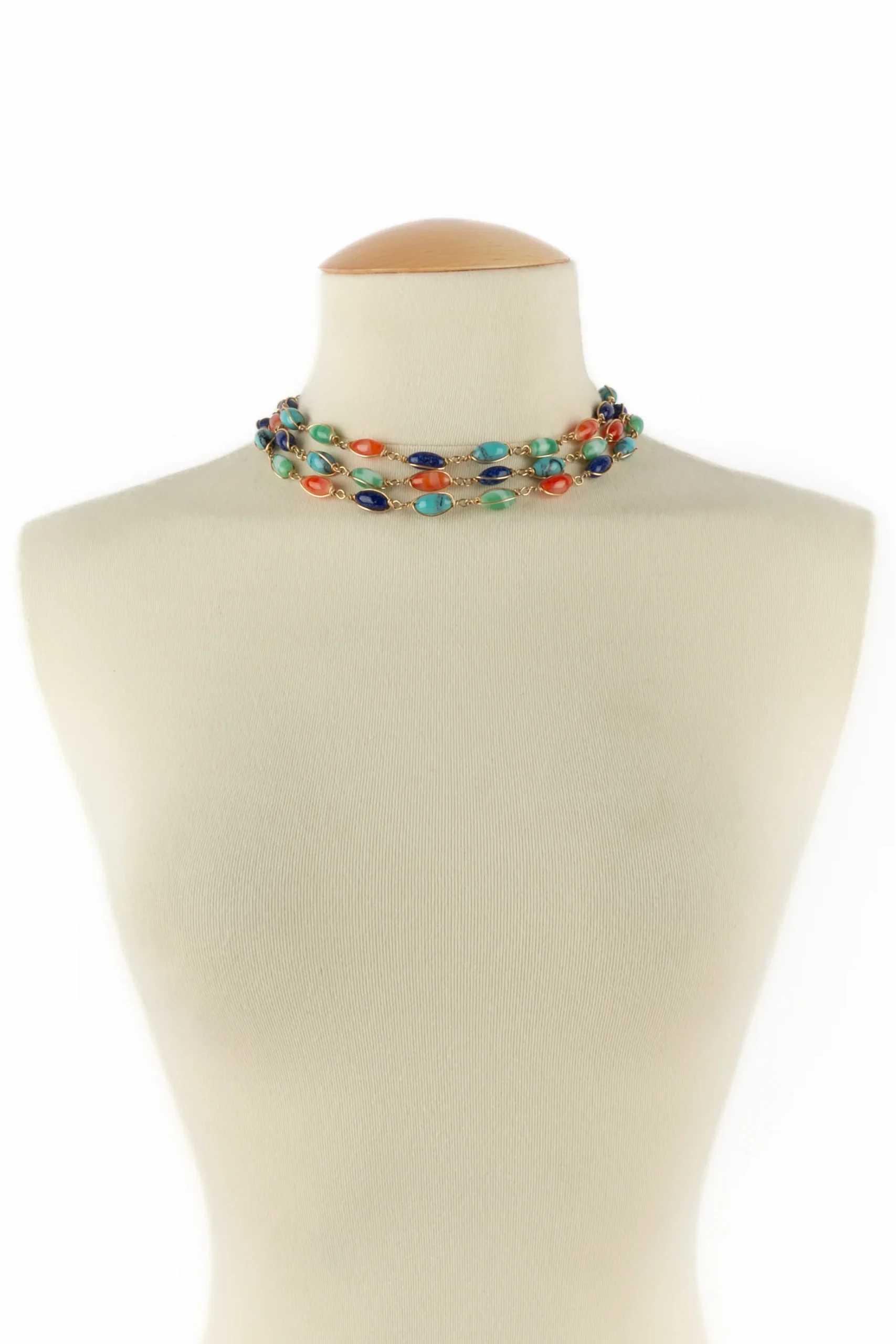 ANONYME -Collier en métal doré et perles en pâte de verre multicolore.