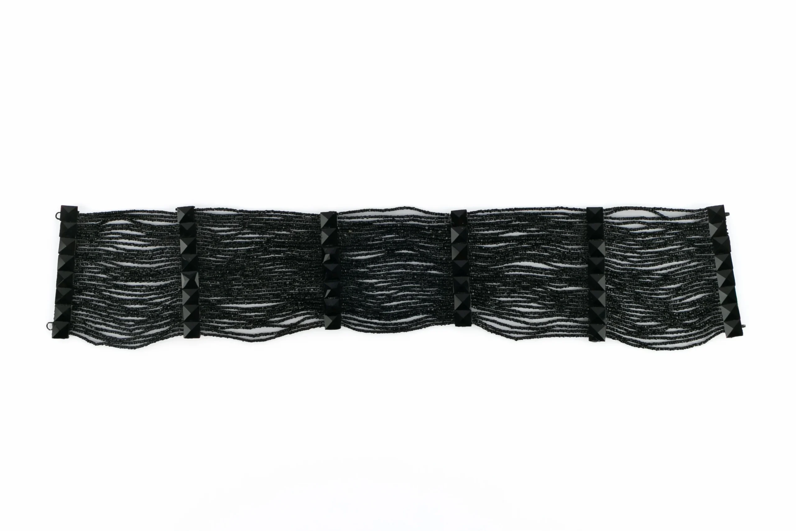 ANONYME – Collier ras de cou en métal argenté foncé, multi-rangs de perles noires entrecoupées de strass noirs. Epoque Napoléon III. Condition : Très bon état Dimensions : Longueur : 34 cm