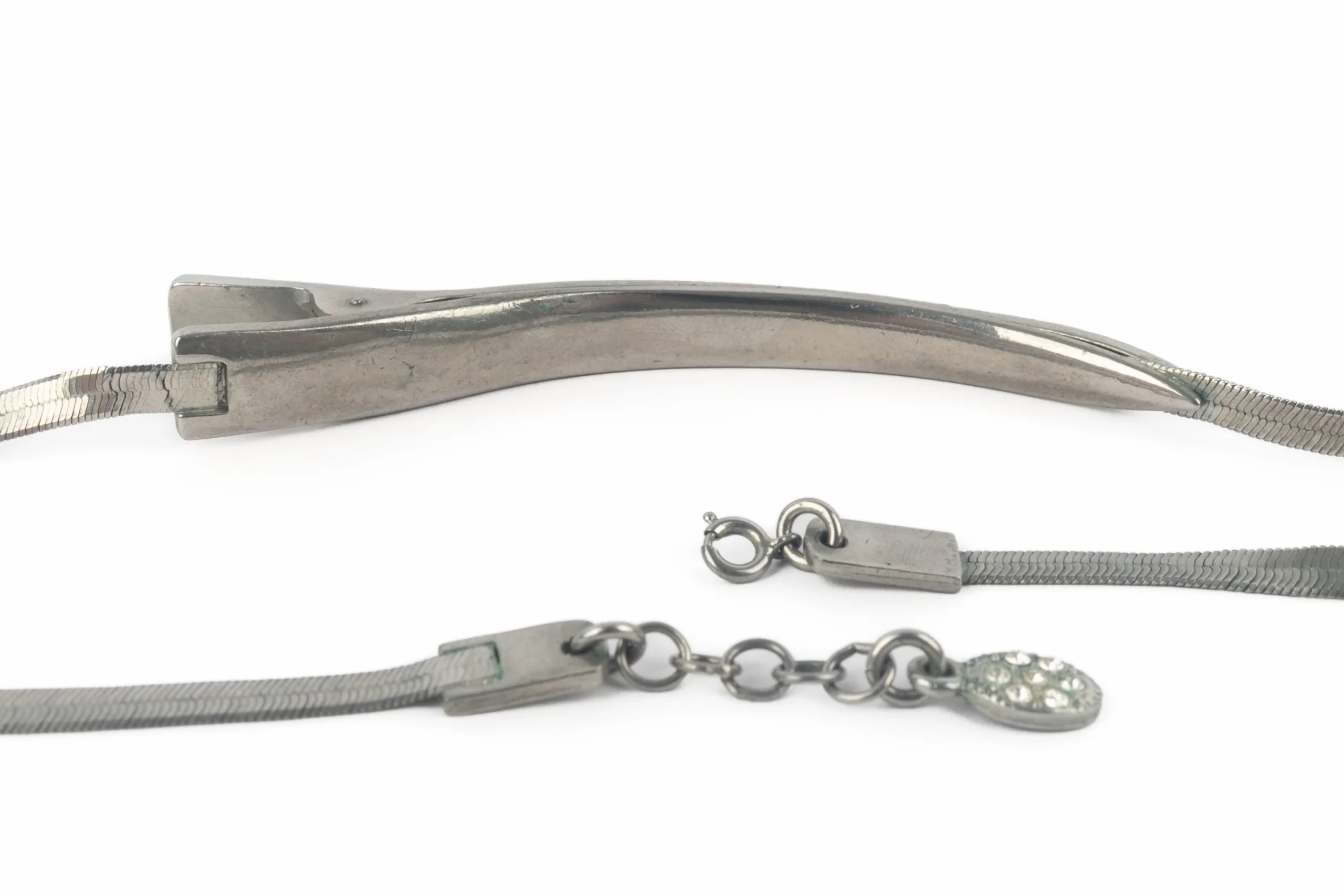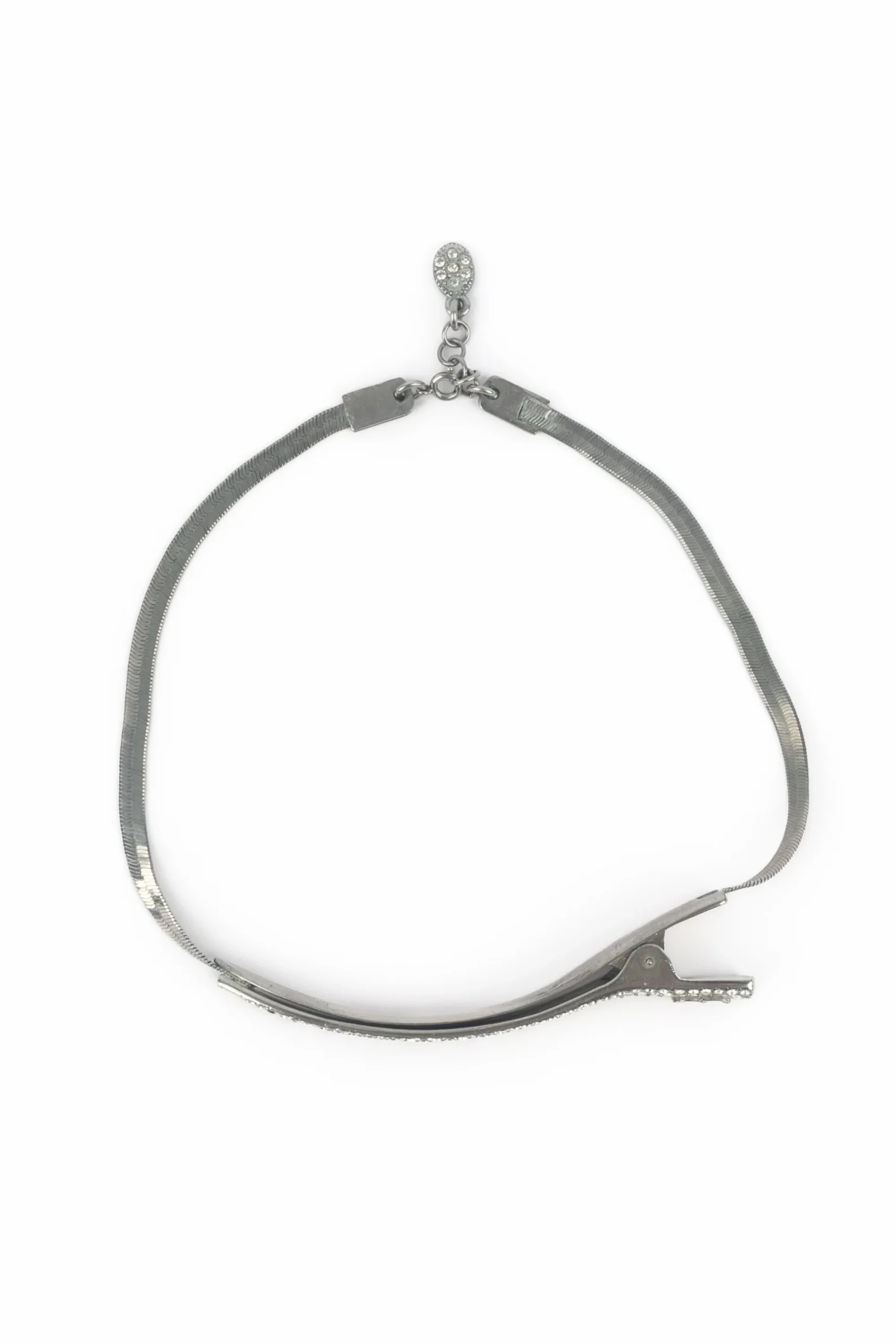 DIOR – (Made in France) Collier court en métal argenté et strass figurant une barrette. Bijou datant des années 2000 sous la direction artistique de John Galliano.