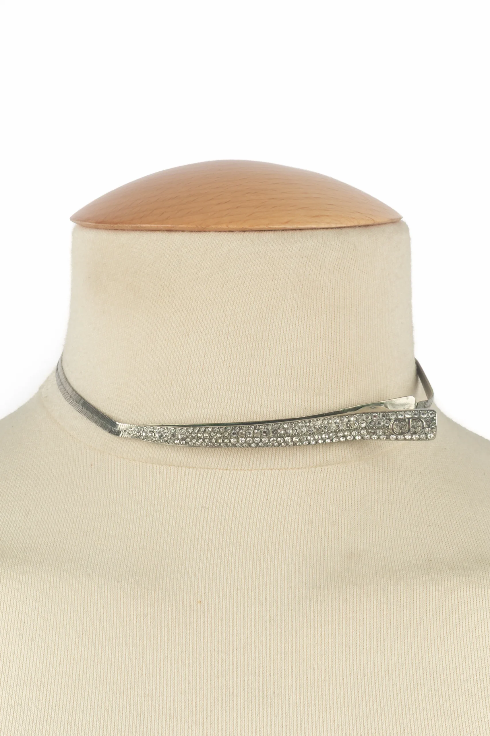 DIOR – (Made in France) Collier court en métal argenté et strass figurant une barrette. Bijou datant des années 2000 sous la direction artistique de John Galliano. Condition : Très bon état Dimensions : Longueur : de 33 cm à 36 cm