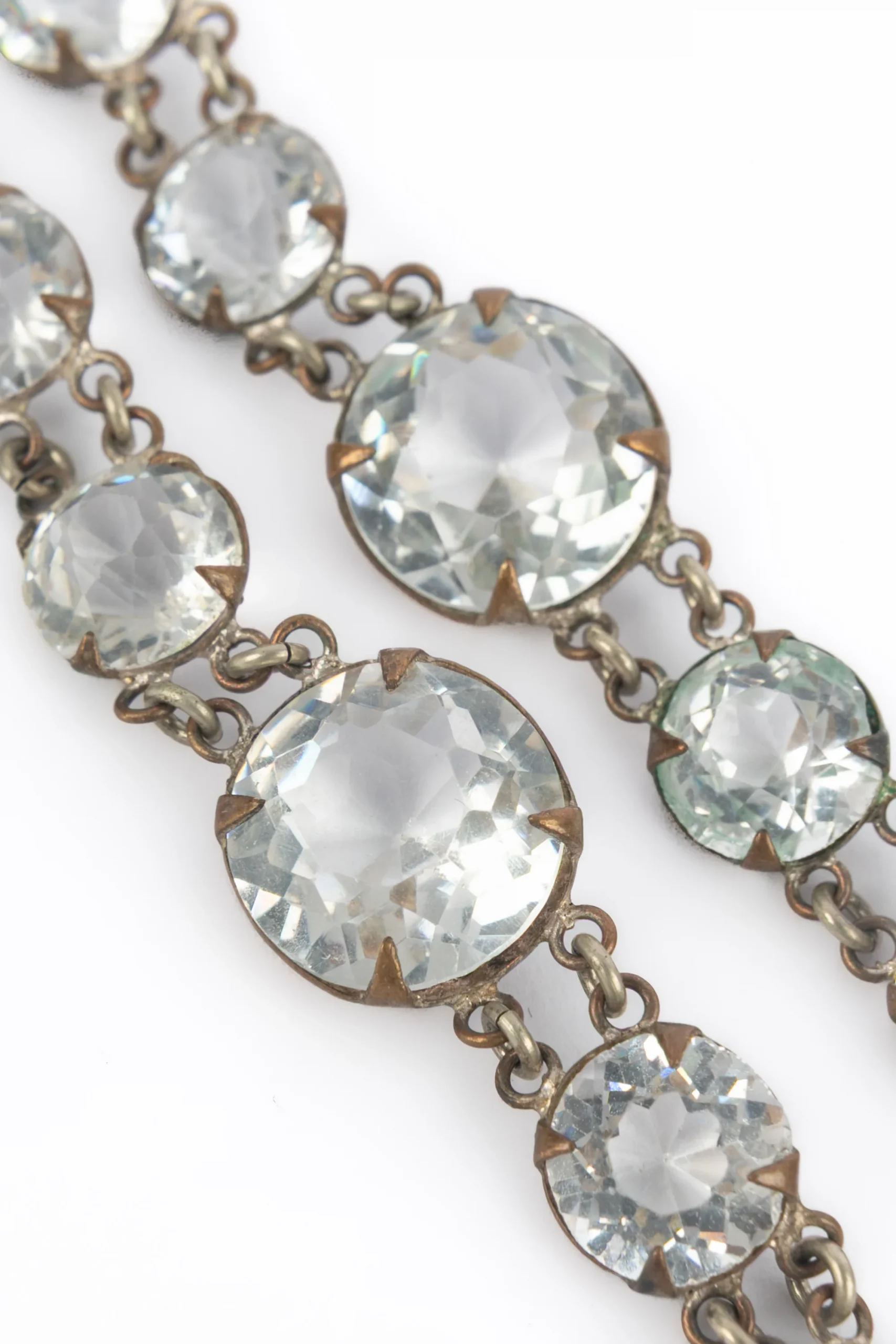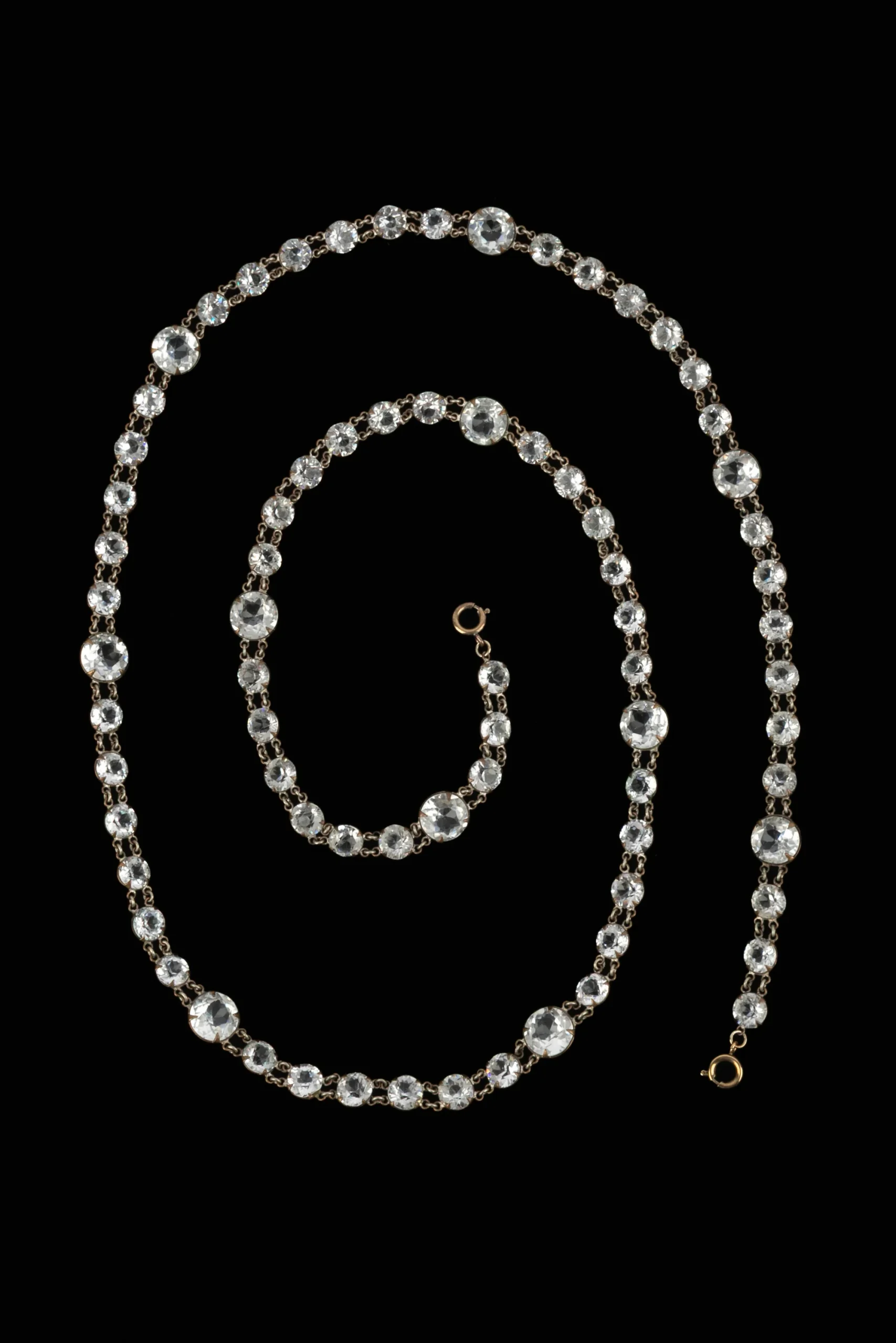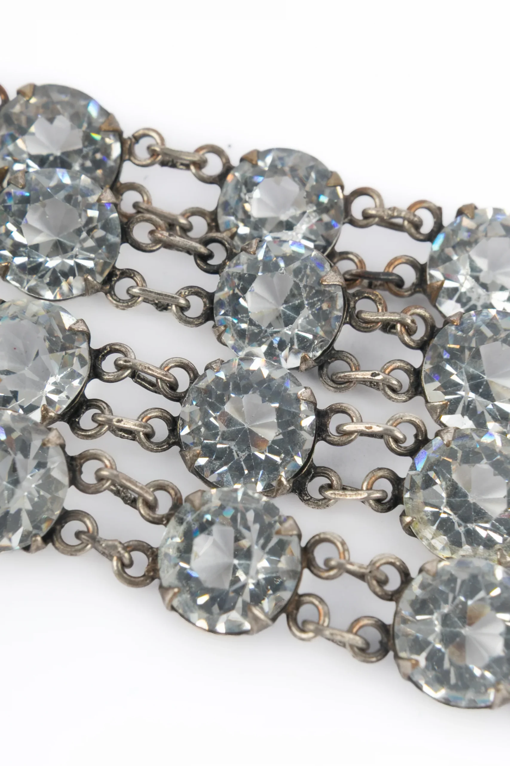 CHANEL – Collier sautoir en métal argenté et strass. Collection circa 1930 – époque Gabrielle Chanel. Bijou vendu avec un certificat.