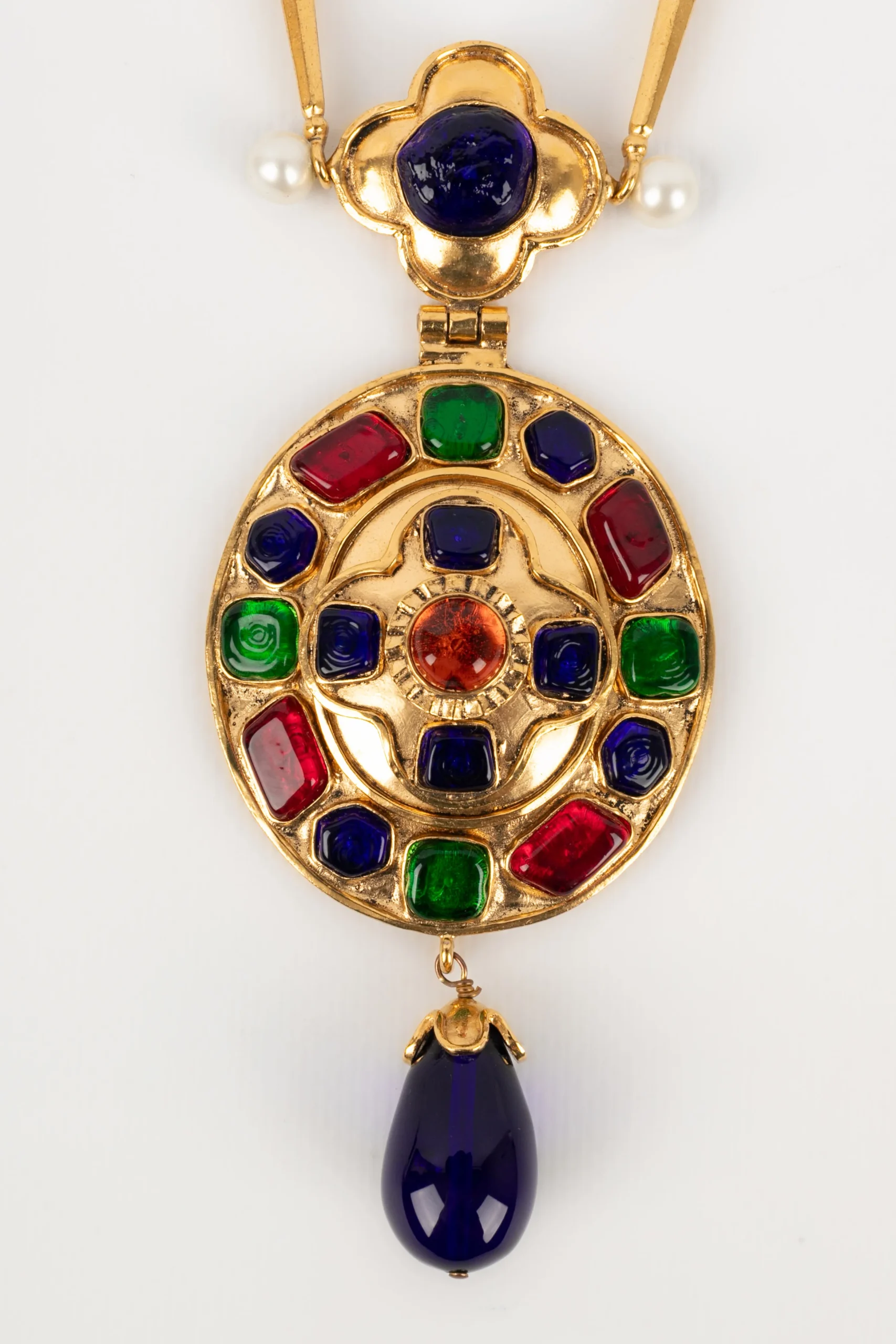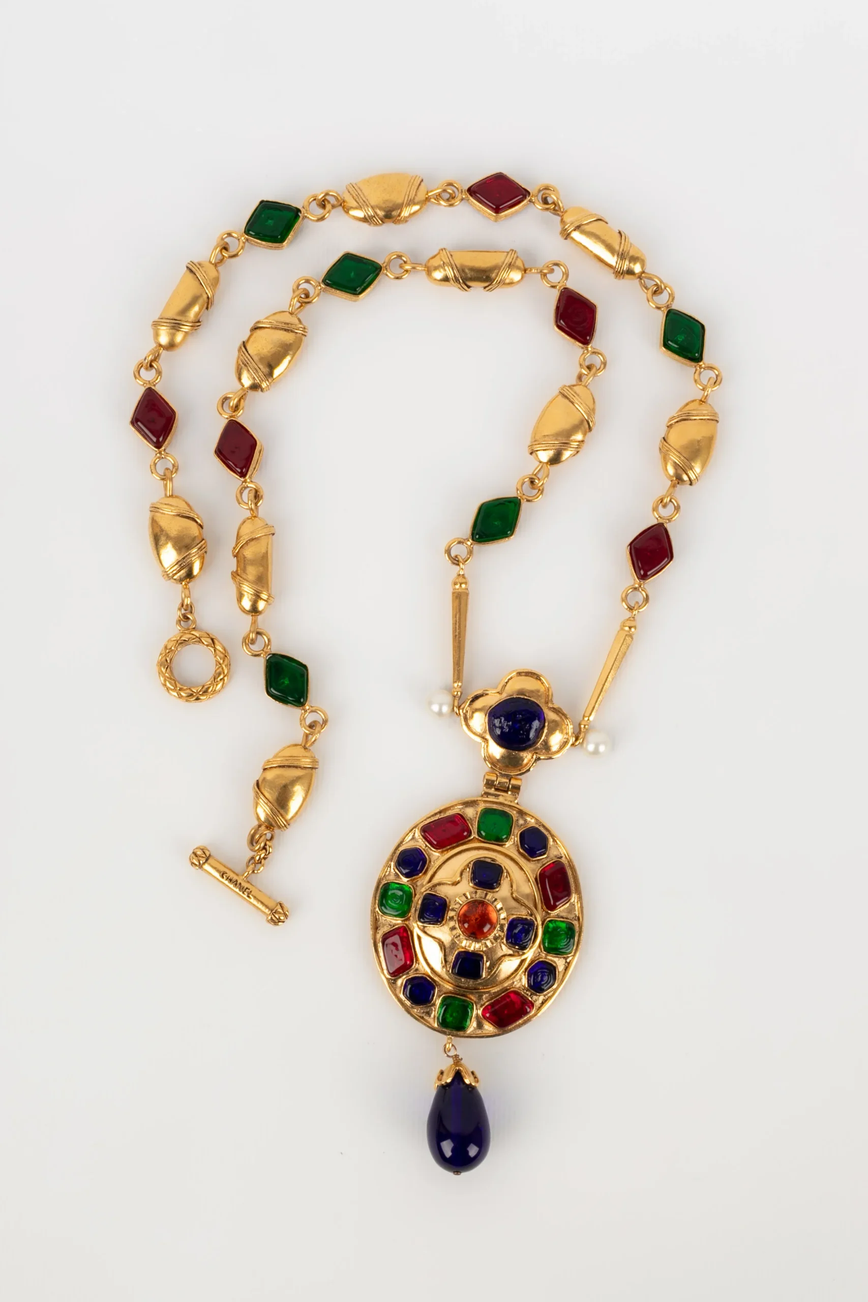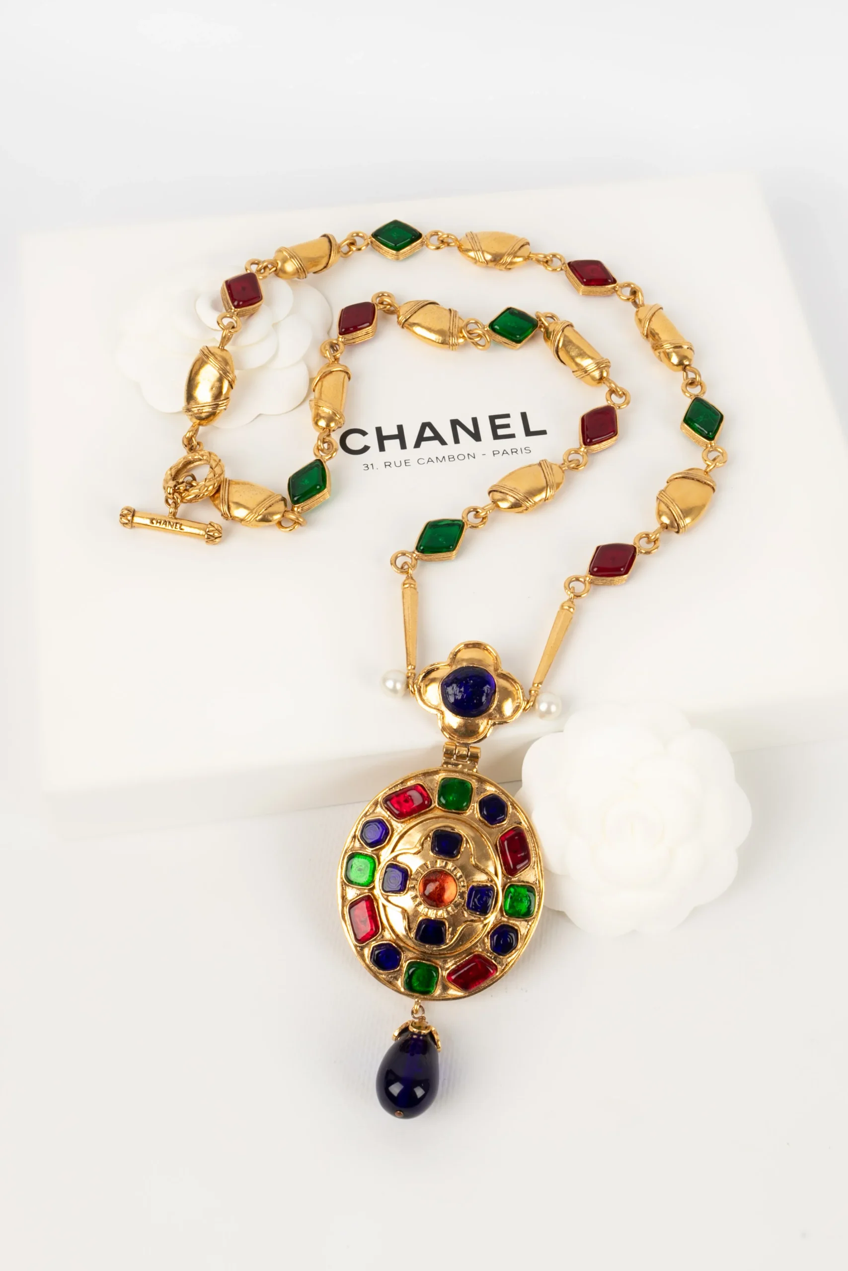 CHANEL -(Made in France) Collier en métal doré et cabochons en pâte de verre. Collection Automne-Hiver 1994.