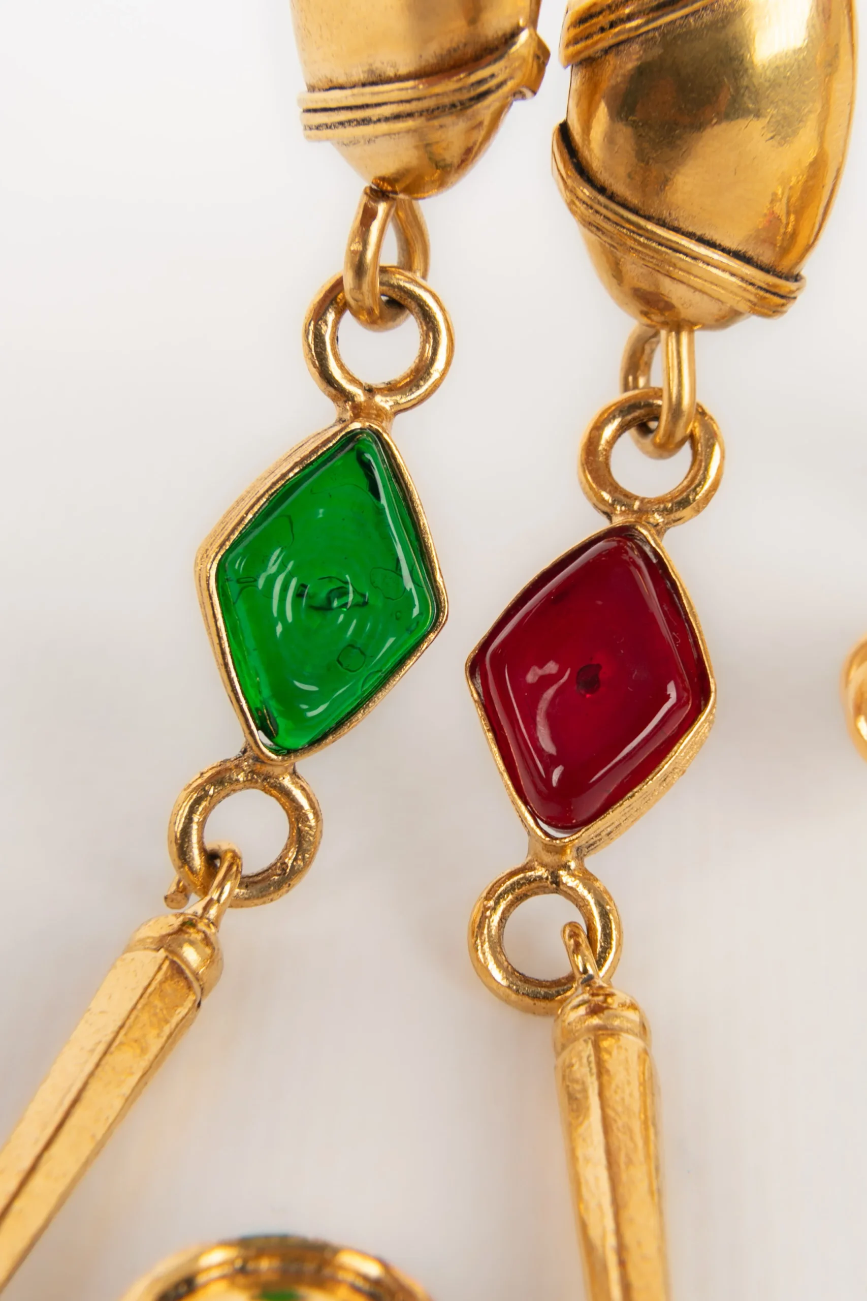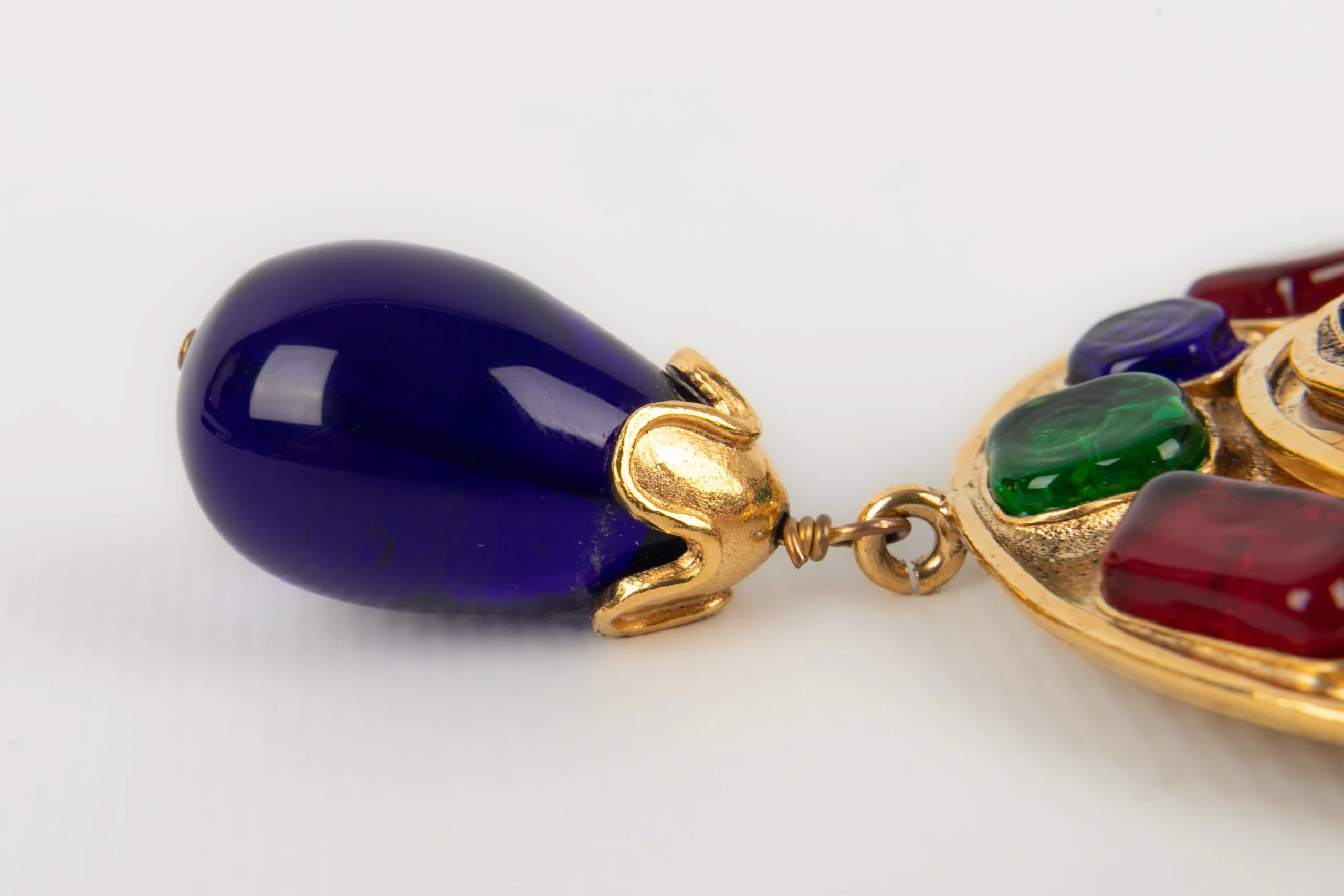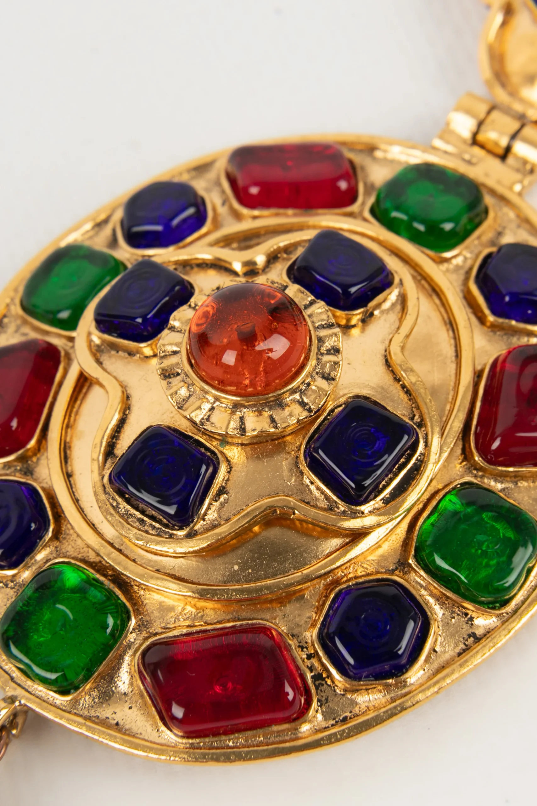 CHANEL -(Made in France) Collier en métal doré et cabochons en pâte de verre. Collection Automne-Hiver 1994.
