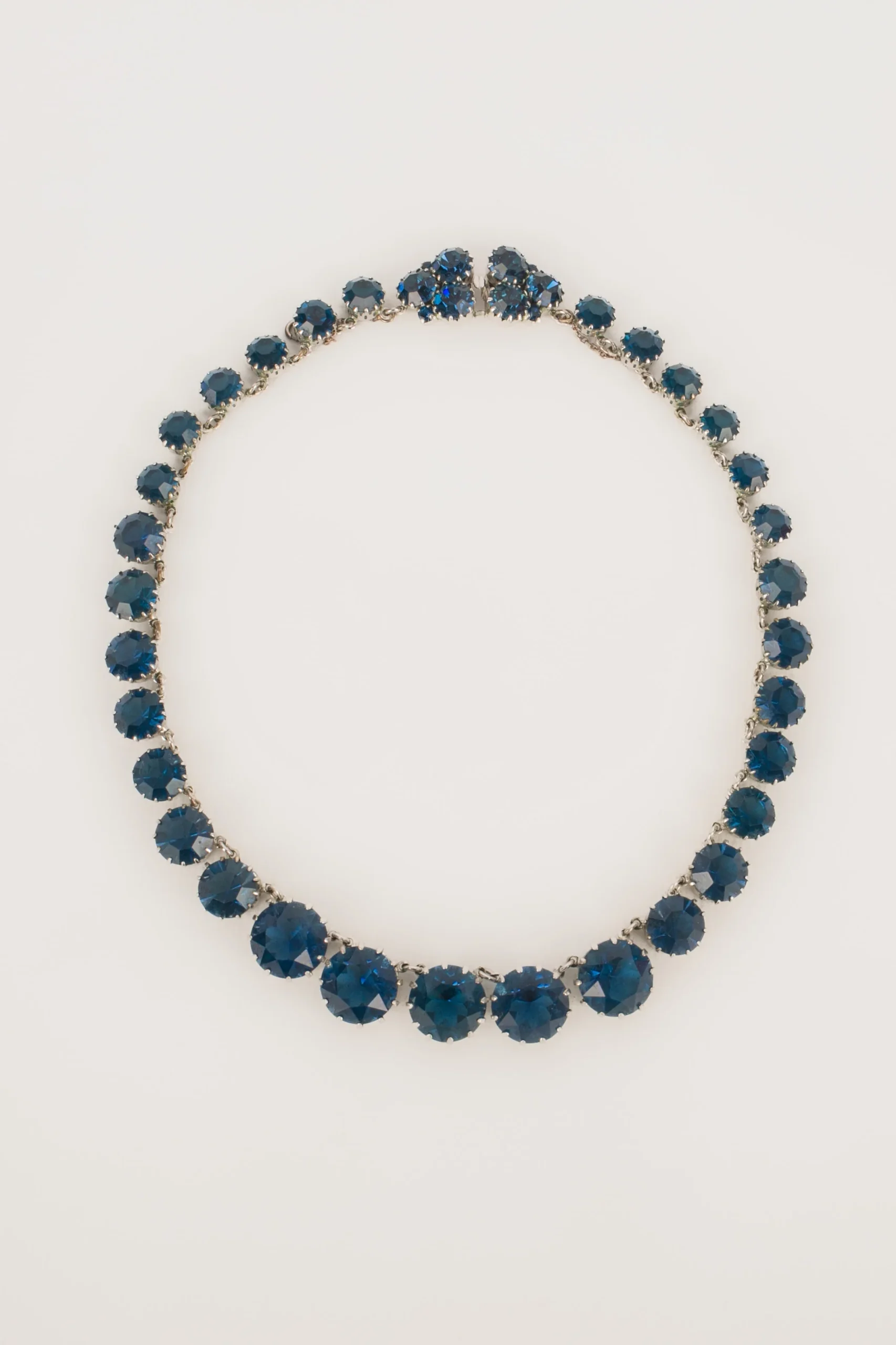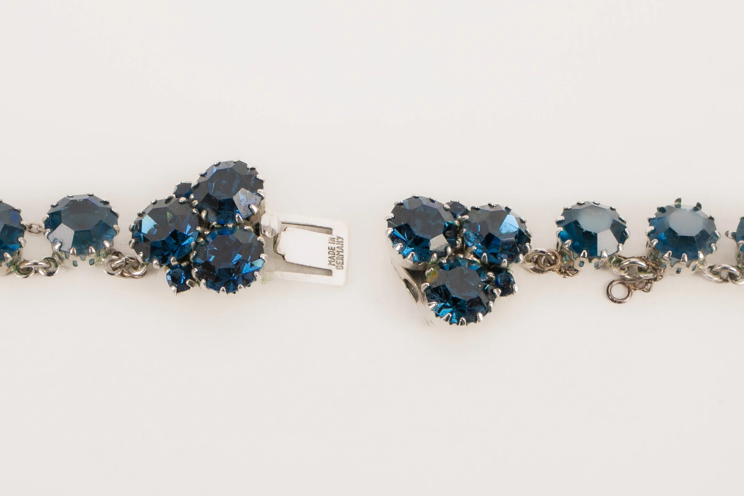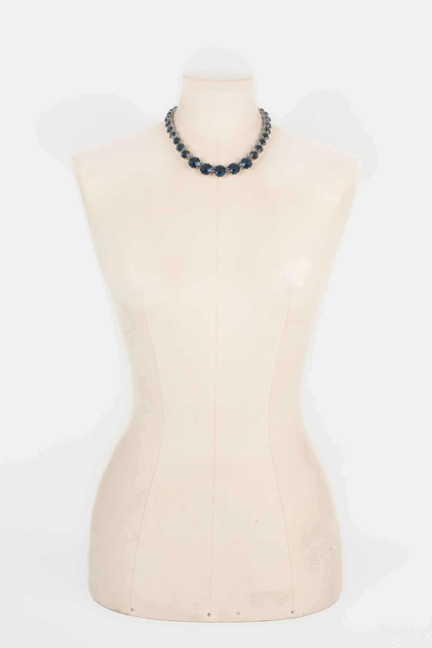 DIOR -Collier en métal argenté serti de strass bleus. Collection 1962 par Marc Bohan.