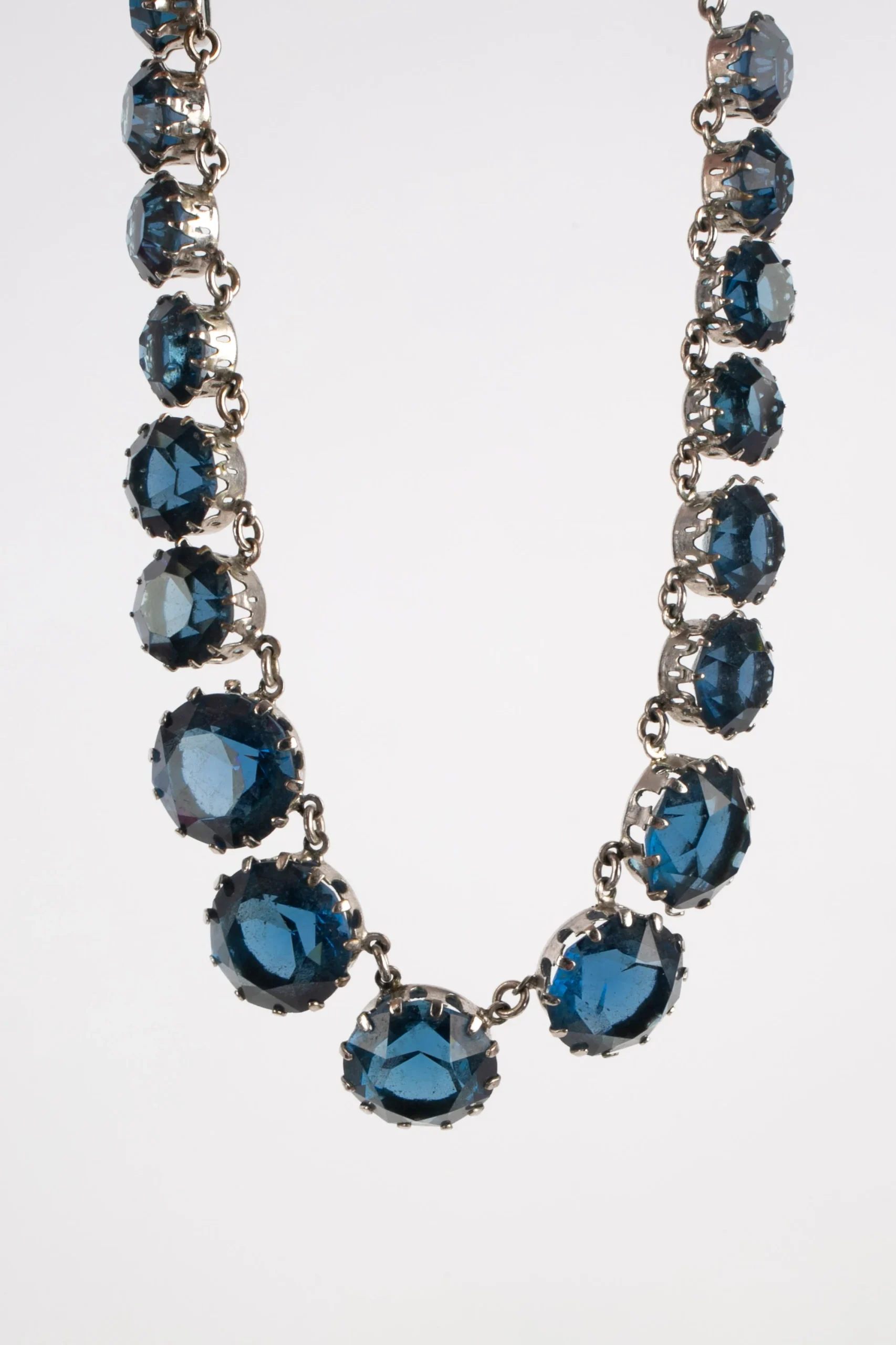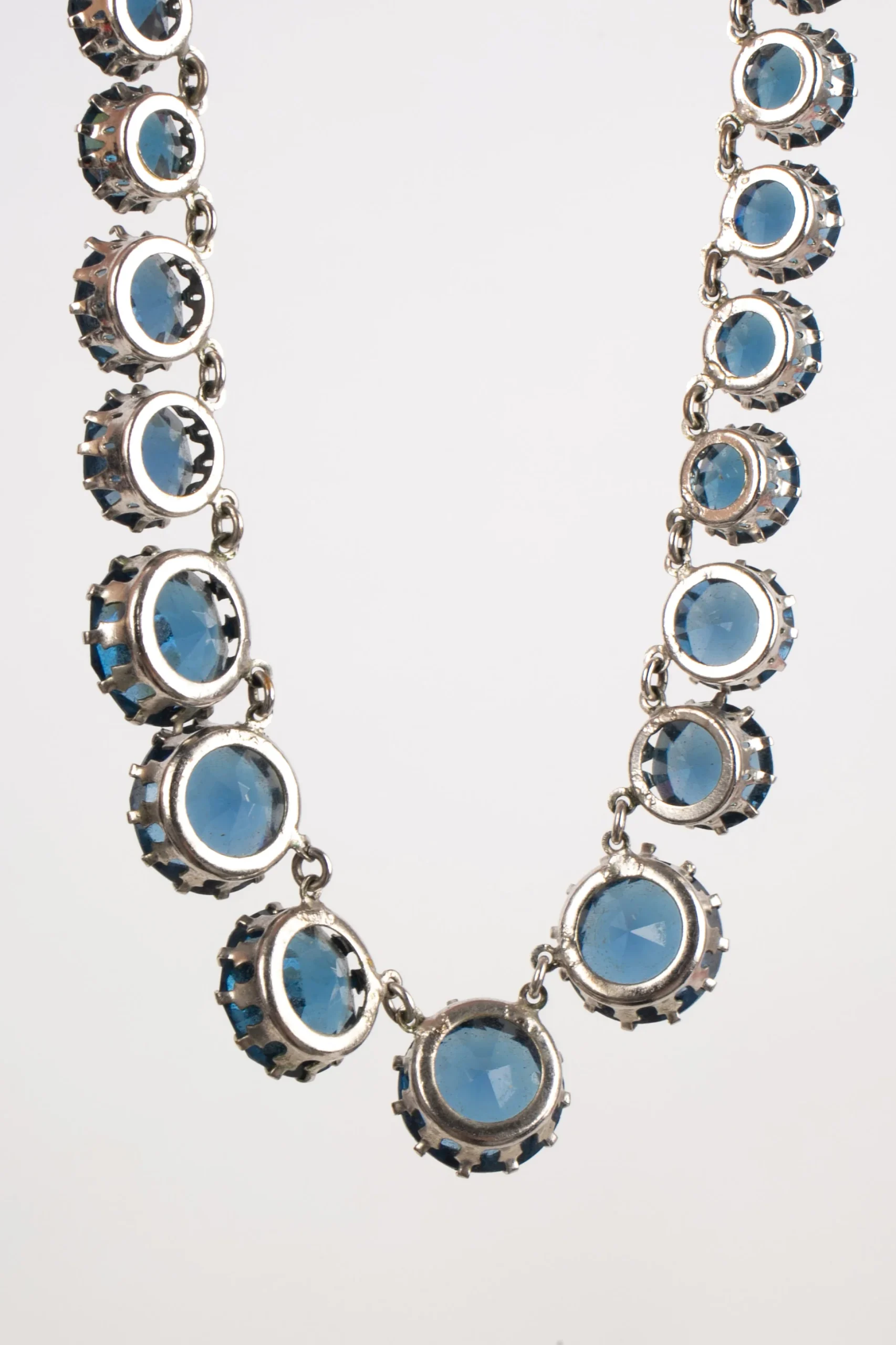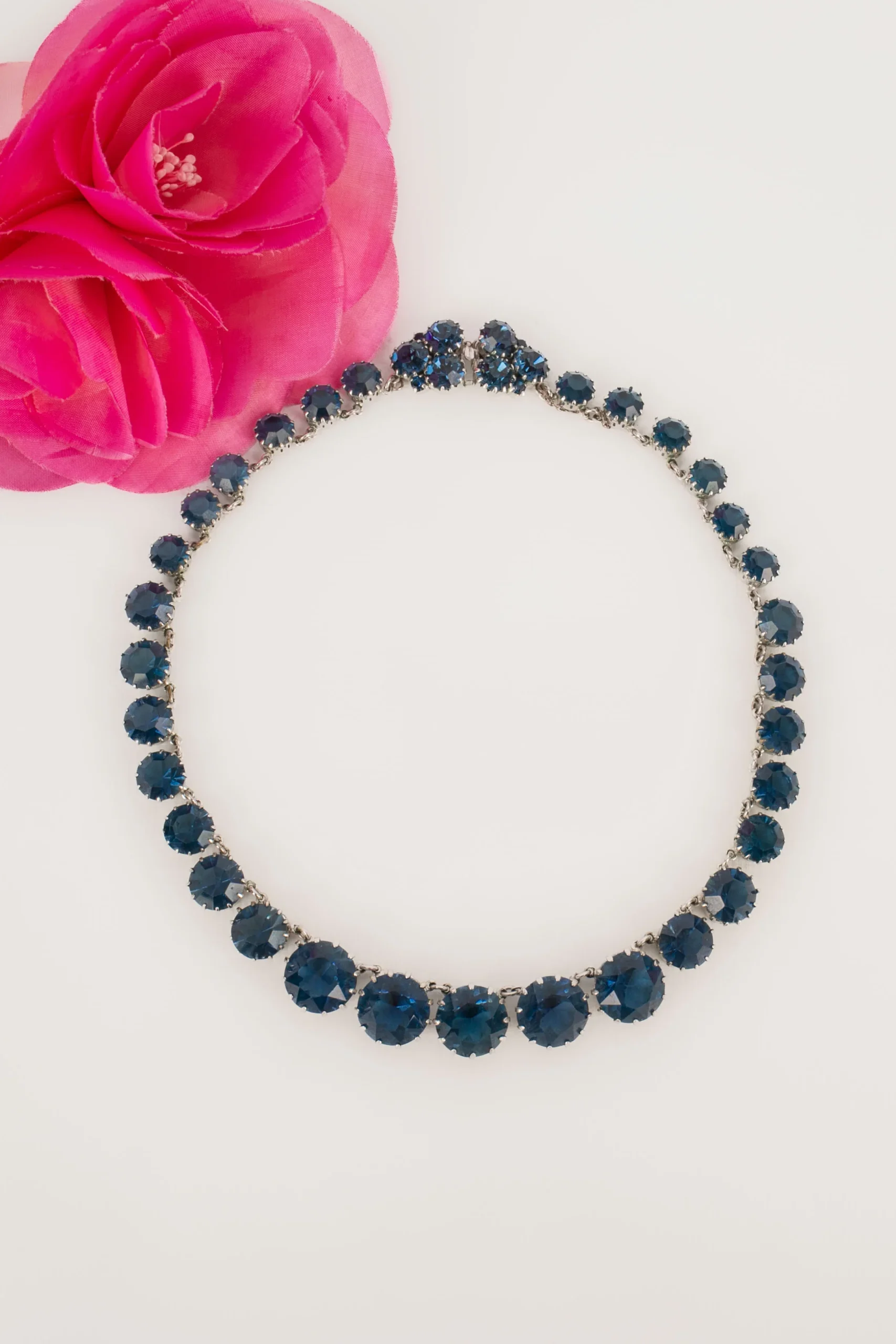 DIOR -Collier en métal argenté serti de strass bleus. Collection 1962 par Marc Bohan.