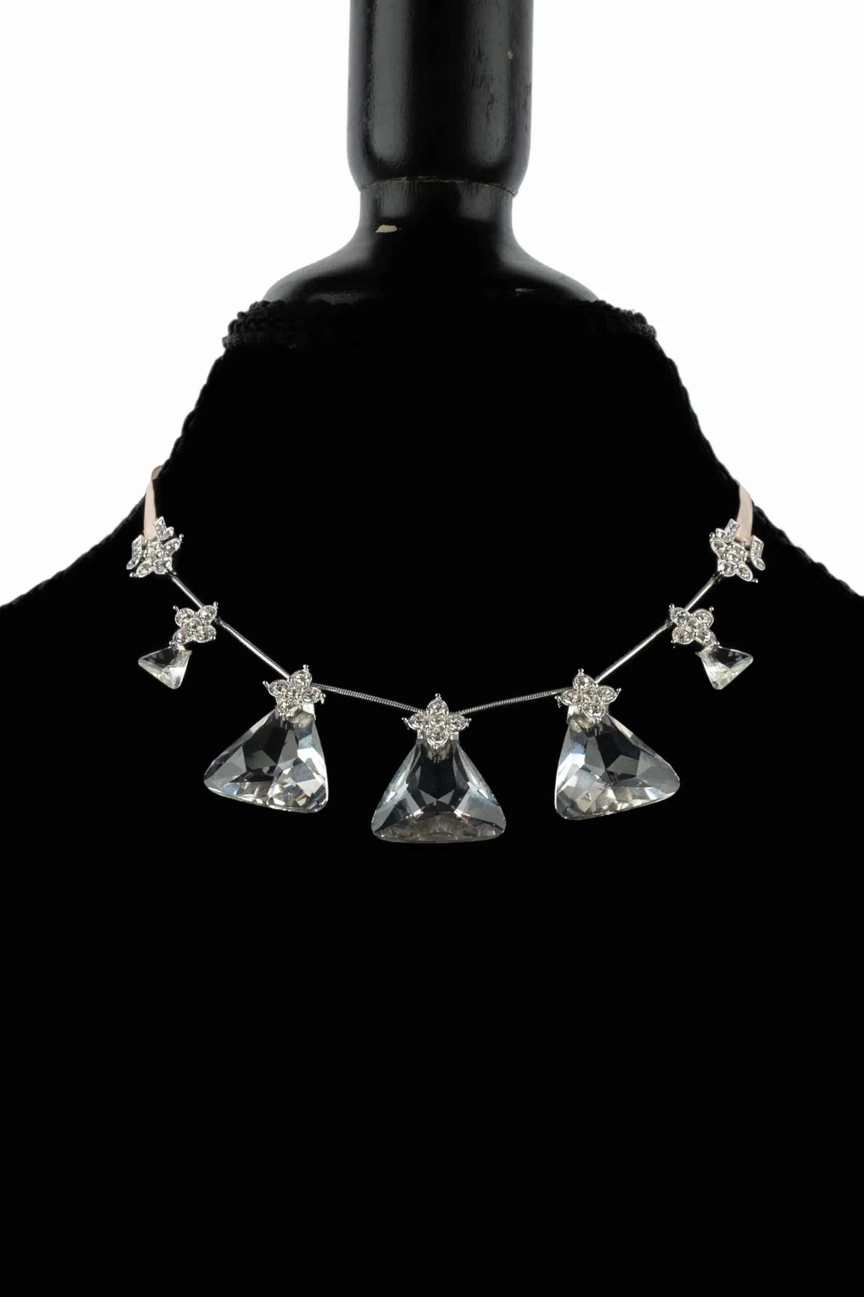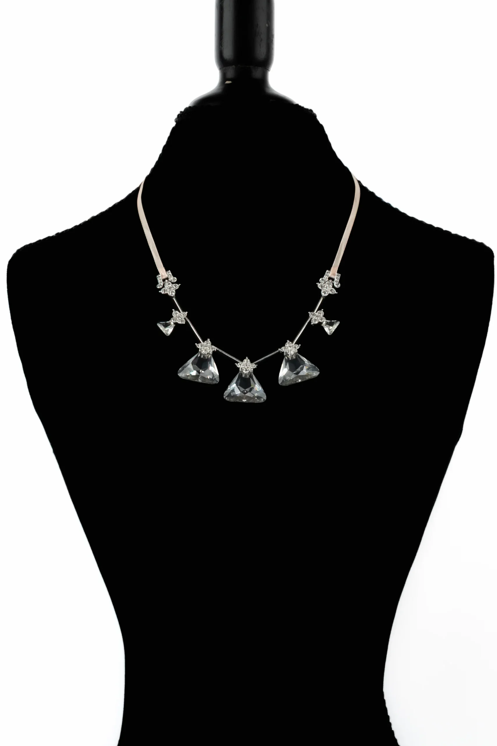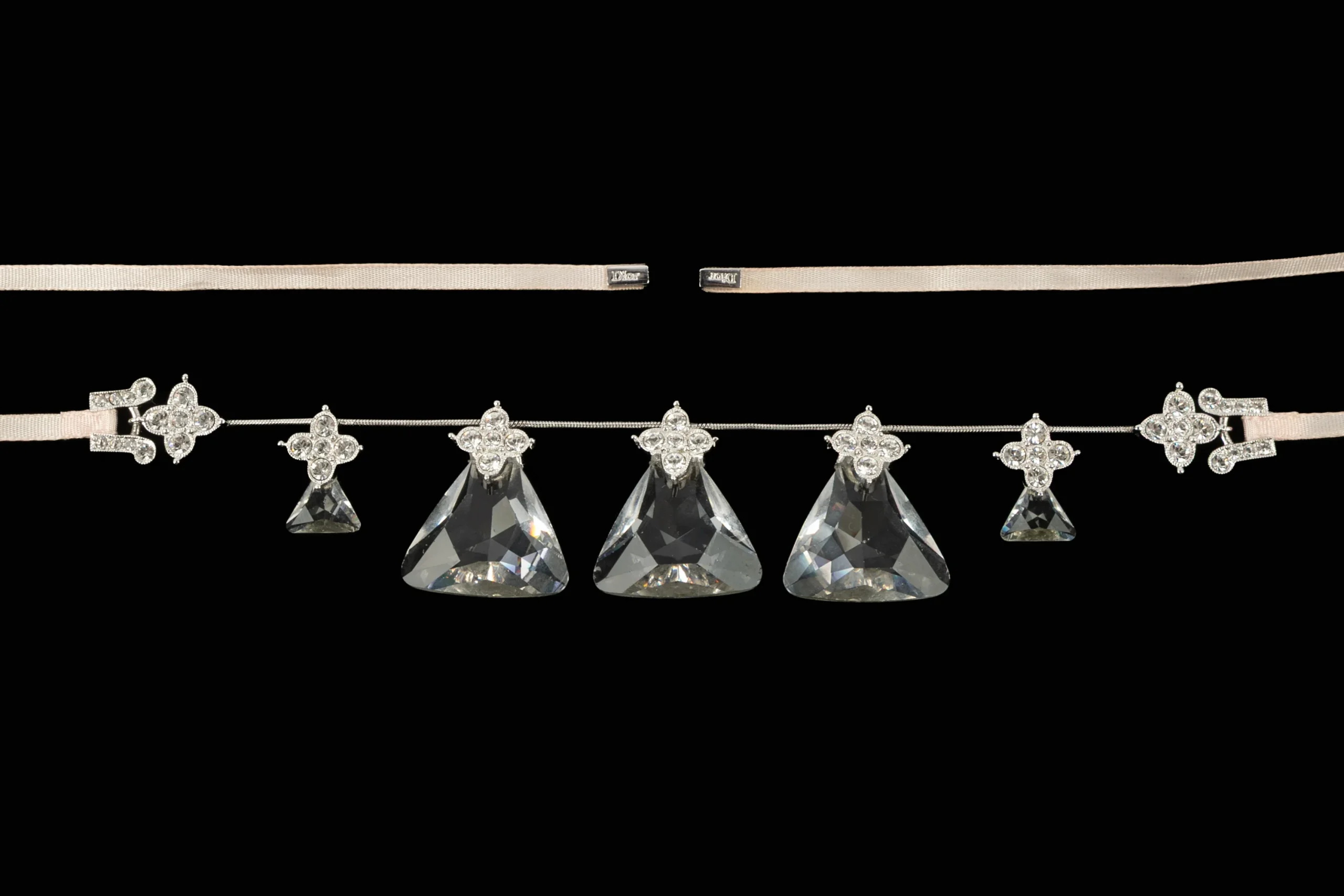 DIOR – (Made in France) Collier en métal argenté et strass. Collection circa 2000, par John Galliano.
