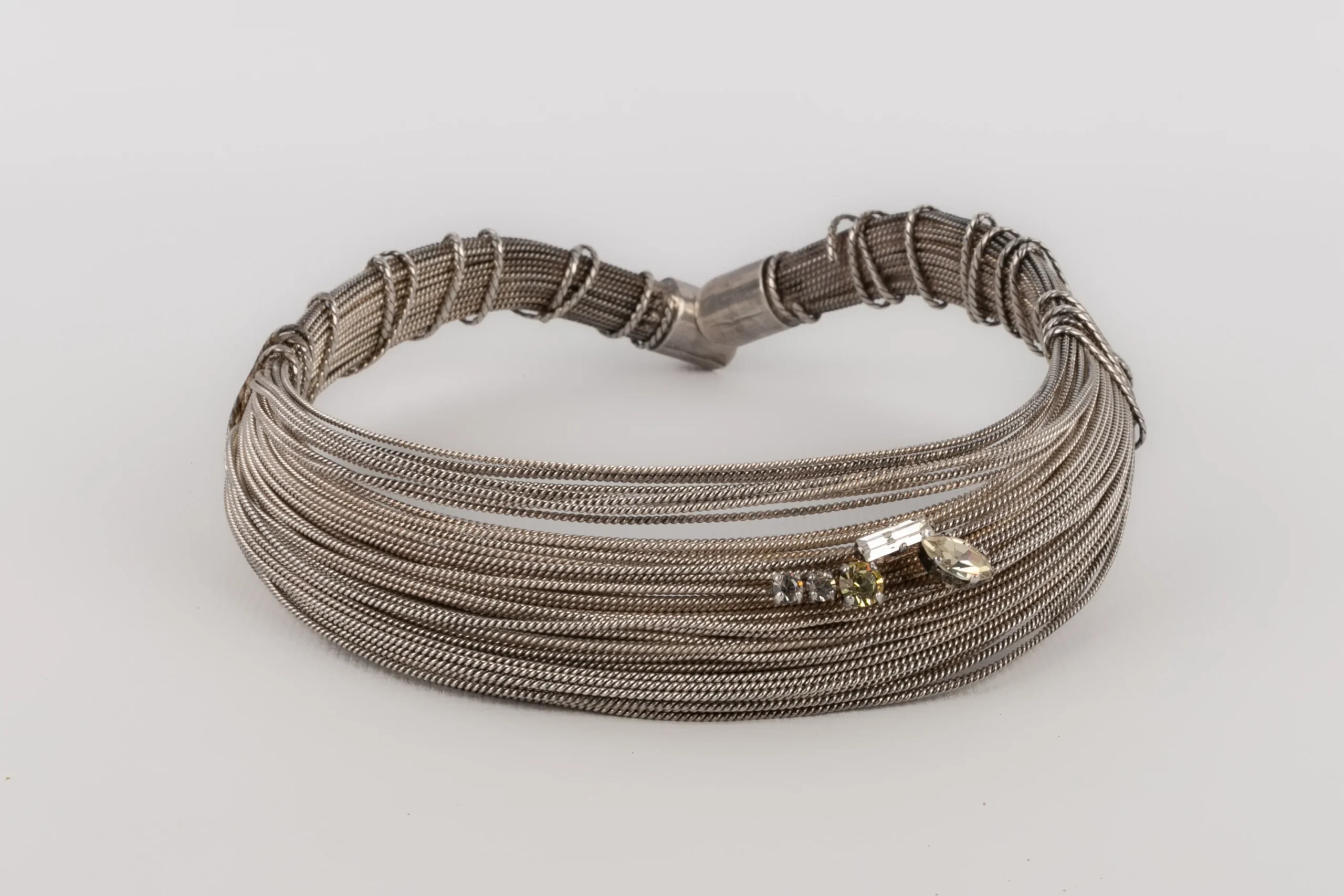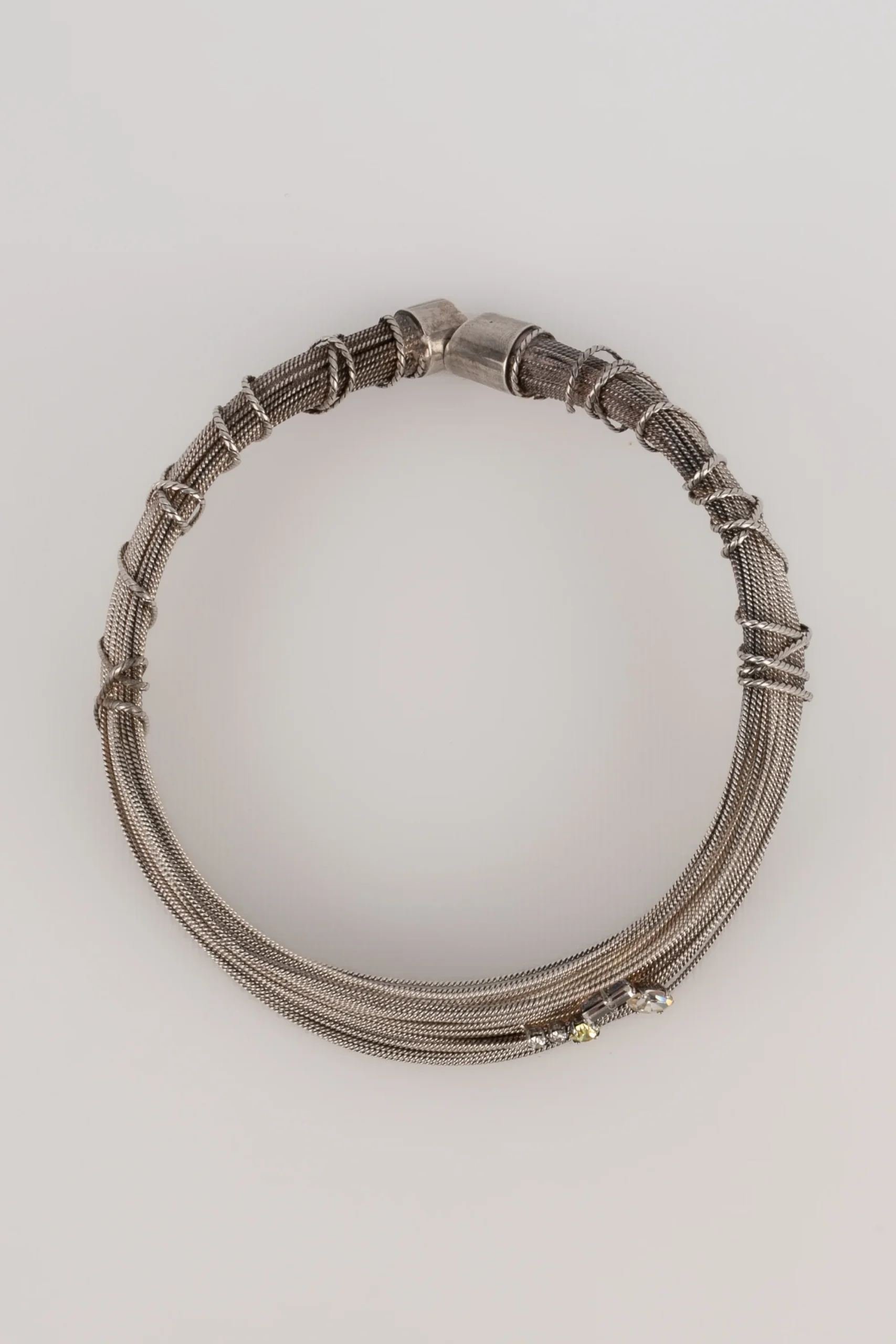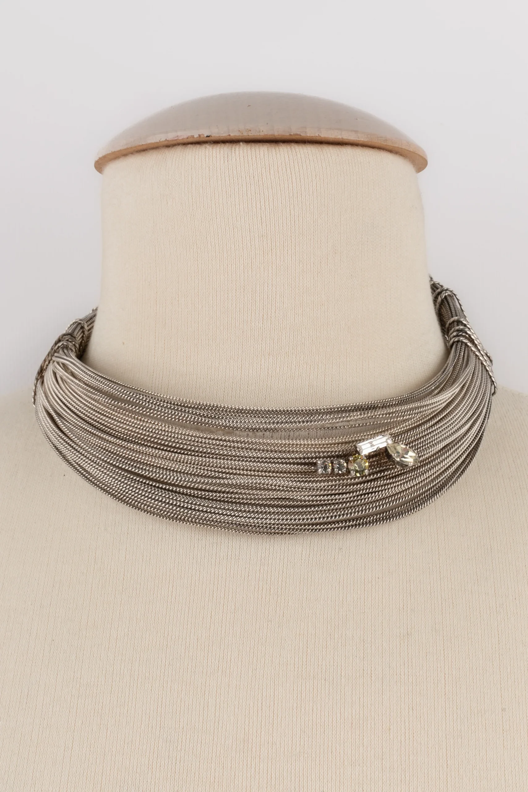 CHRISTIAN LACROIX -(Made in France) Collier court et rigide en métal argenté. Bijou datant du milieu des années 1990.