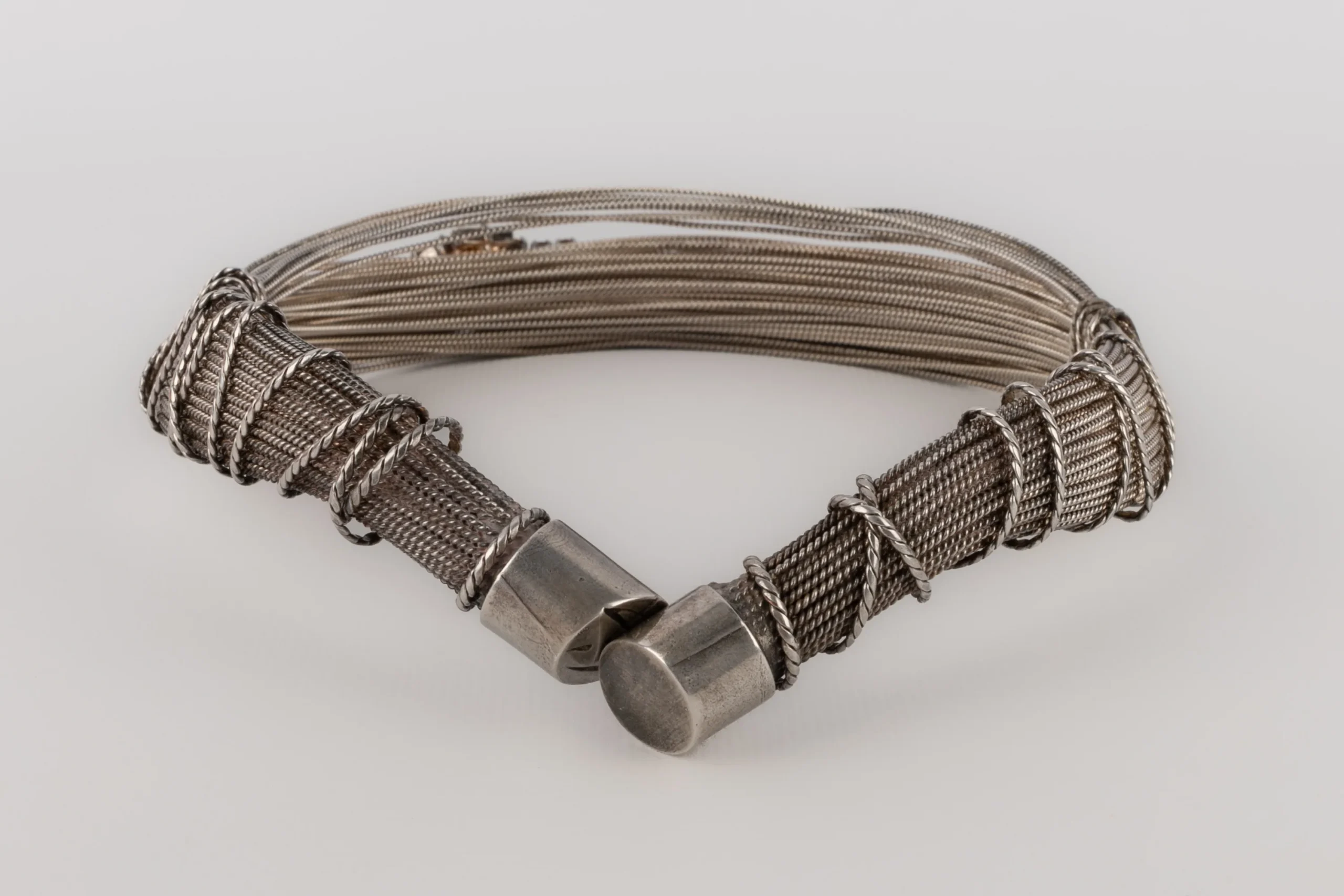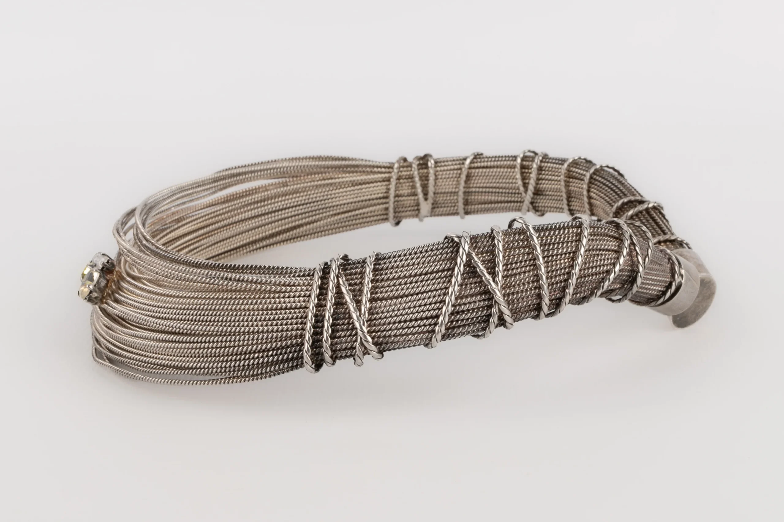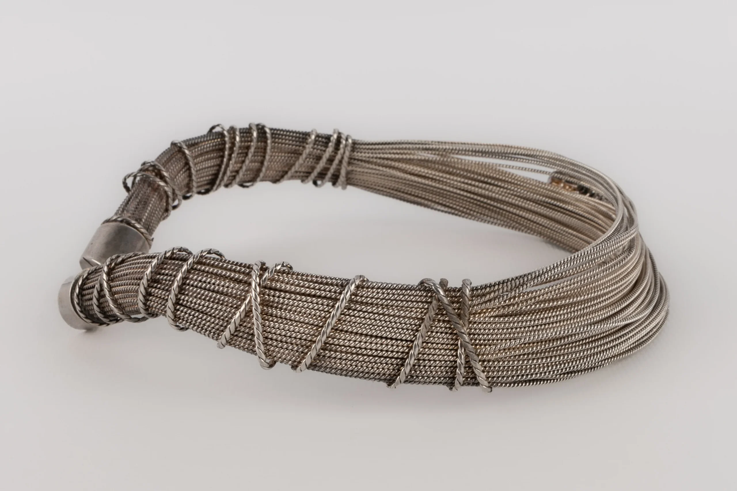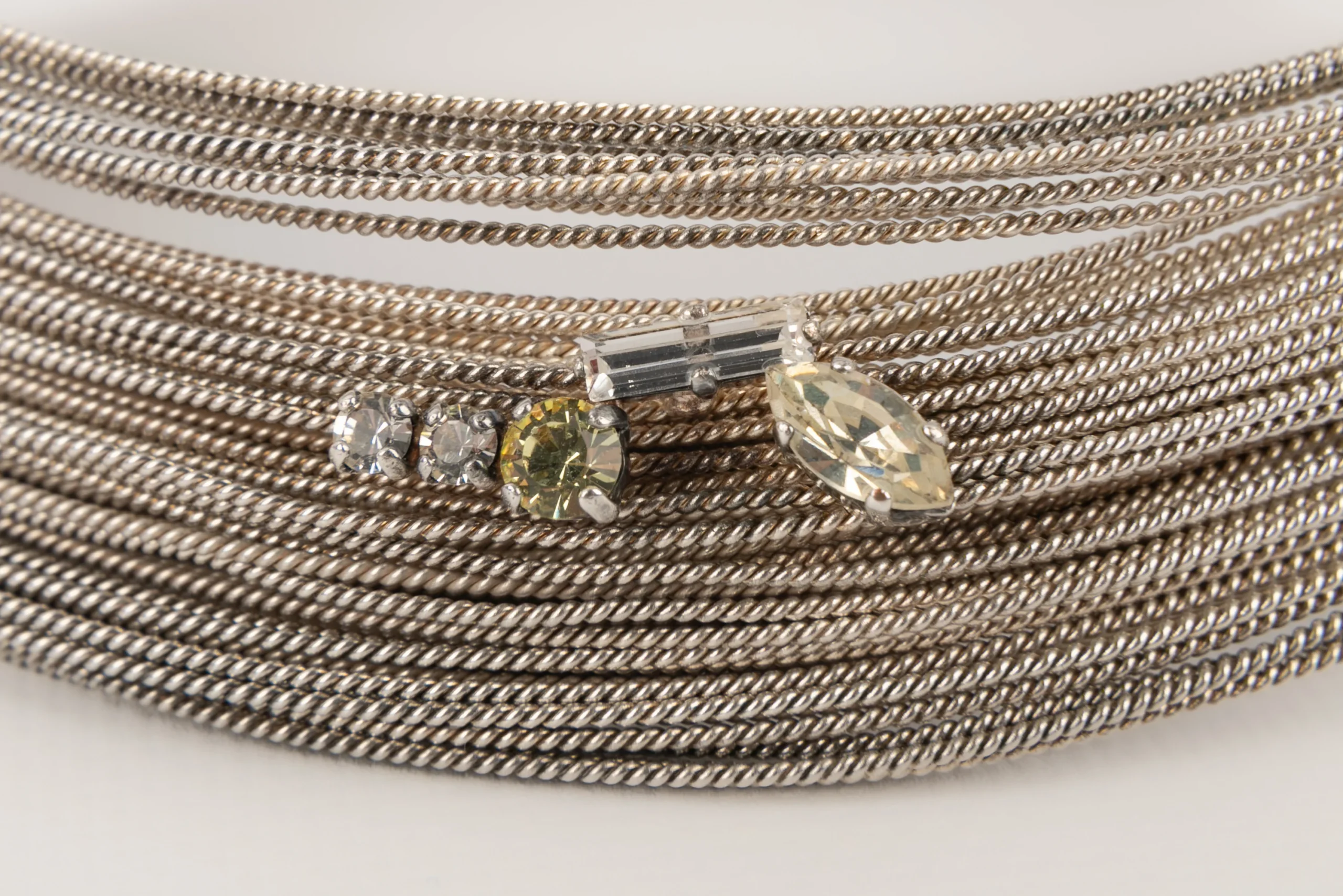 CHRISTIAN LACROIX -(Made in France) Collier court et rigide en métal argenté. Bijou datant du milieu des années 1990.