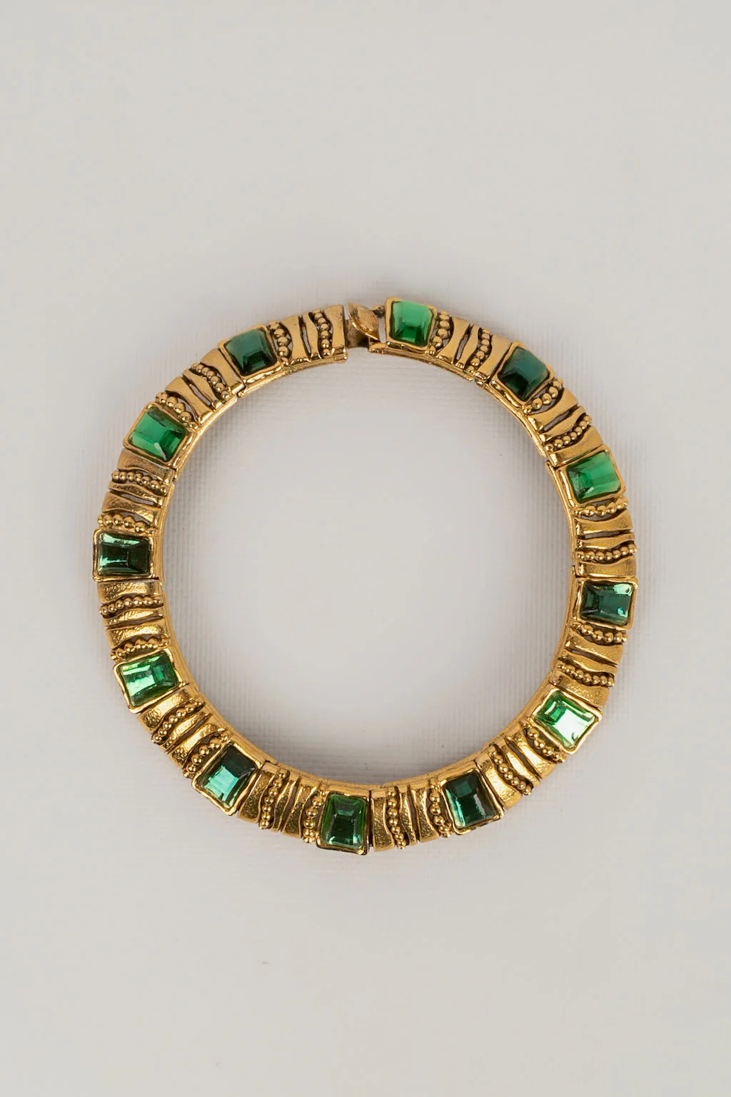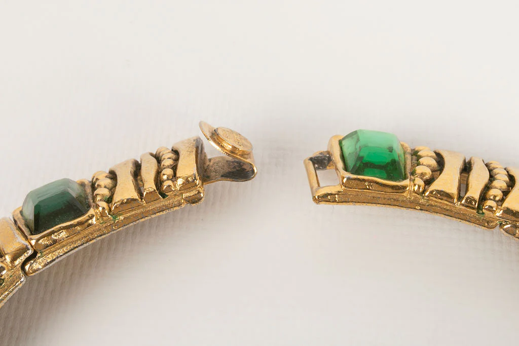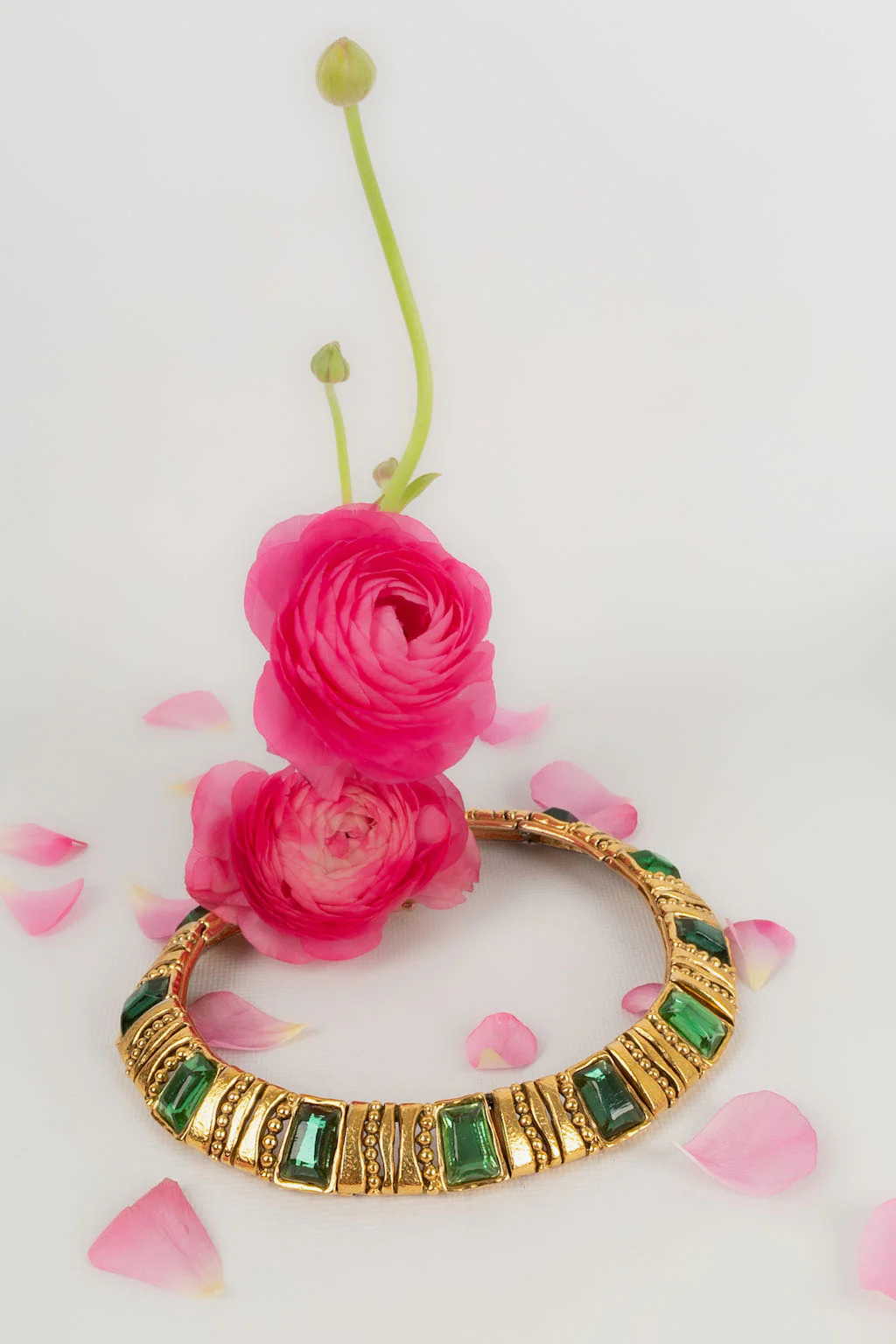 JEAN-LOUIS SCHERRER -(Made in France) Collier court en métal doré pavé de cabochons en résine verte.