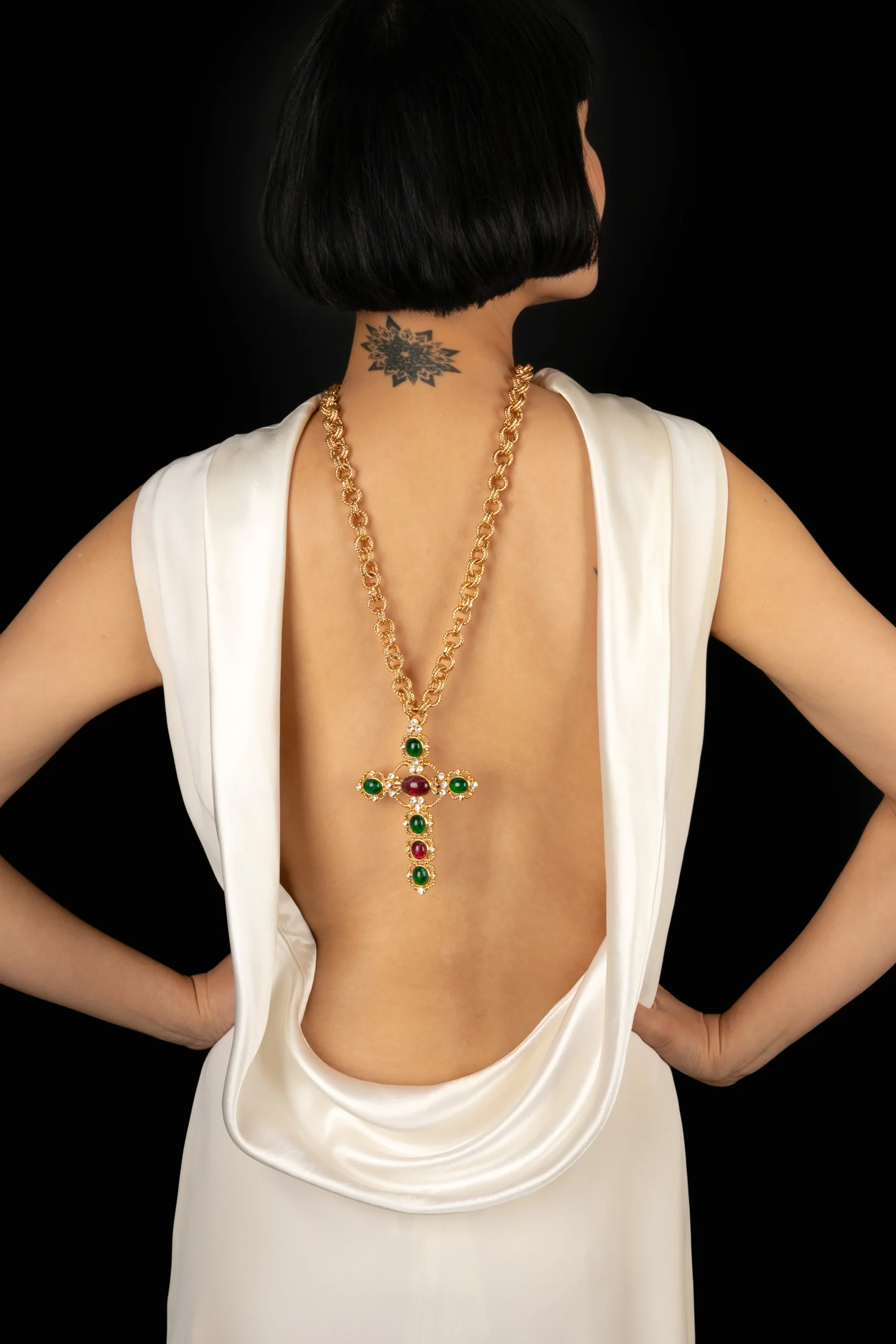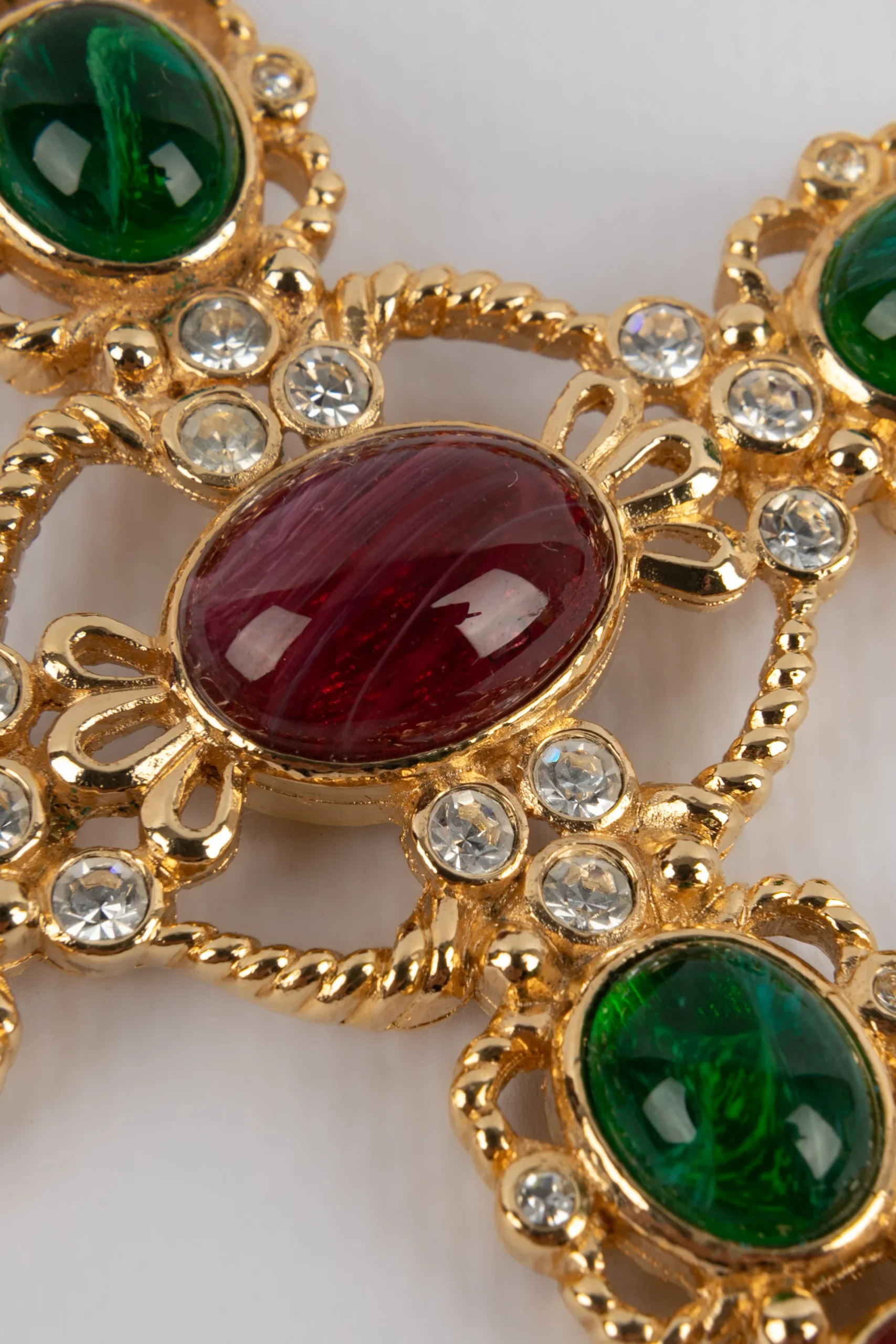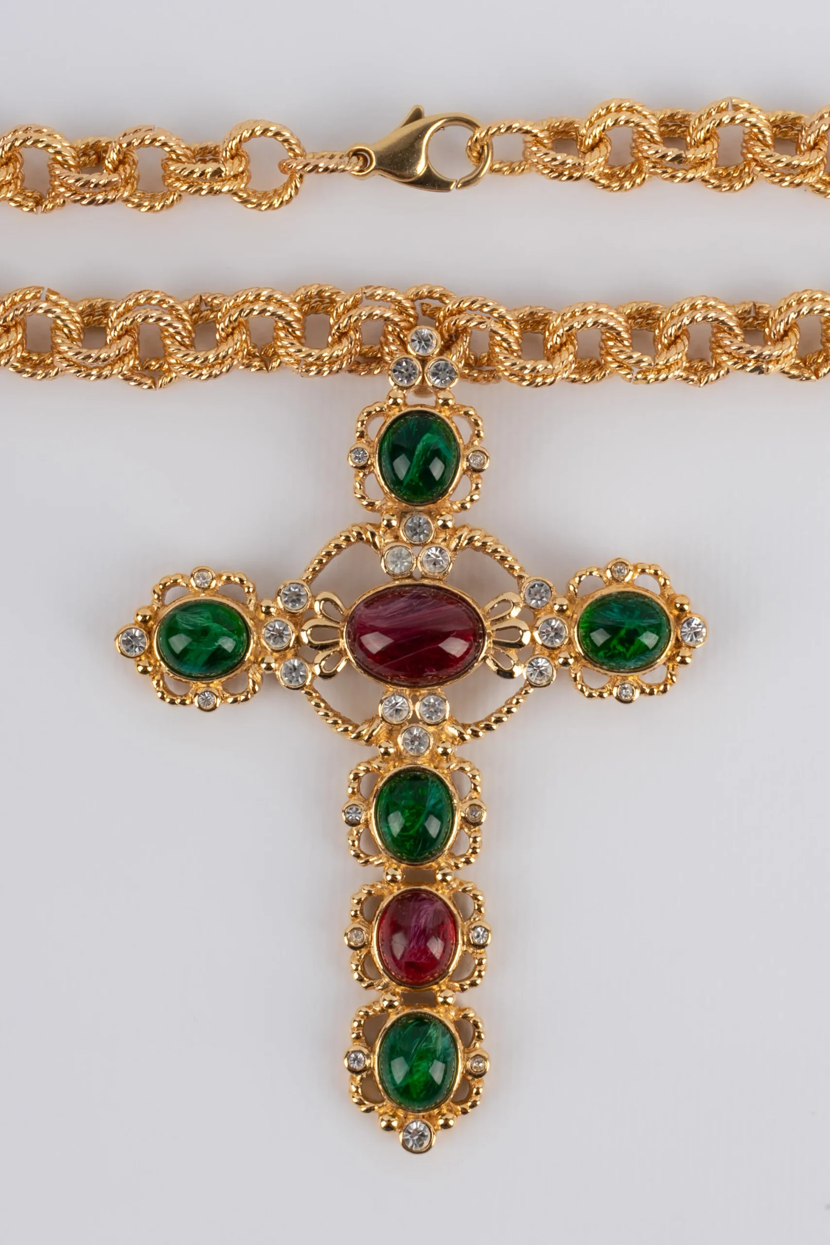 DIOR -Collier en métal doré, pâte de verre et strass.