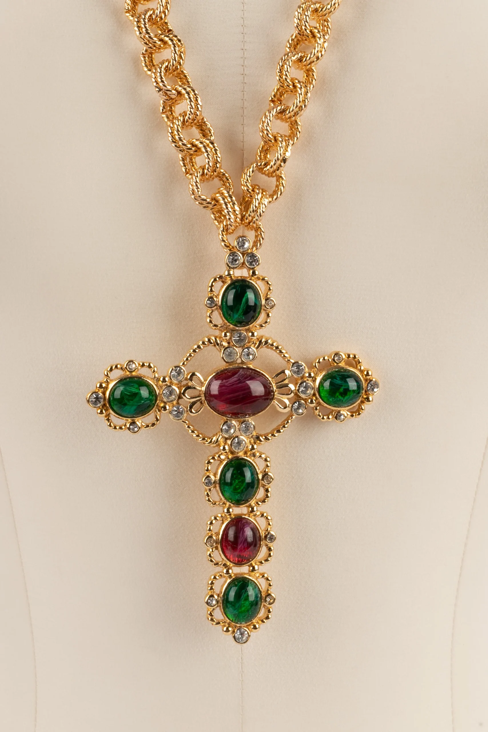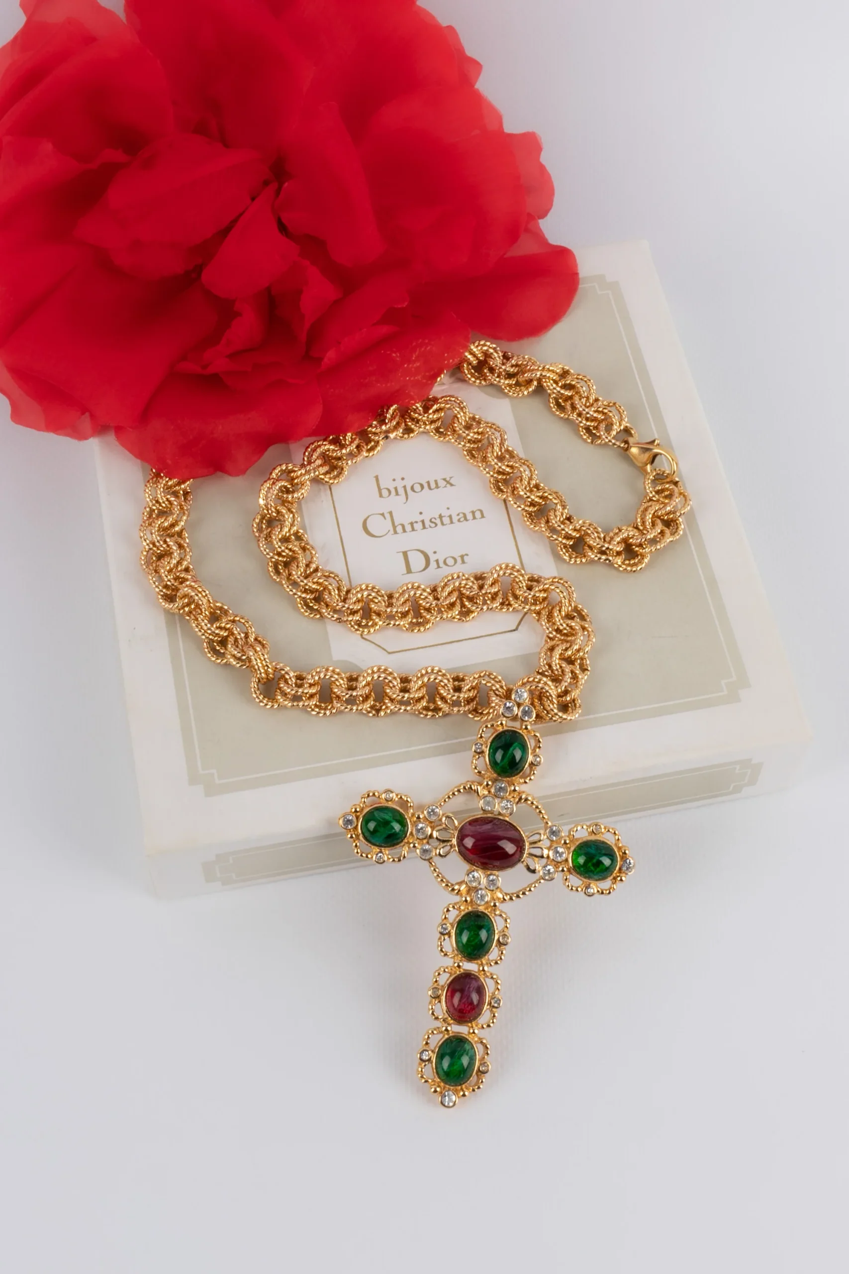 DIOR -Collier en métal doré, pâte de verre et strass. Condition : Très bon état Dimensions : Longueur : 70 cm