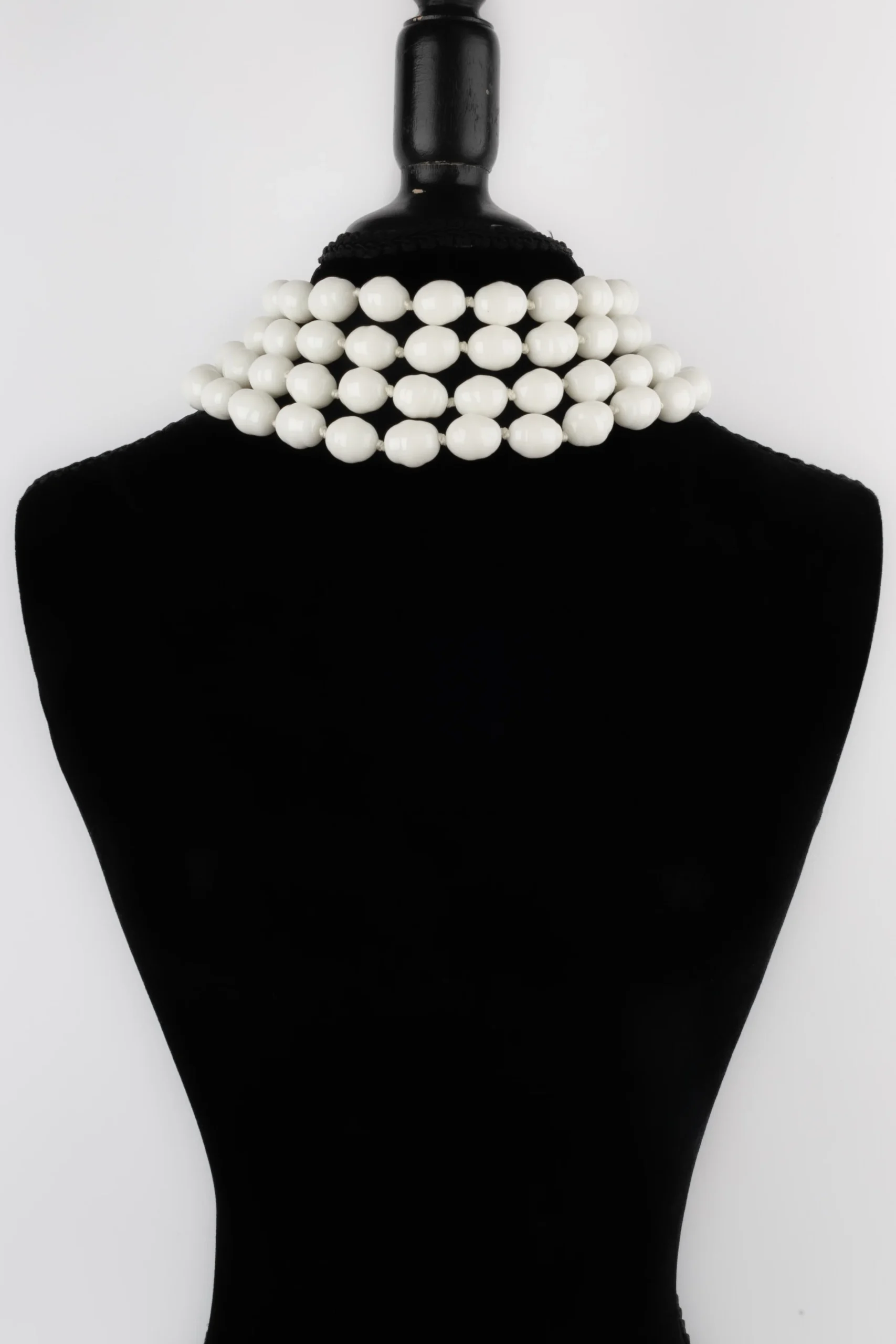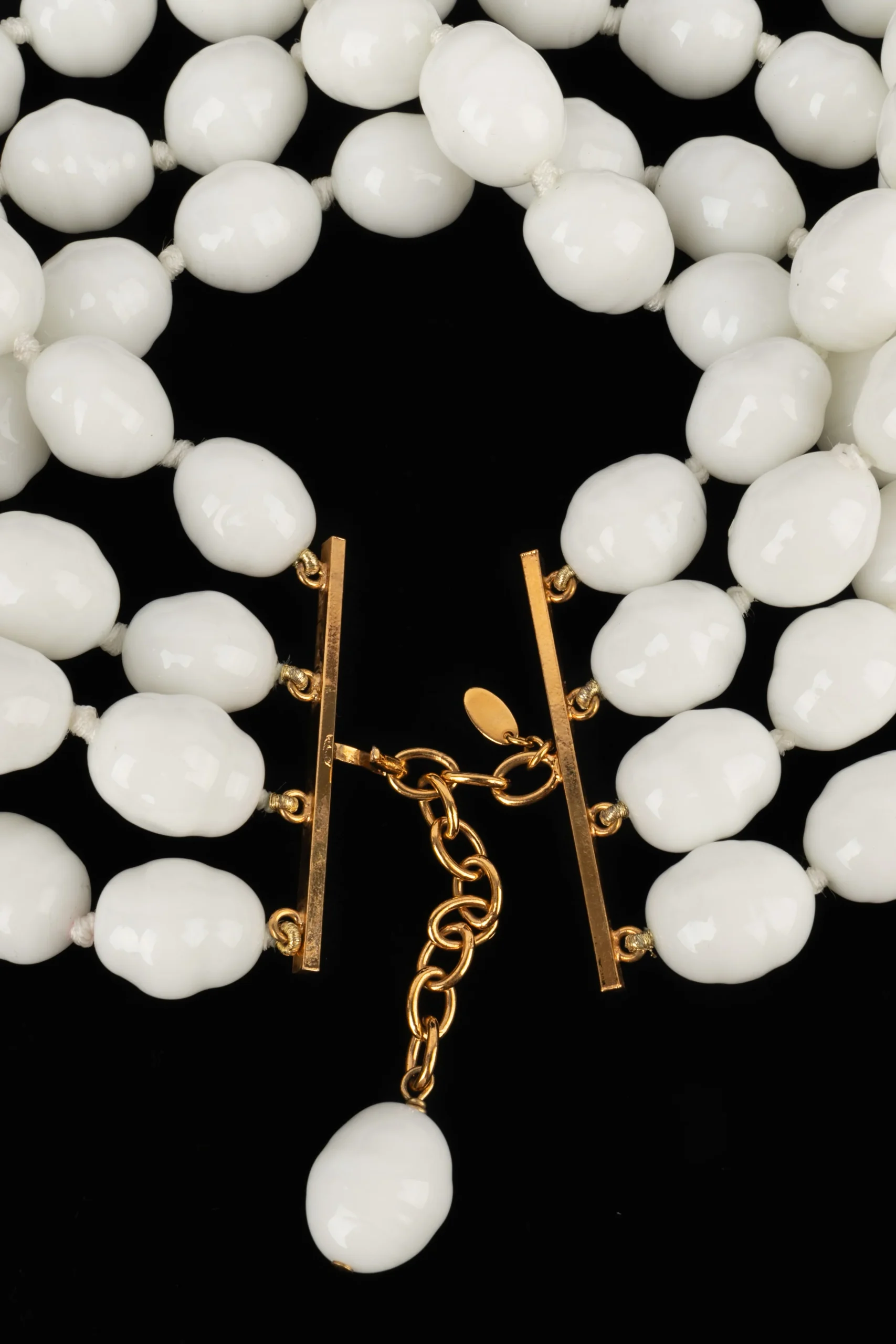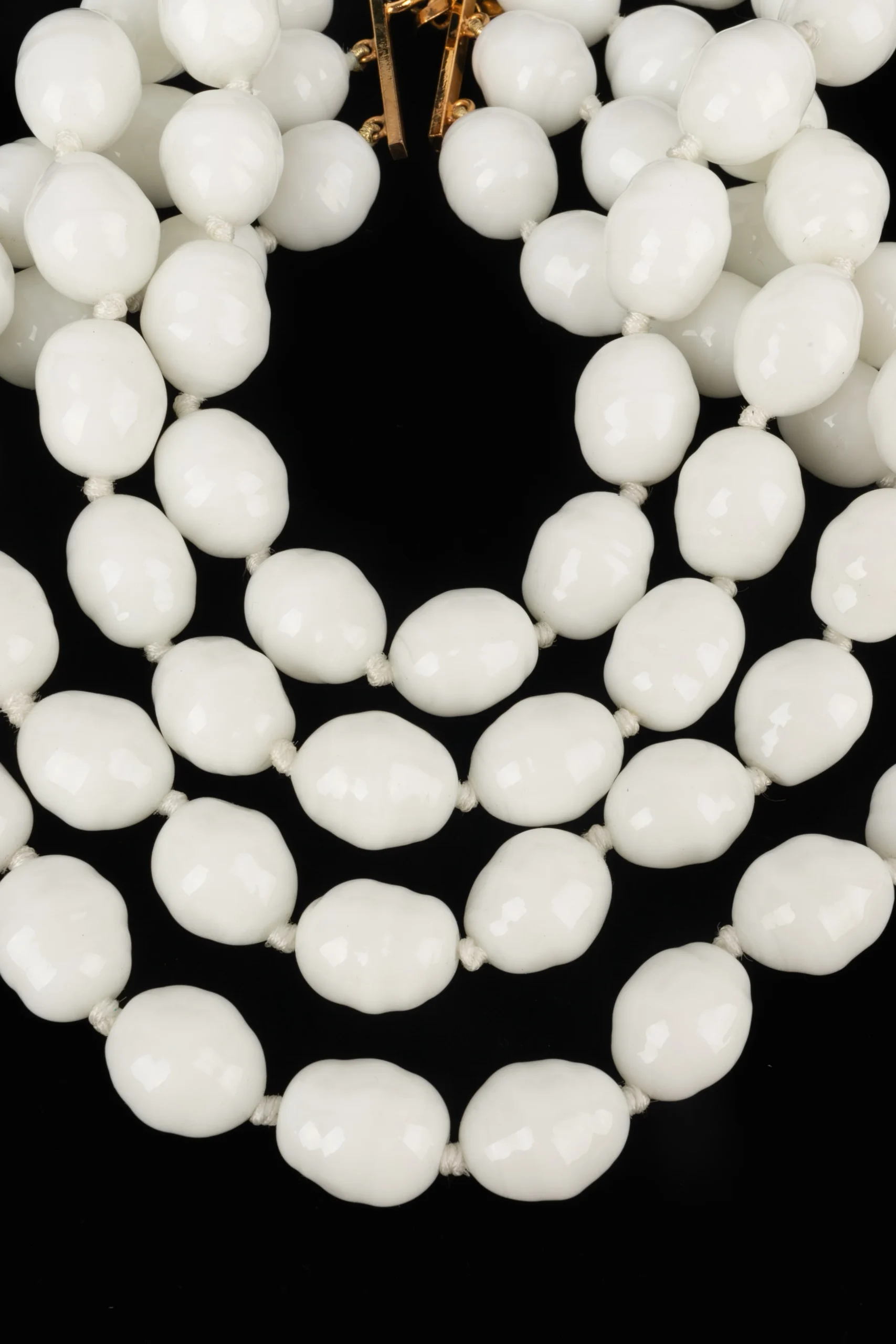 CHANEL – (Made in France) Collier court composé de quatre rangs de perles de verre montées à noeuds et fermoir en métal doré. Collection Automne-Hiver 1996.