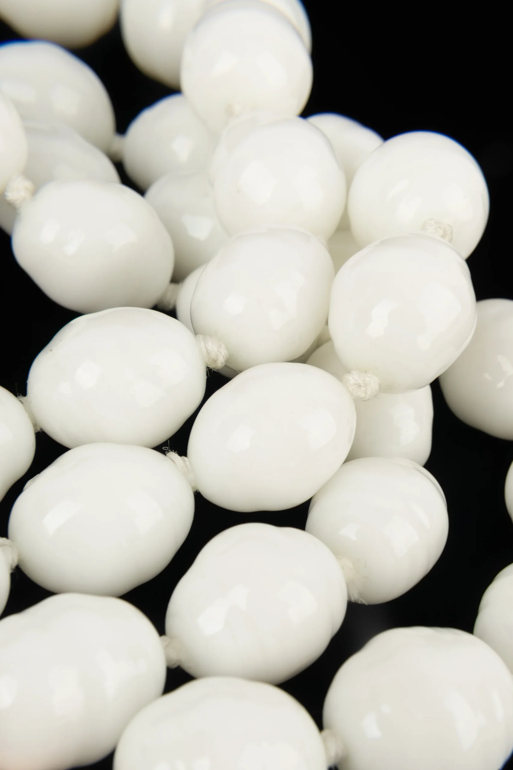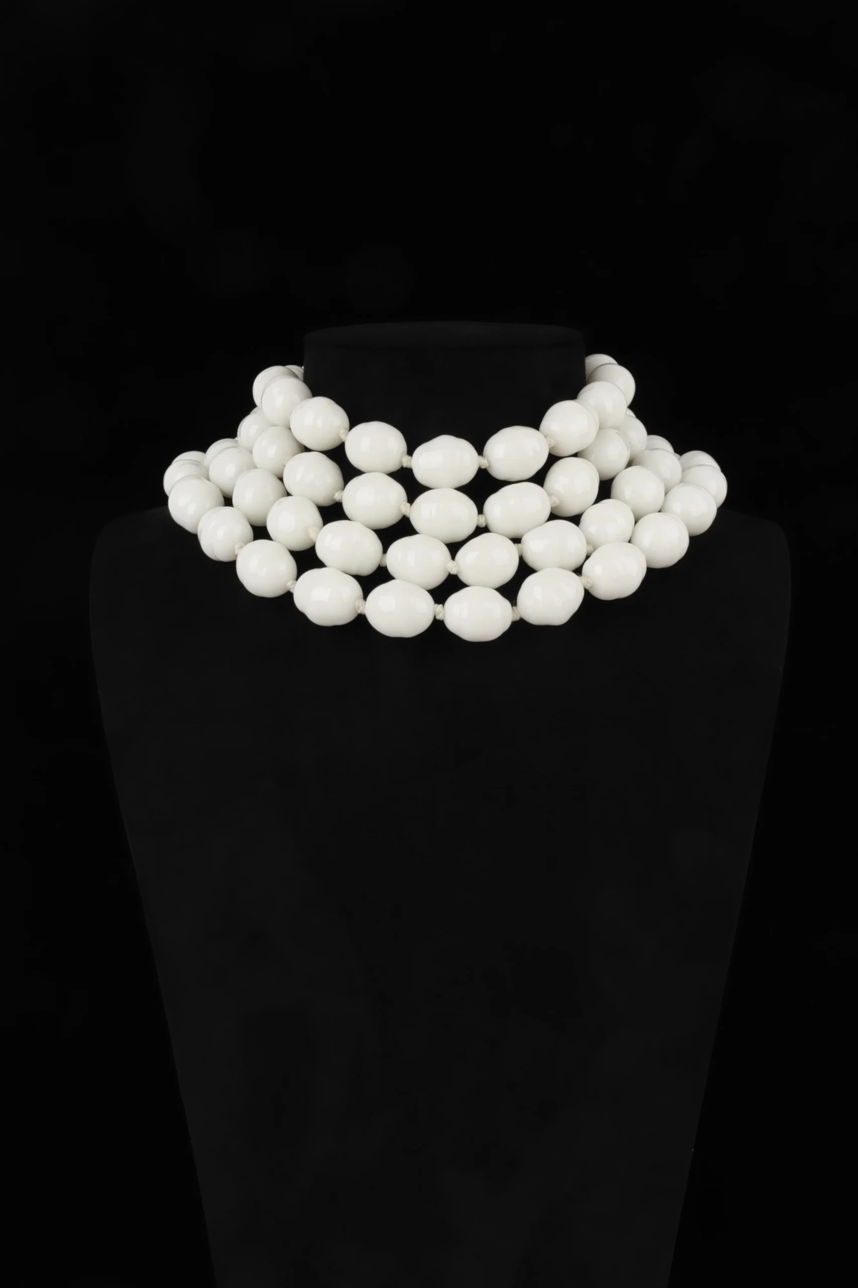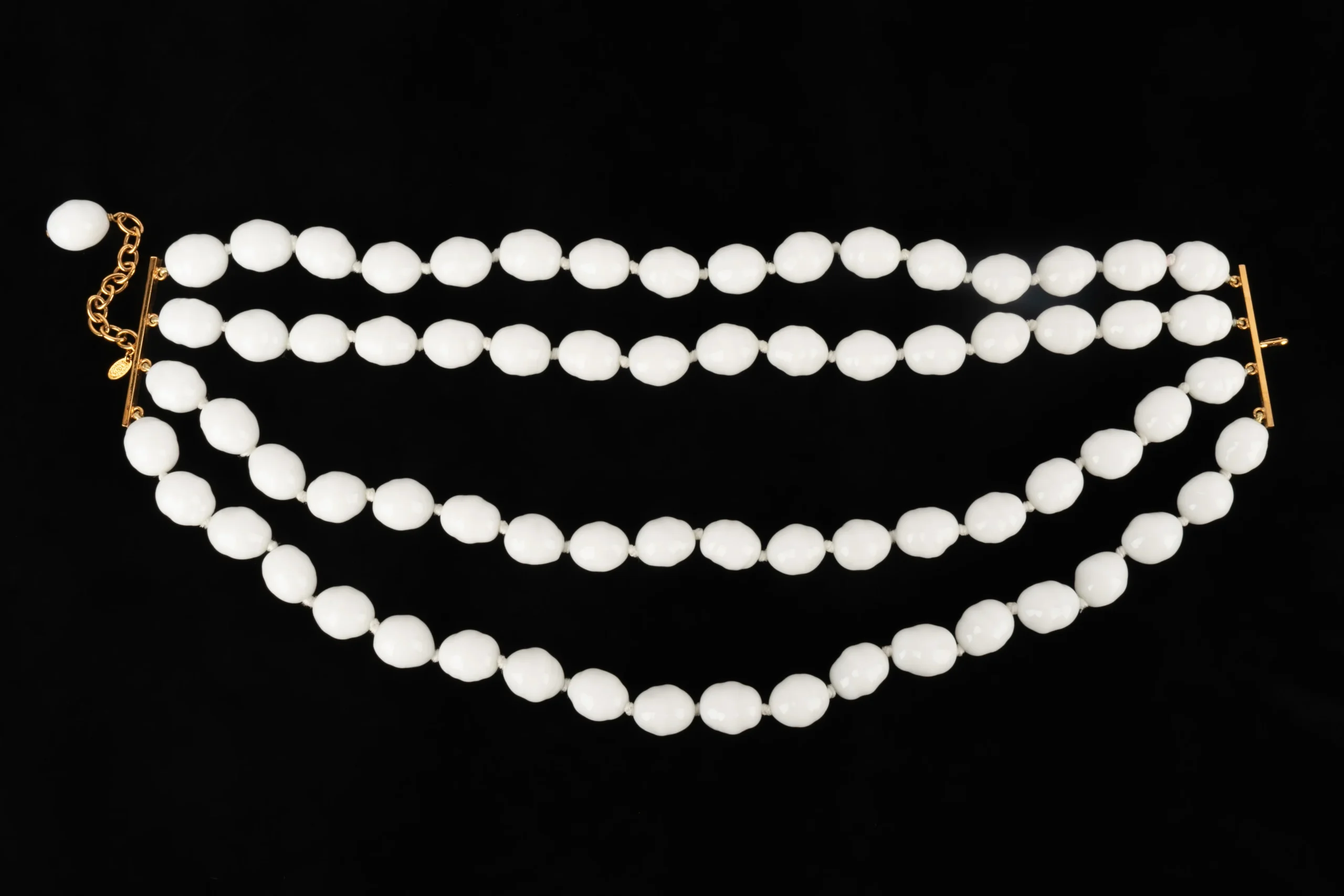 CHANEL – (Made in France) Collier court composé de quatre rangs de perles de verre montées à noeuds et fermoir en métal doré. Collection Automne-Hiver 1996.