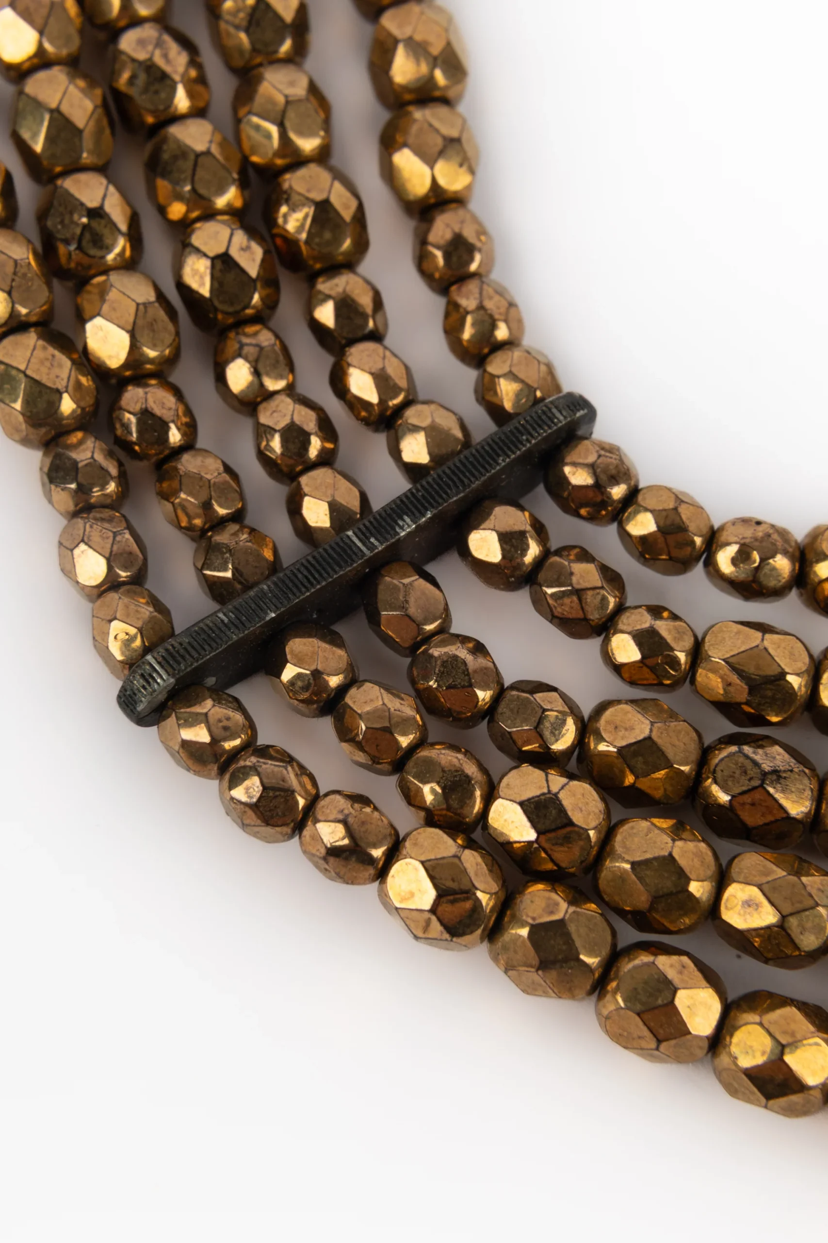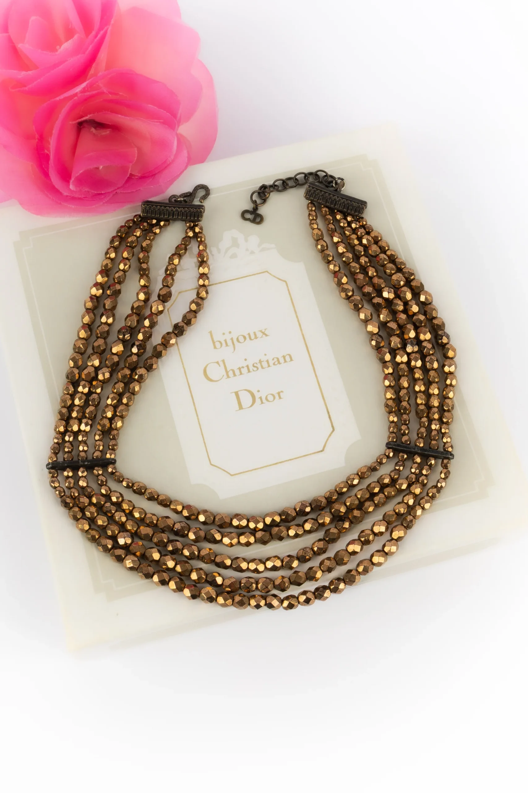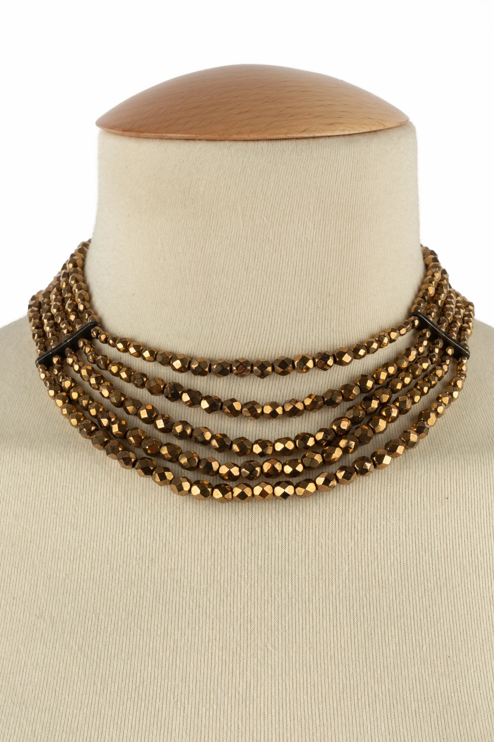 DIOR – (Made in France) Collier court composé de cinq rangs de perles dorées cuivrées. Collection d’inspiration Massaï sous la direction artistique de John Galliano.