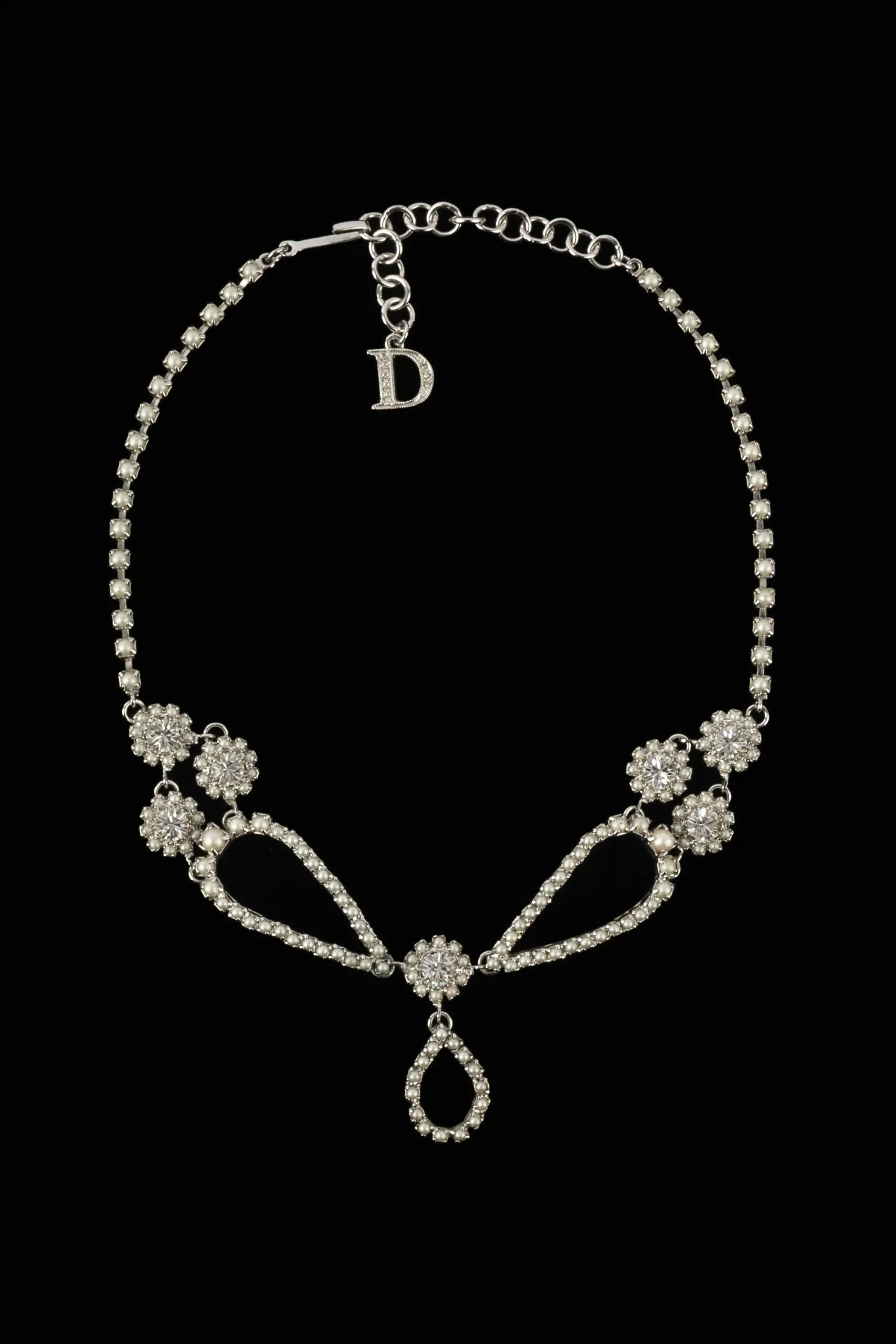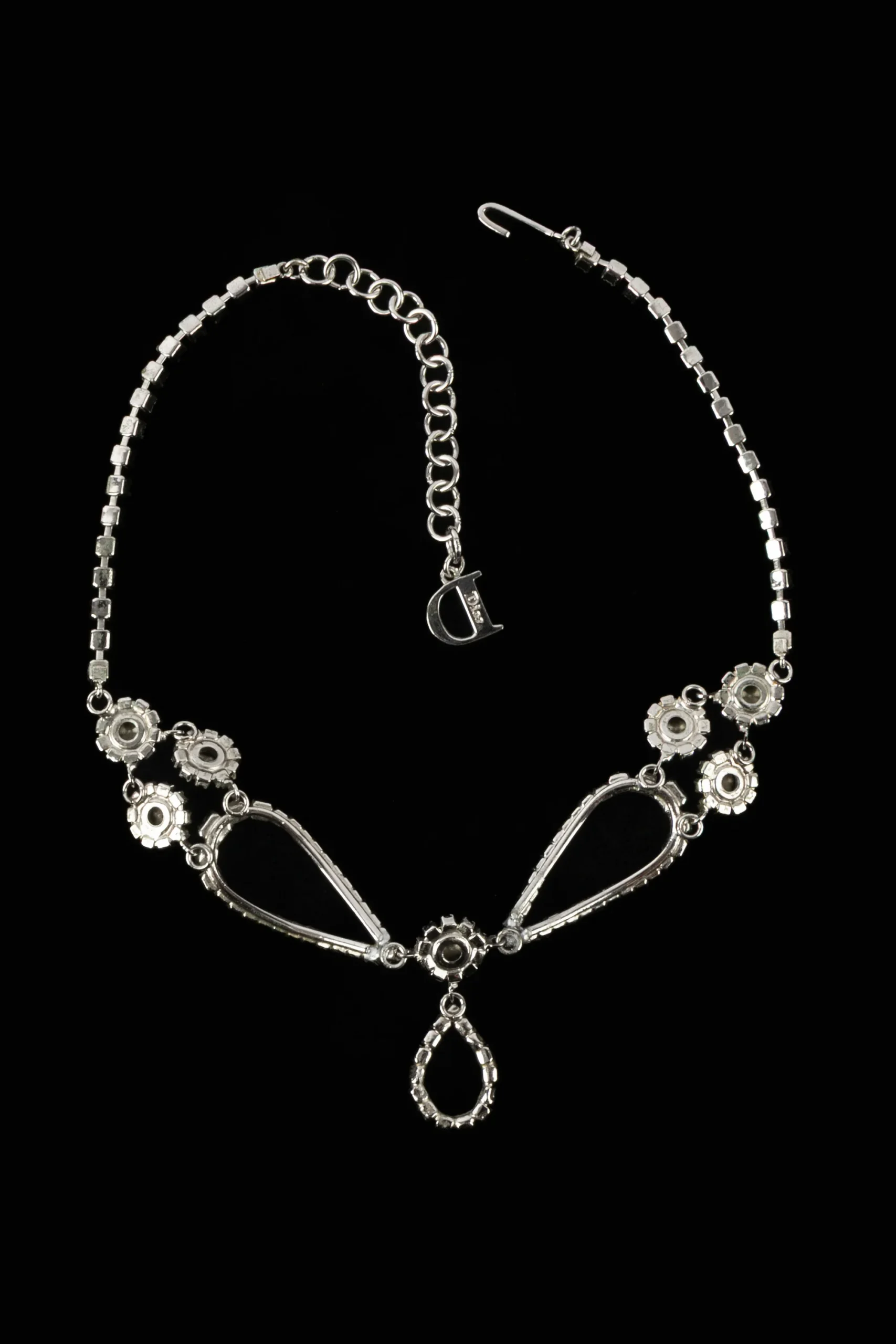DIOR – Collier court en métal argenté serti de nacre fantaisie et strass. Collection circa 2000 sous la direction artistique de John Galliano.