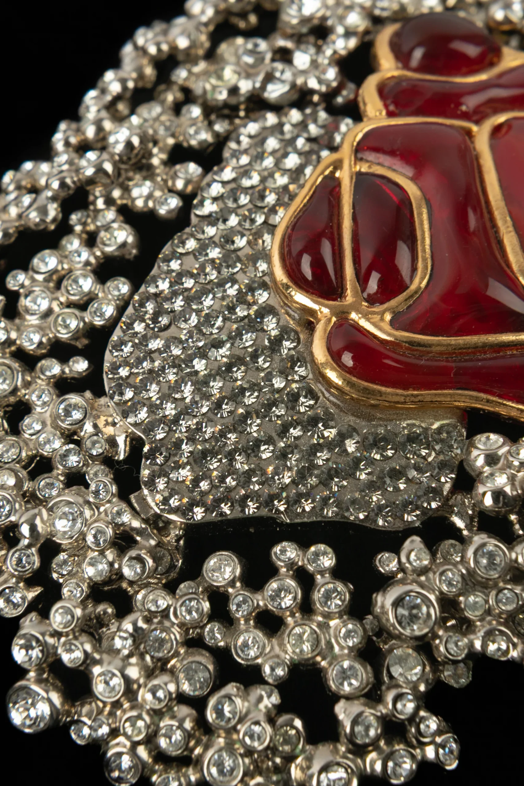 WOLOCH – Collier court multirangs de perles nacrées fantaisies, strass, métal argenté et pâte de verre. Collection « Rose Ombre Portée » datant de 2011. Pièce unique. Grand Prix des Métiers d’Art de la ville de Paris en 1983, Serge-Eric Woloch a été, pendant 25 ans, l’un des plus importants paruriers de la Maison Chanel. […]