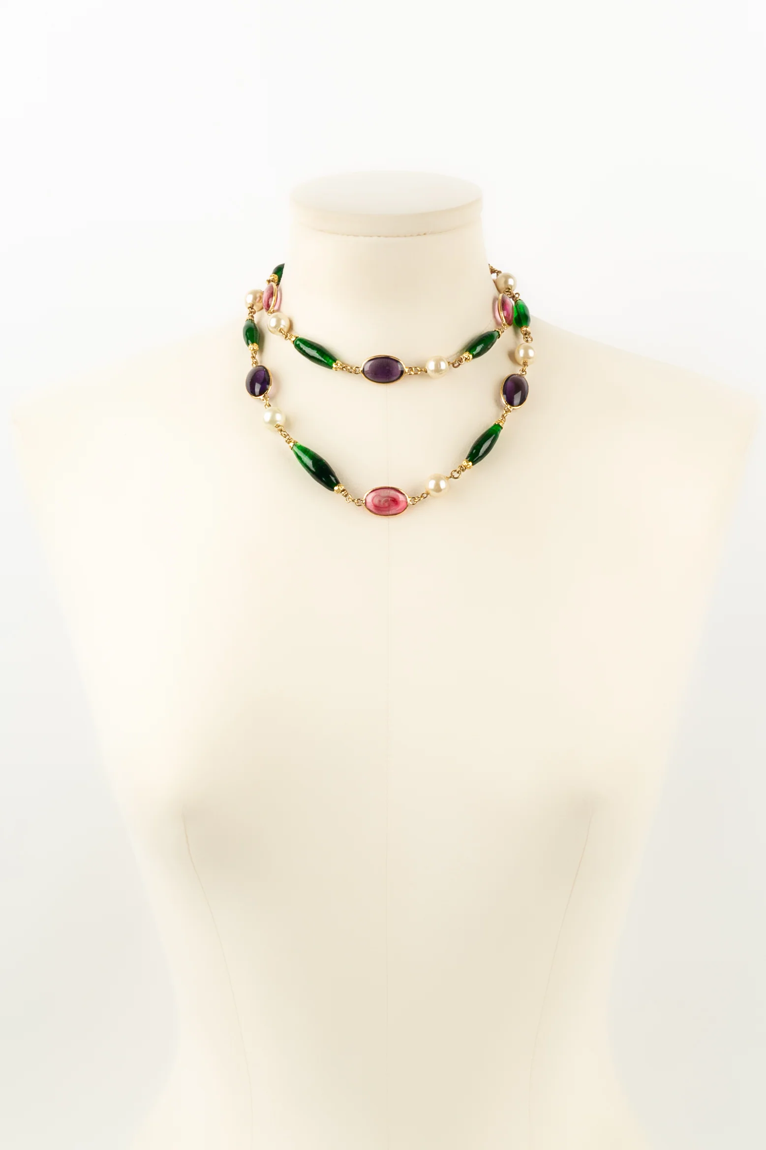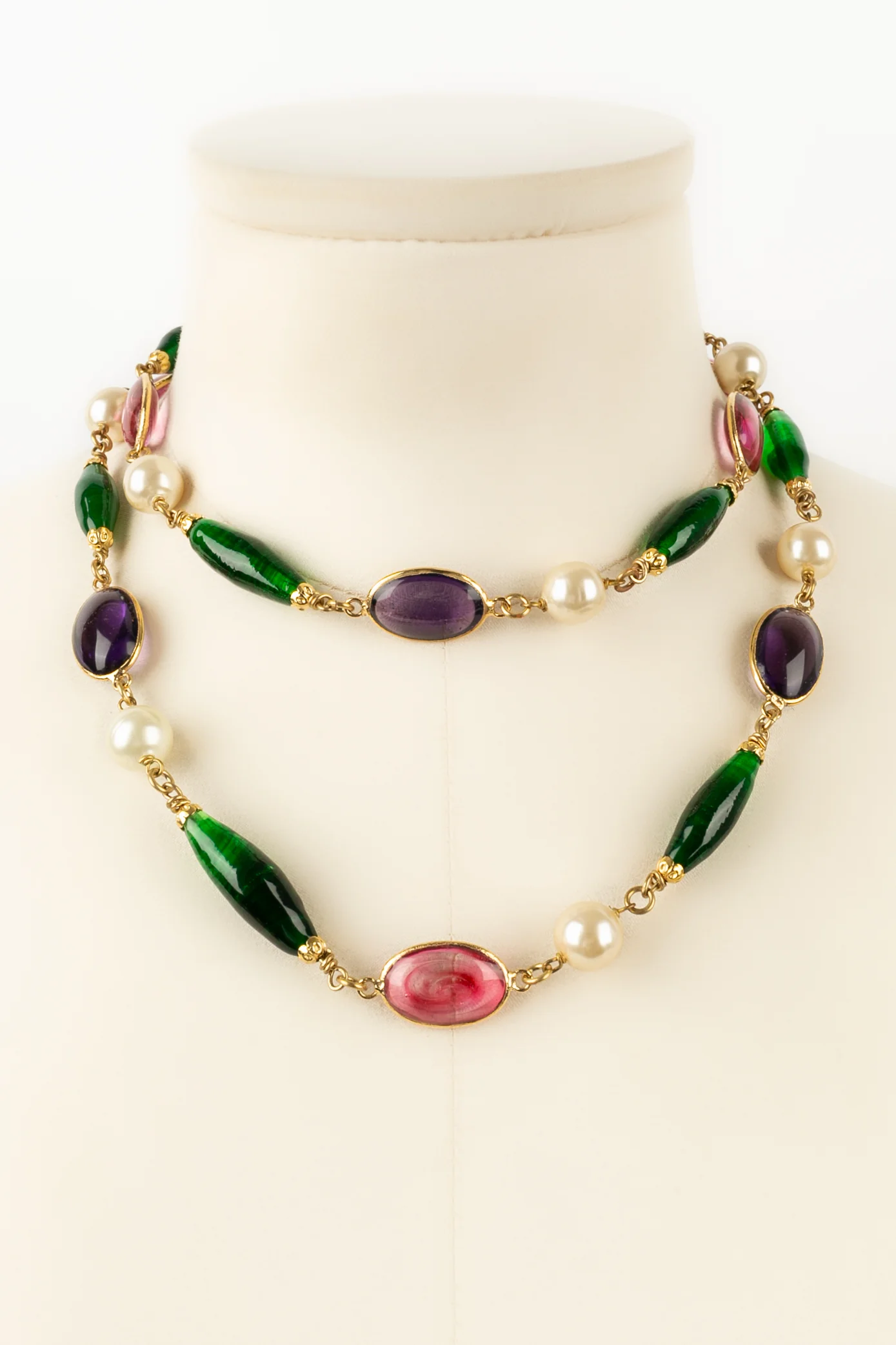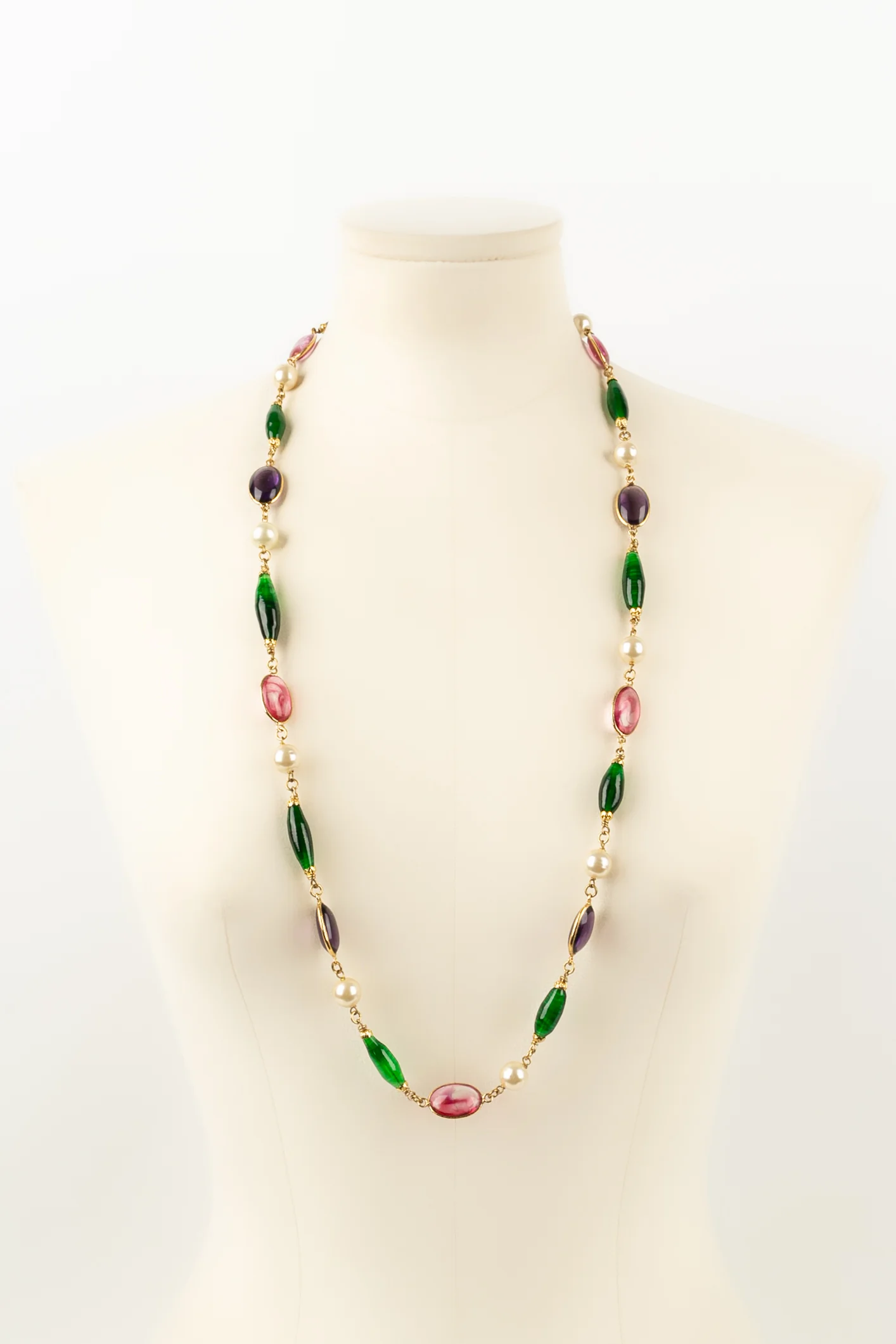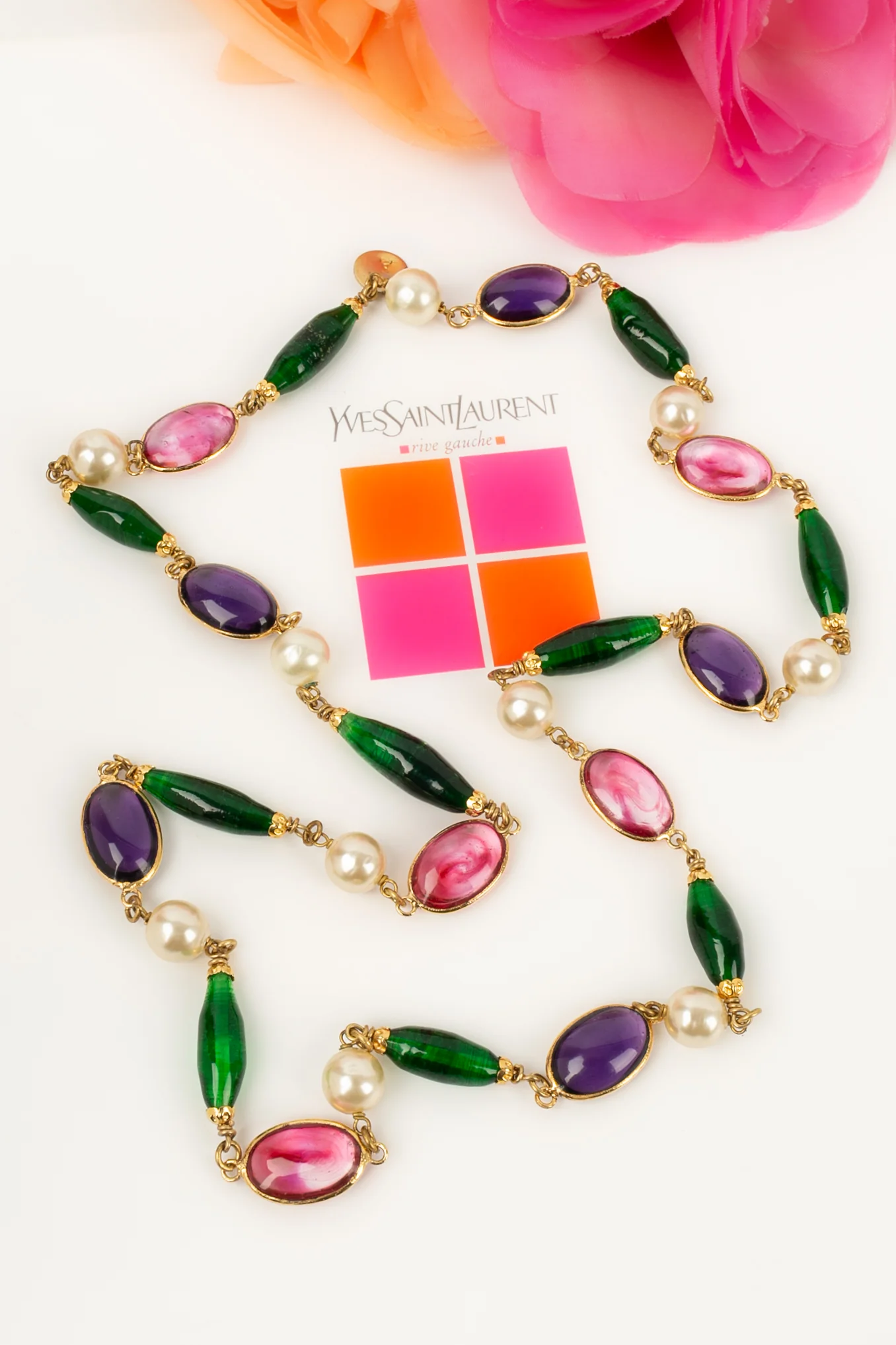 YVES SAINT LAURENT -(Made in France) Collier en pâte de verre et perles nacrées. Condition : Bon état Dimensions : Longueur : 86 cm