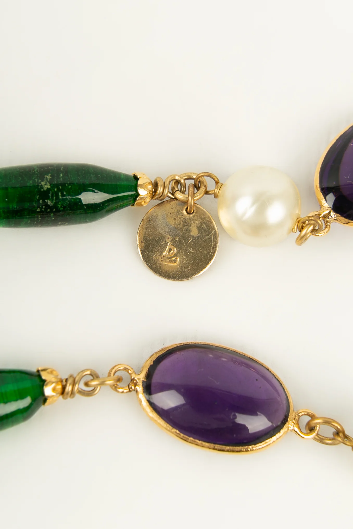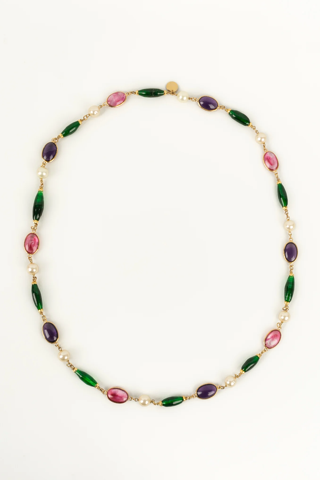 YVES SAINT LAURENT -(Made in France) Collier en pâte de verre et perles nacrées.