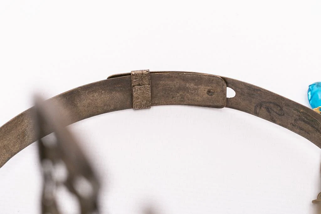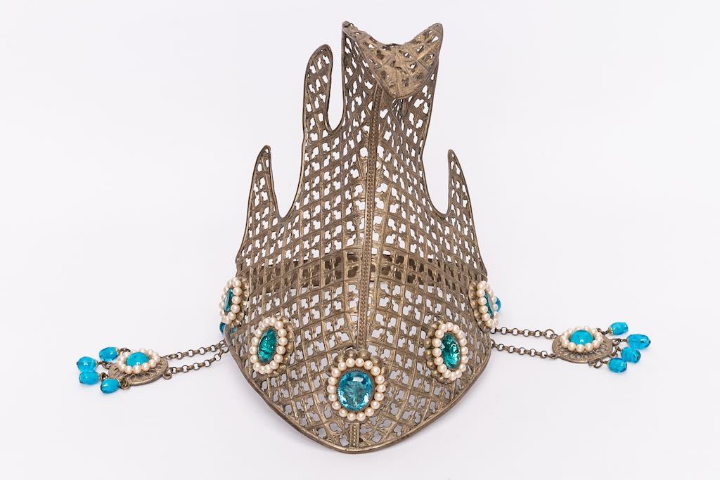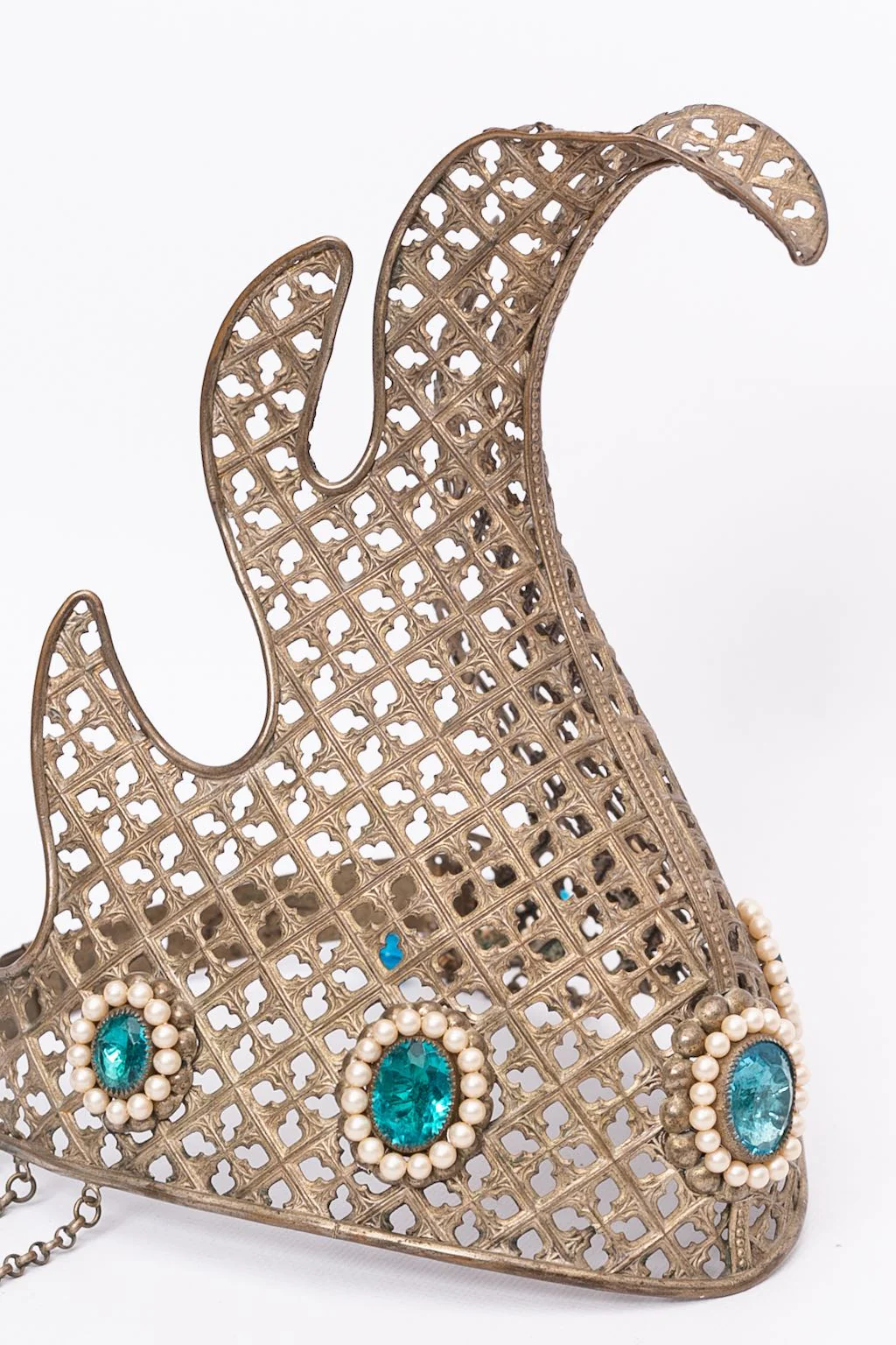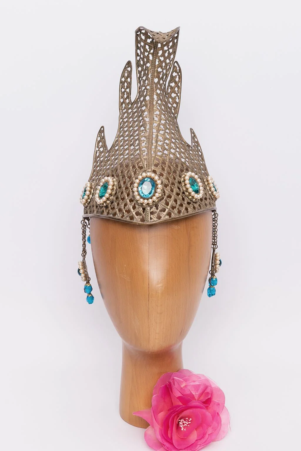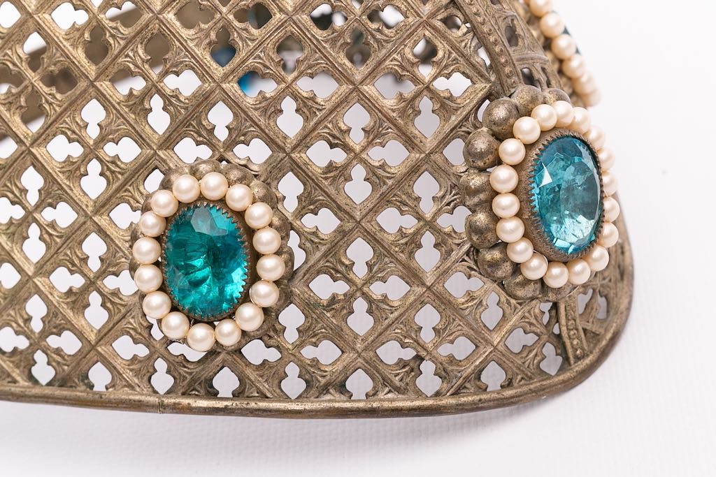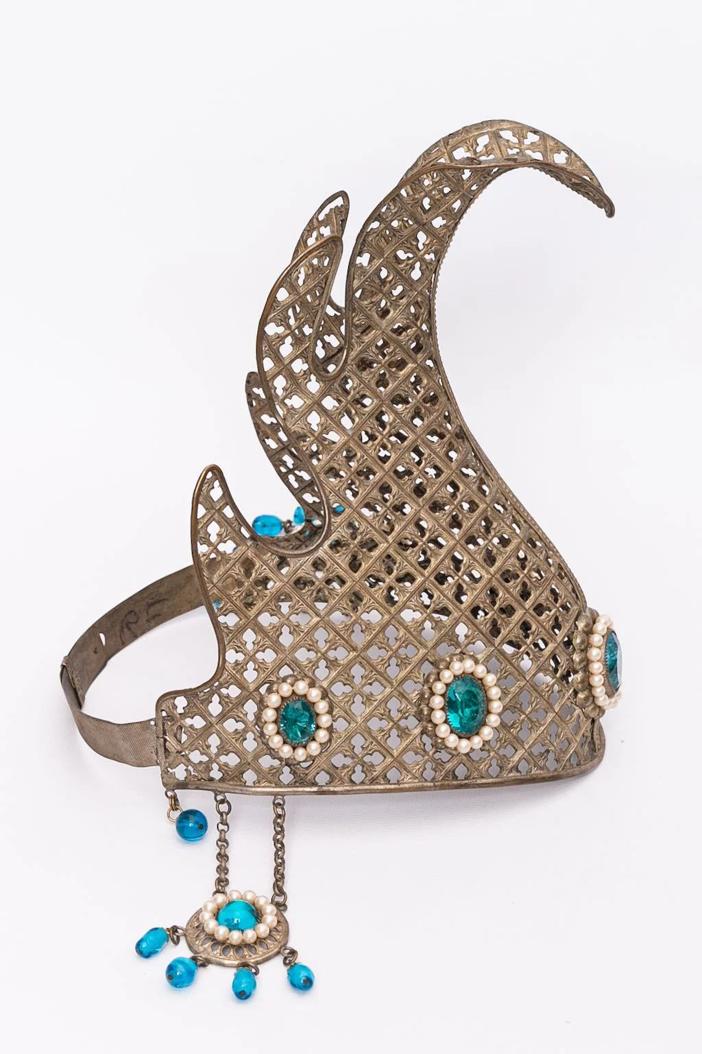 THEATRE -(Made in France) Couronne de cabaret 1930’s en métal argenté ajouré composé de perles nacrées et de strass.