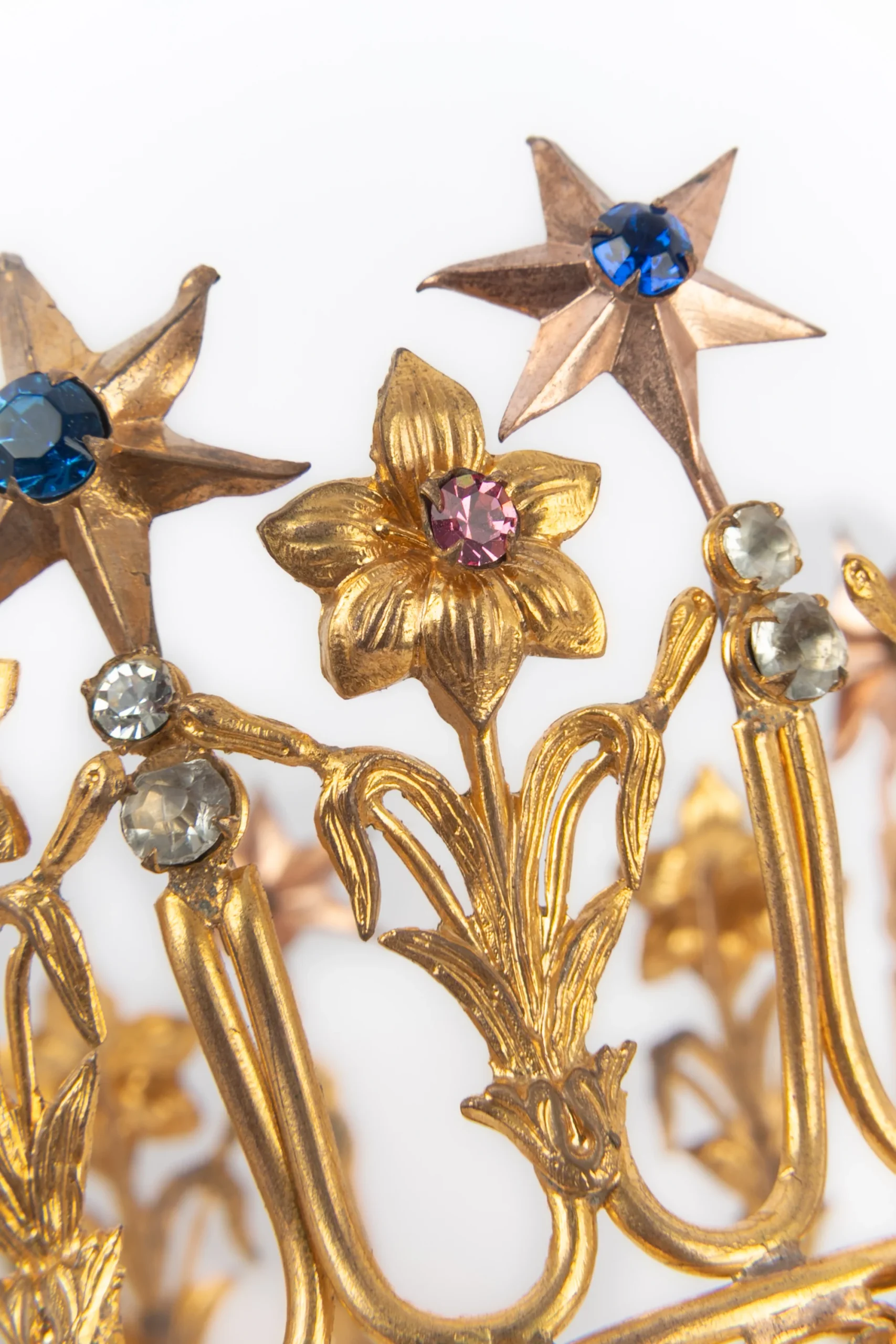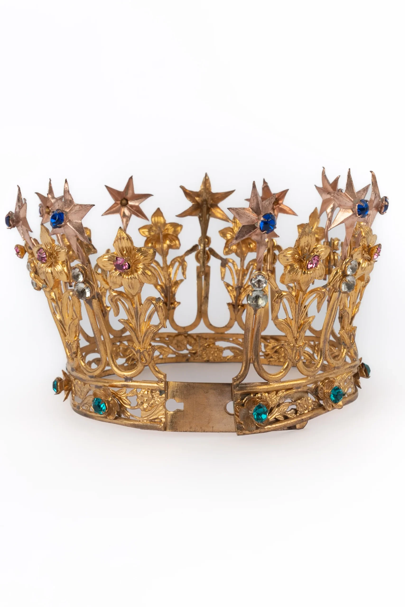 THÉÂTRE – Couronne de théâtre en métal doré et strass colorés. Accessoire datant des années 1930.