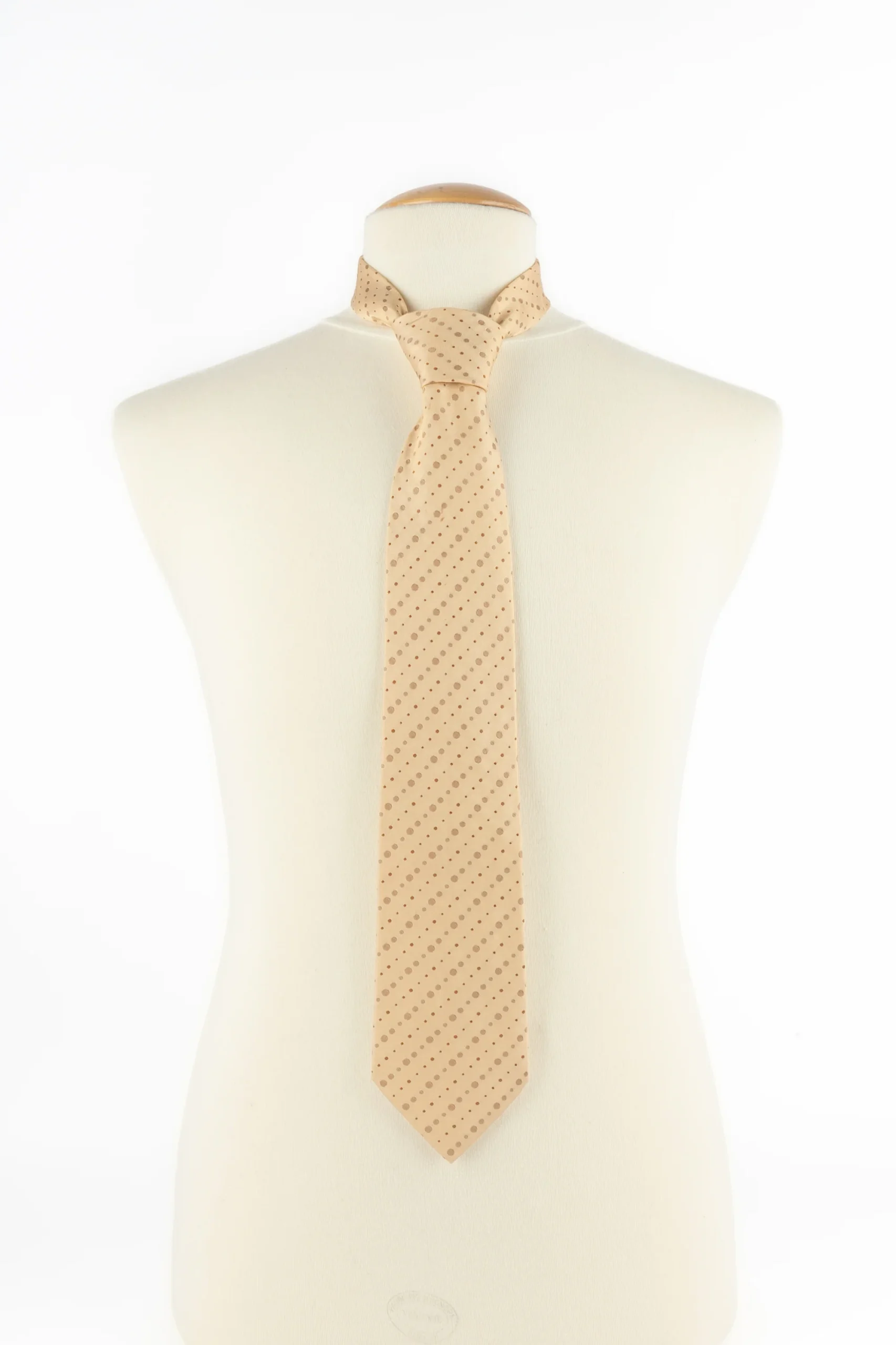 HERMÈS -(Made in France) Cravate en soie figurant des points. Condition : Très bon état Dimensions : Largeur maximum : 9 cm