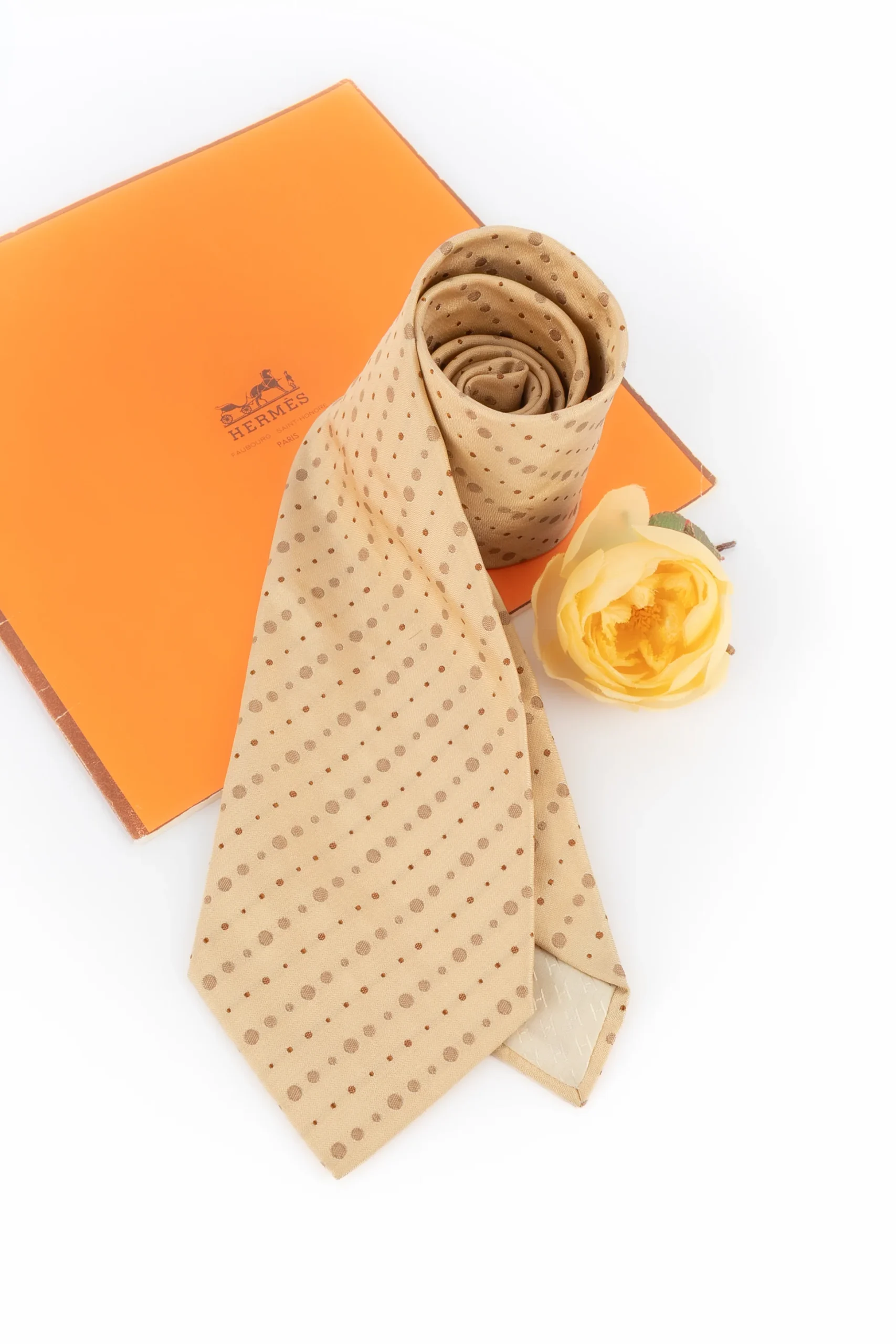 HERMÈS -(Made in France) Cravate en soie figurant des points.