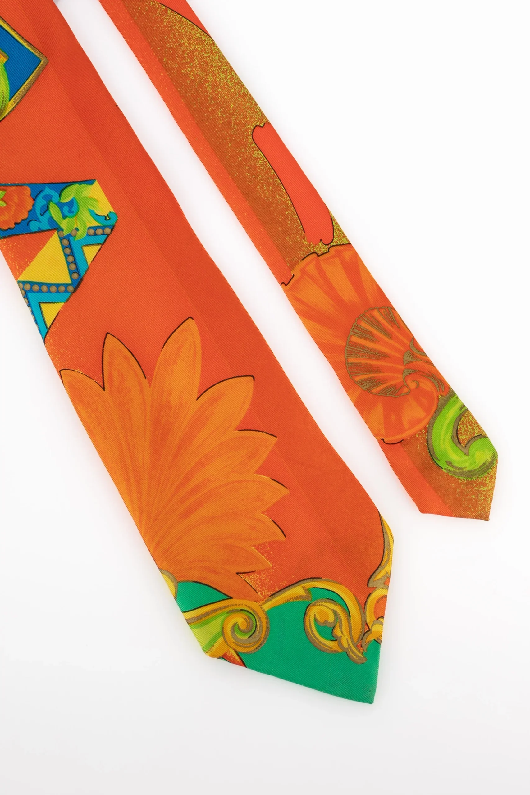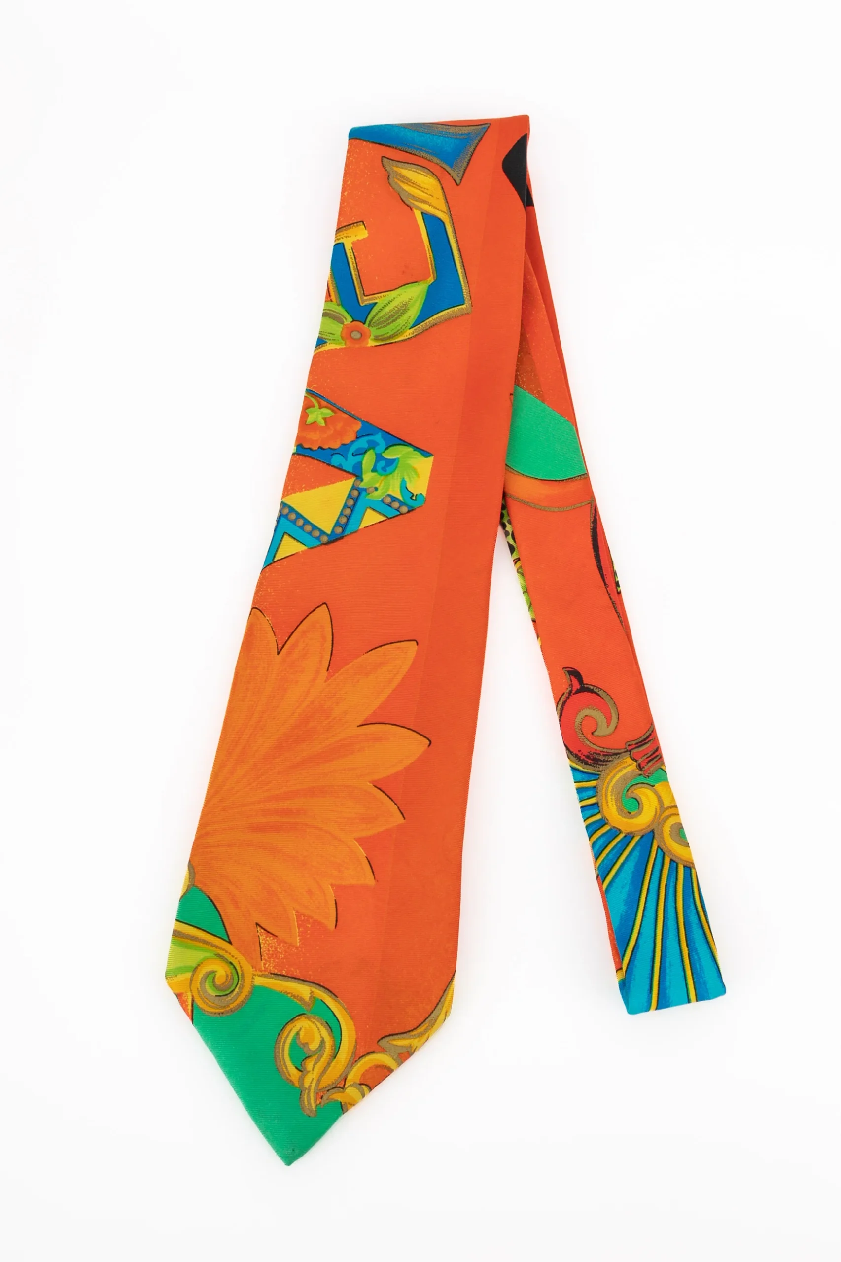 VERSACE – (Made in Italy) Cravate en soie orange.