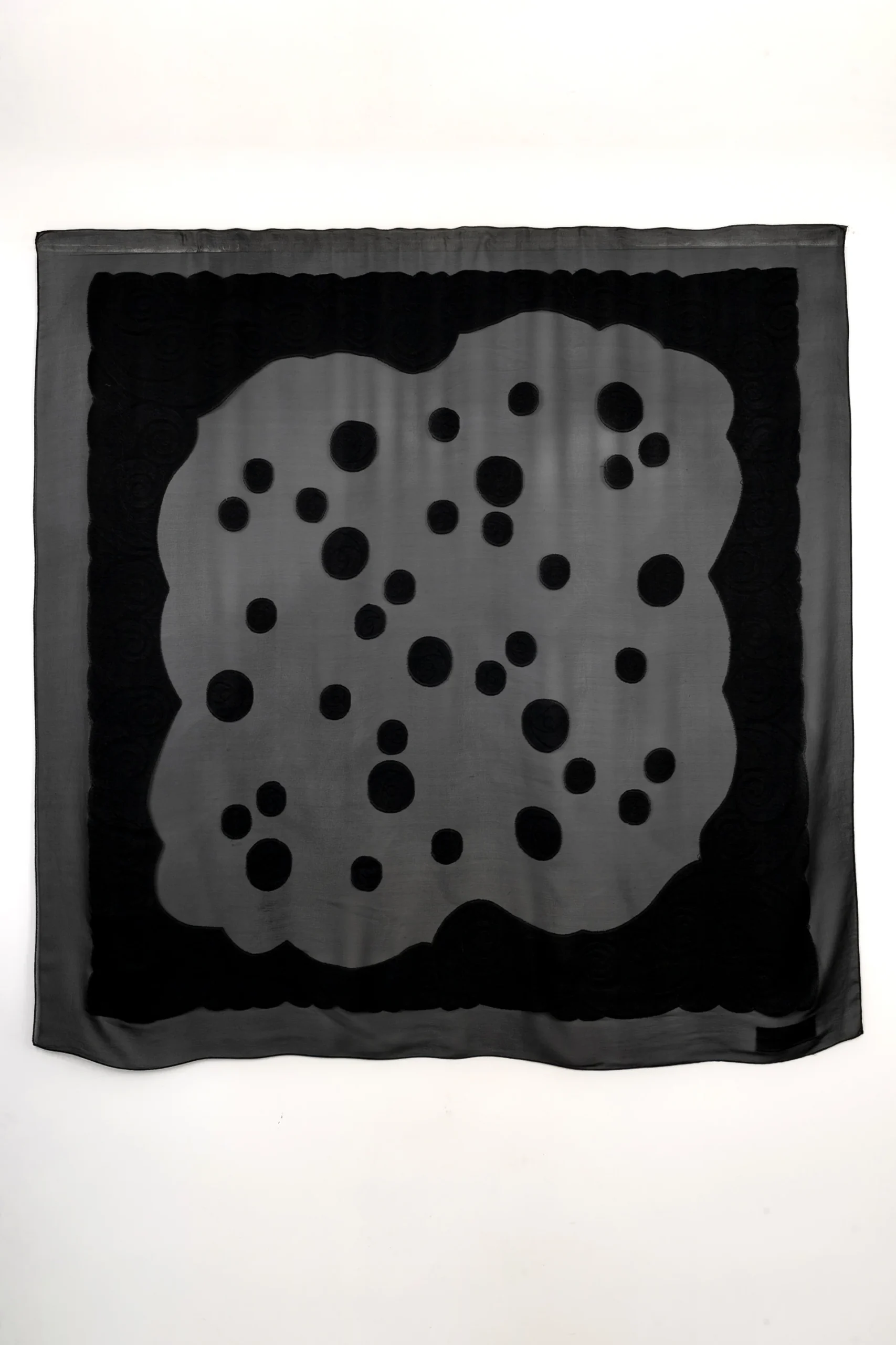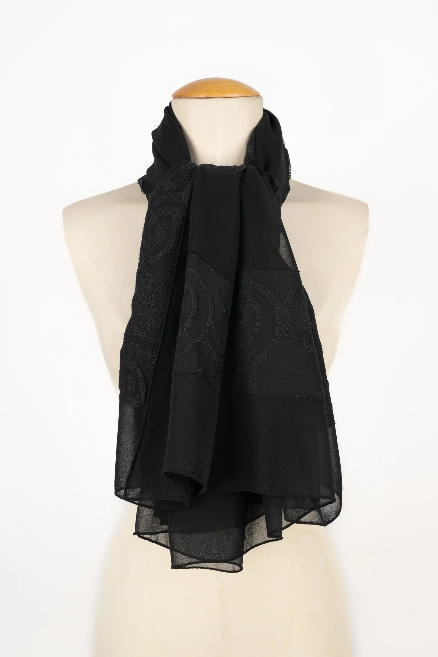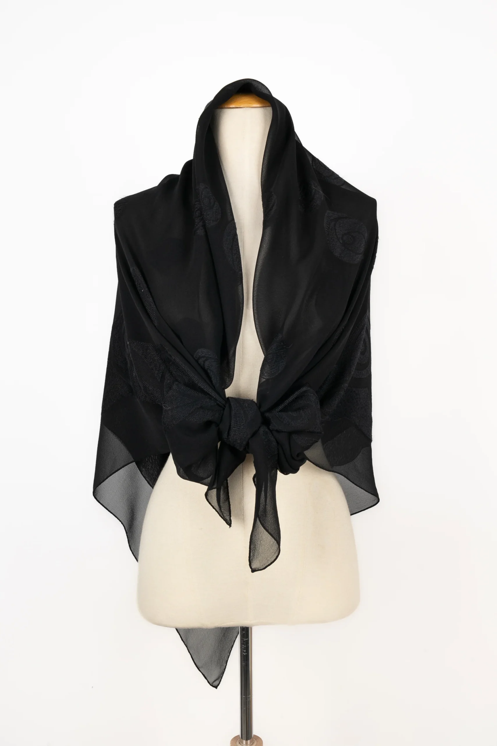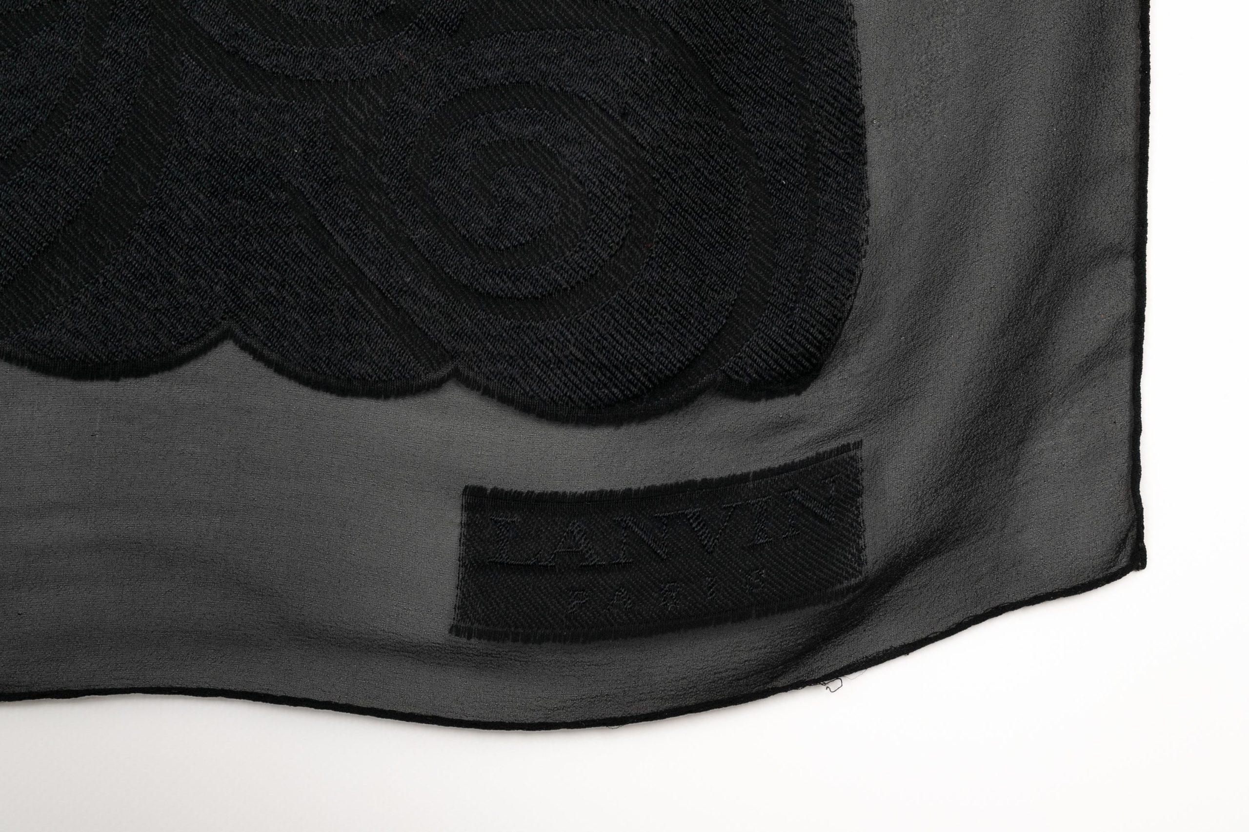 LANVIN -Grande étole en mousseline de soie noire.