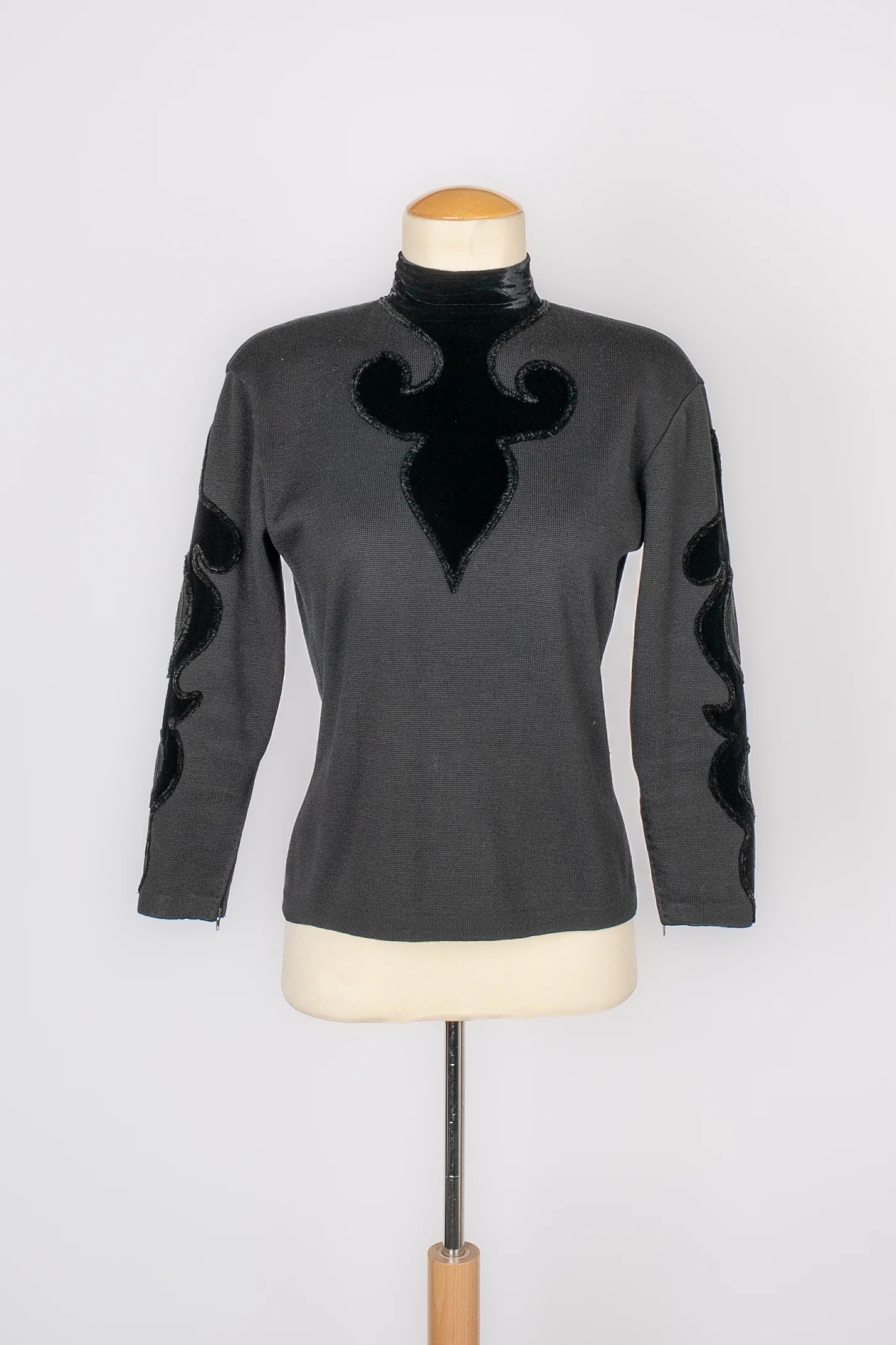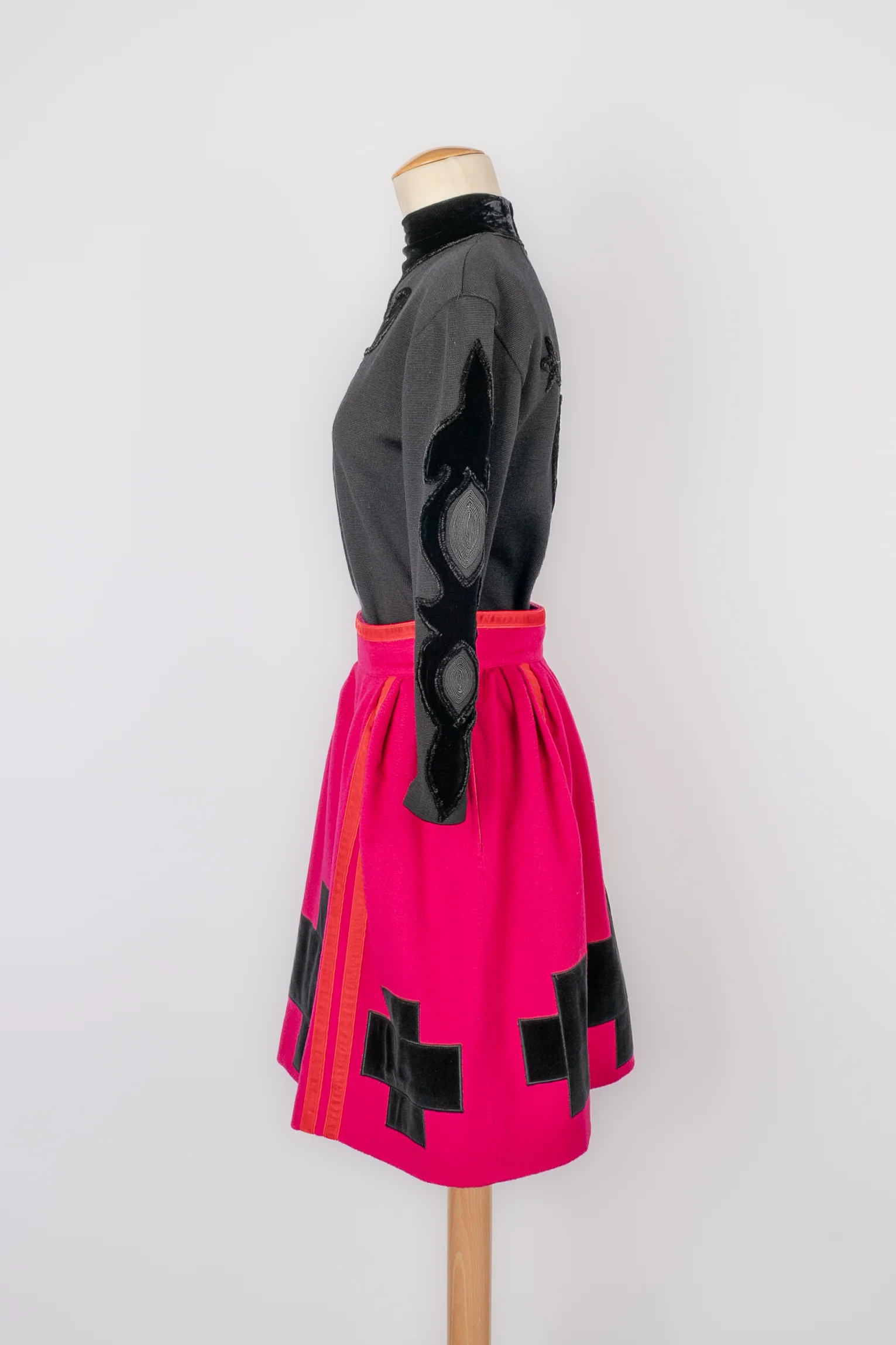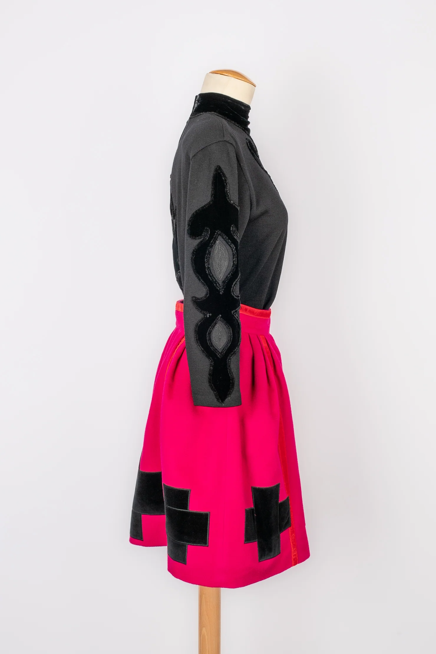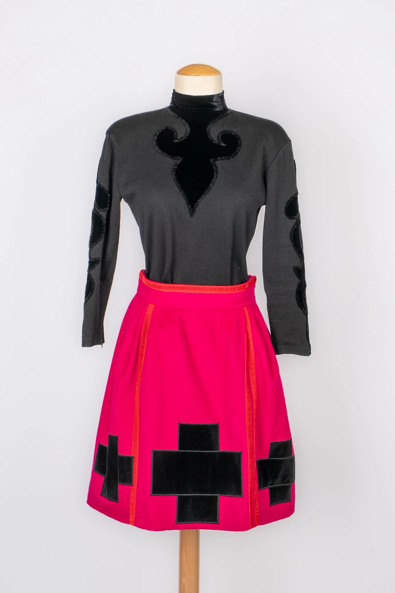 CHRISTIAN LACROIX -Ensemble composé d’un top à manches longues et empiècements de velours, jupe rose et velours noir. Pas de taille indiquée, il correspond à un 36FR/38FR.