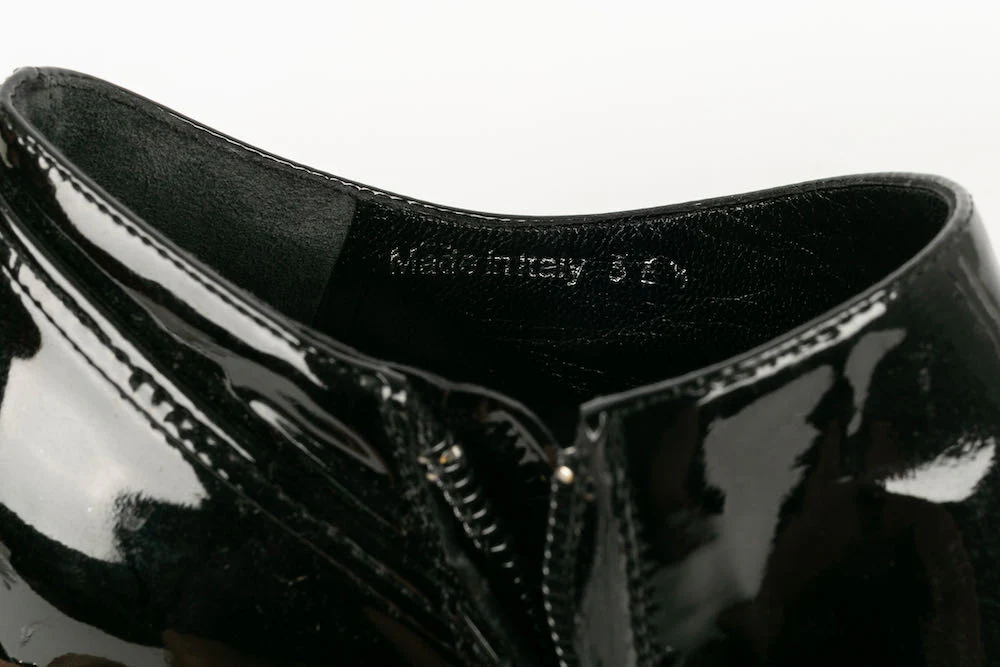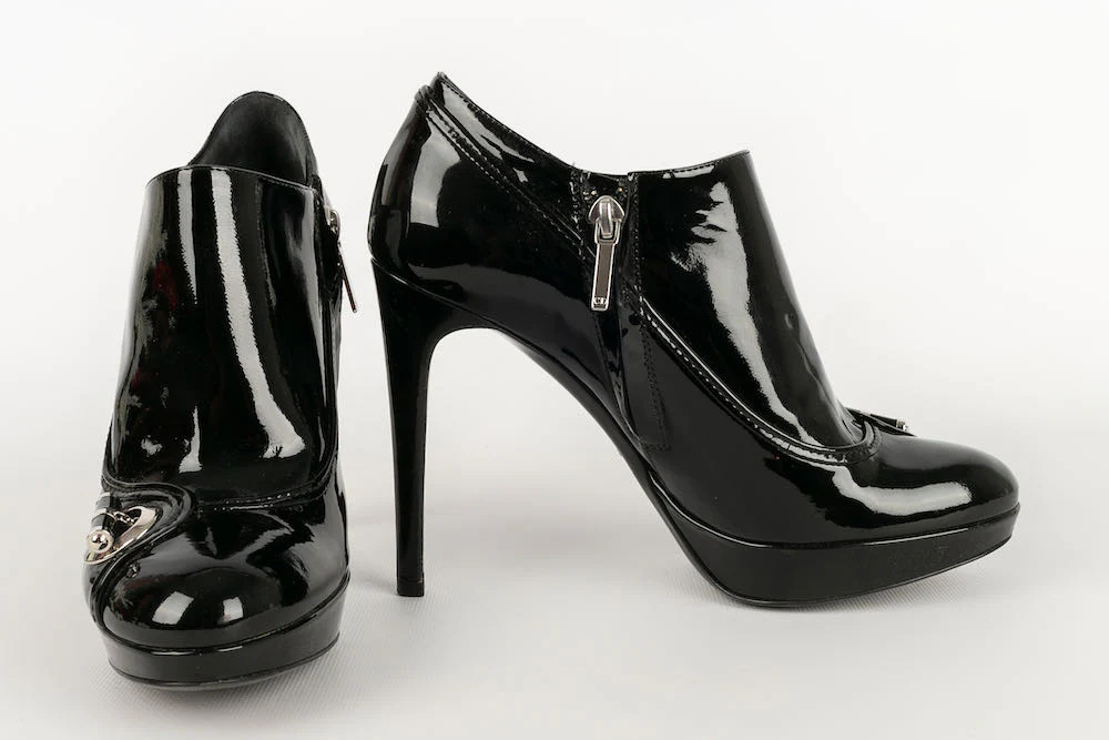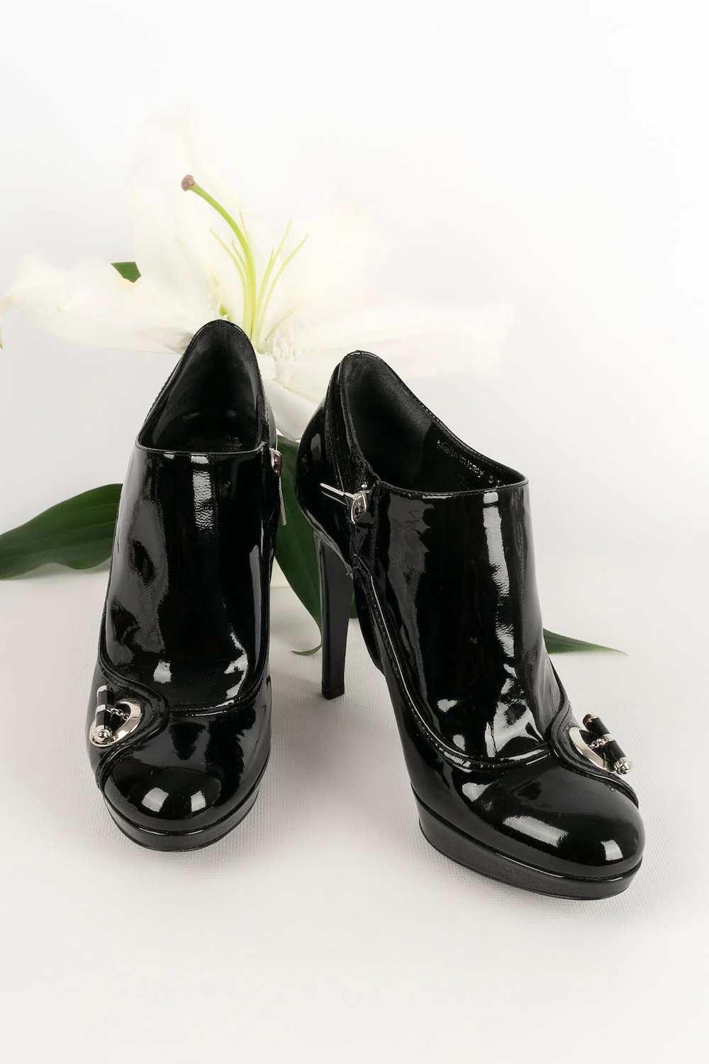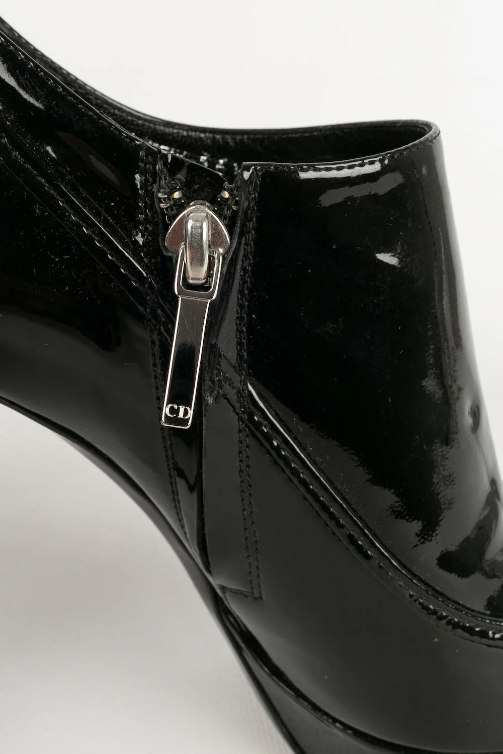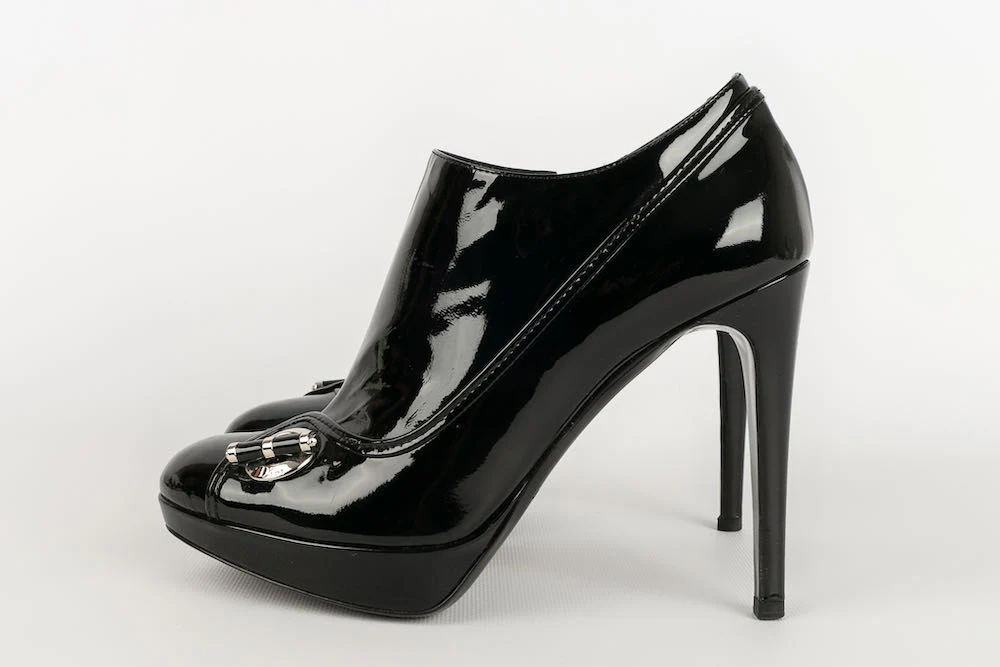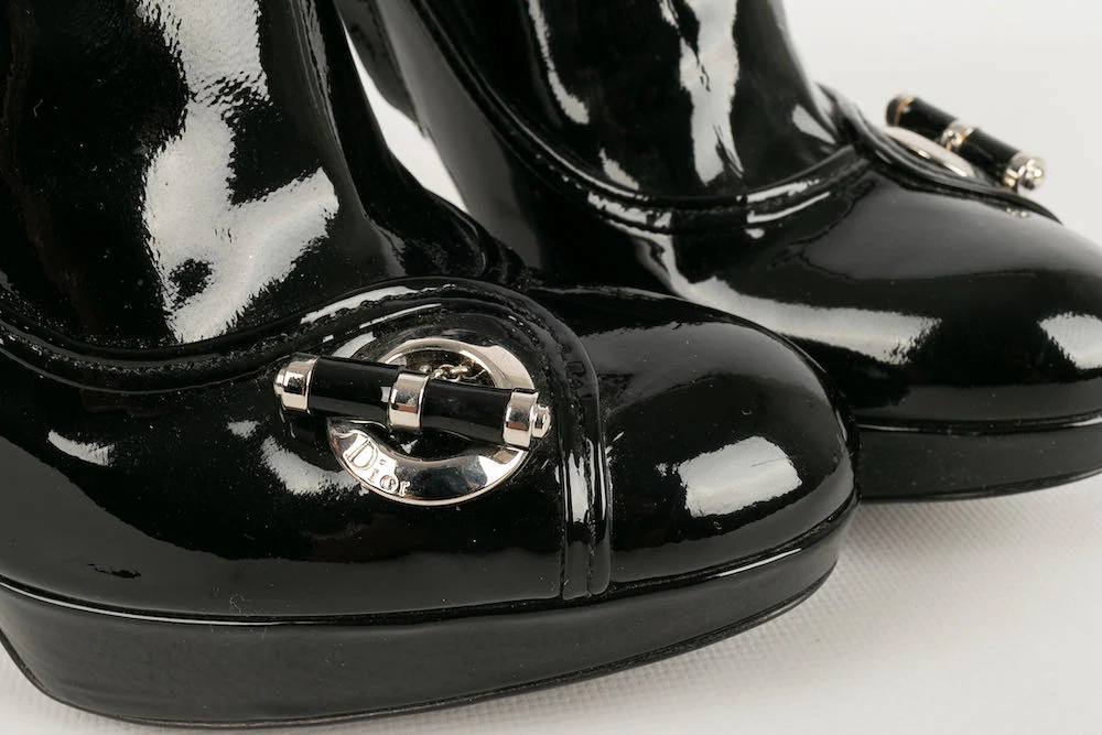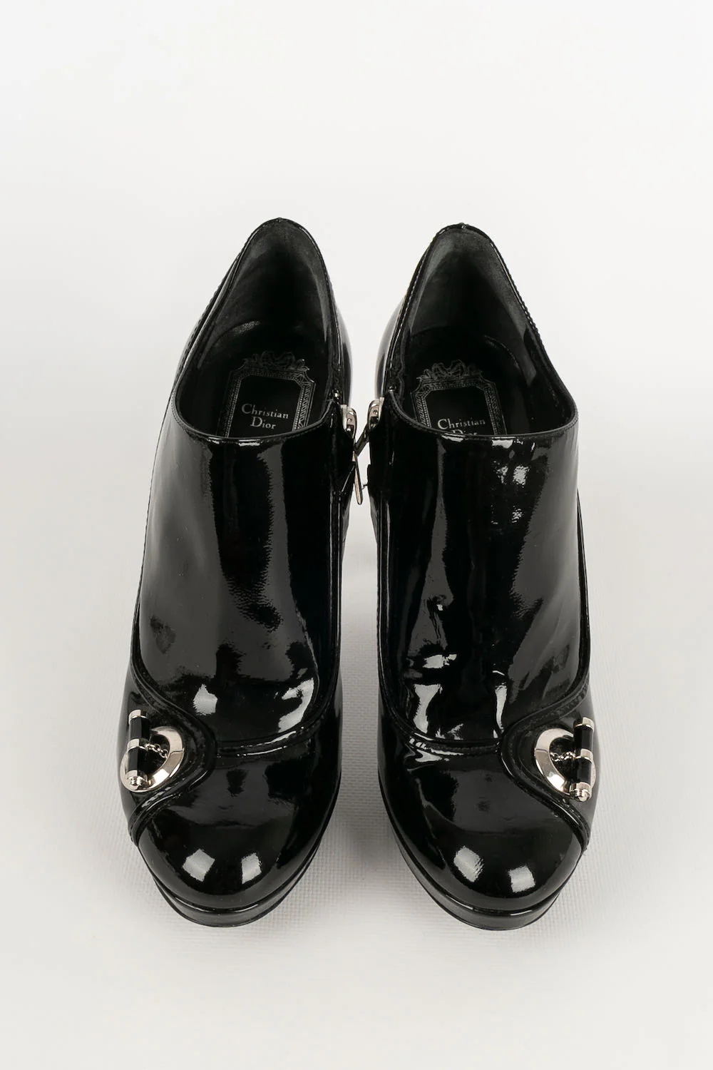 DIOR -Escarpins en cuir verni noir et métal argenté. Pointure 36,5FR.