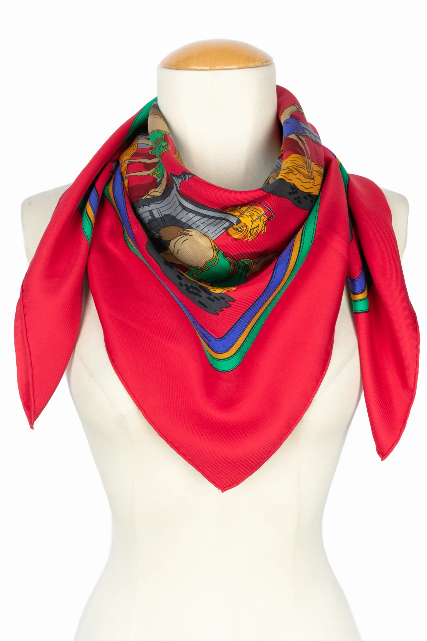 HERMÈS -(Made in France) Carré en twill de soie intitulé « Ecuries », dessiné par Hugo Grygkar et édité en 1947 réédité en 1993. Condition : Très bon état Dimensions : 90 cm x 90 cm