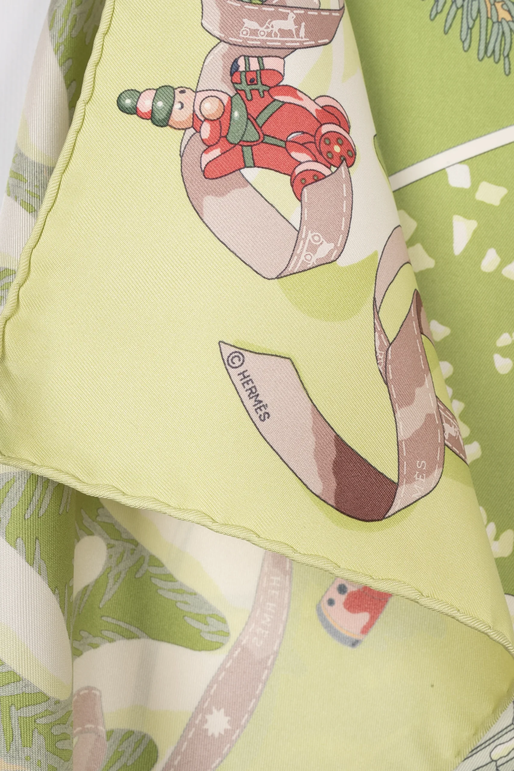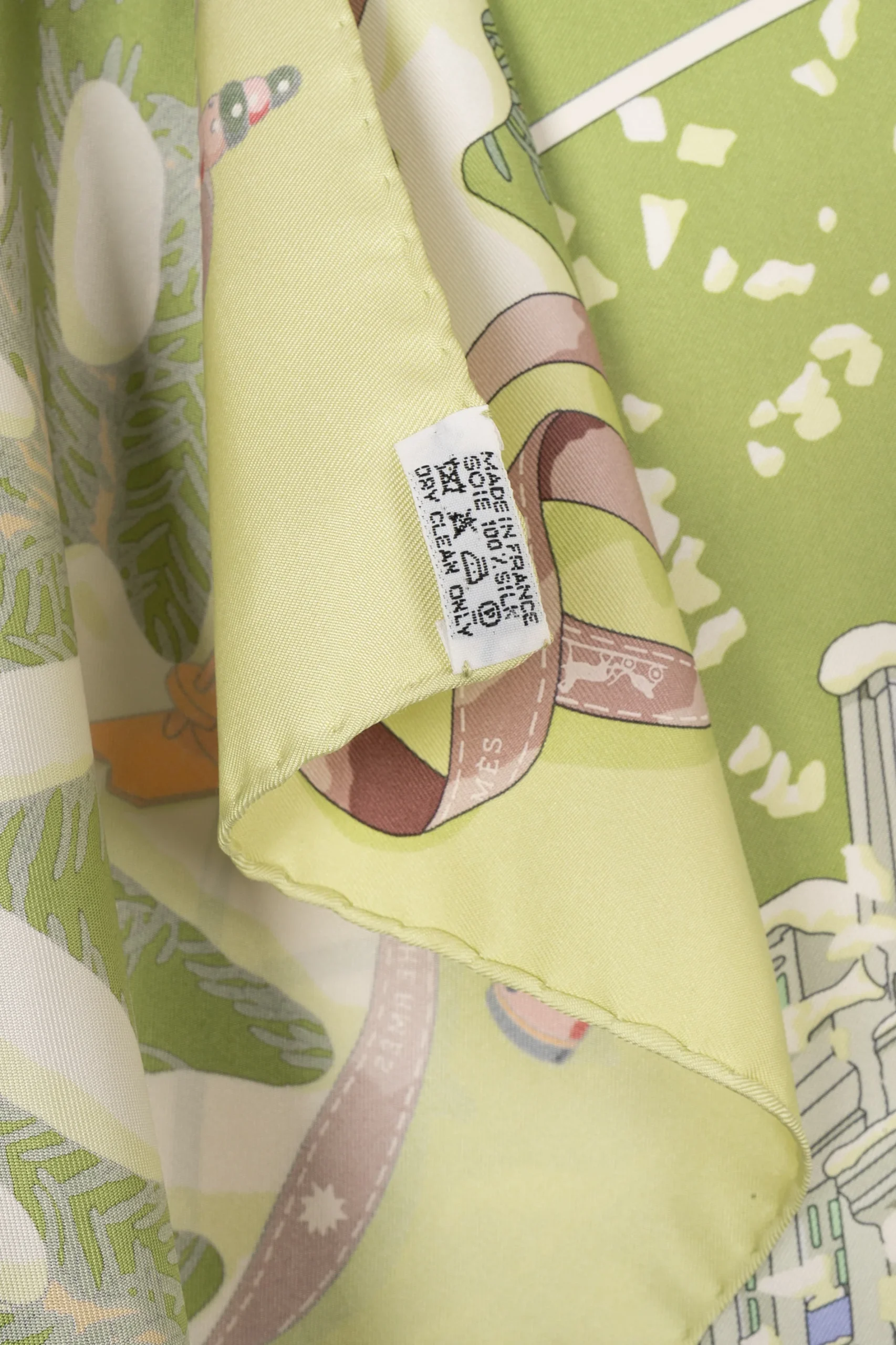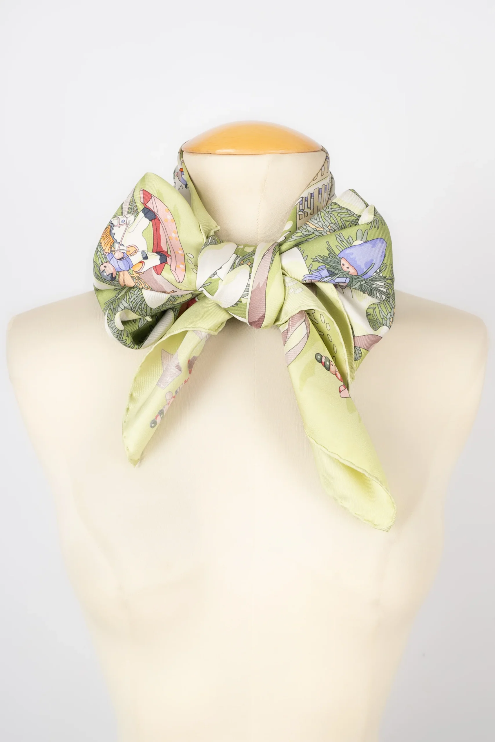 HERMÈS -(Made in France) Foulard / carré en twill de soie intitulé « Noël au 24 Faubourg », dessiné par Dimitri Rybaltchenko. A signaler, quelques fils tirés.