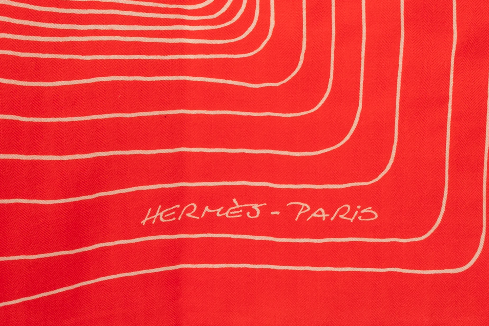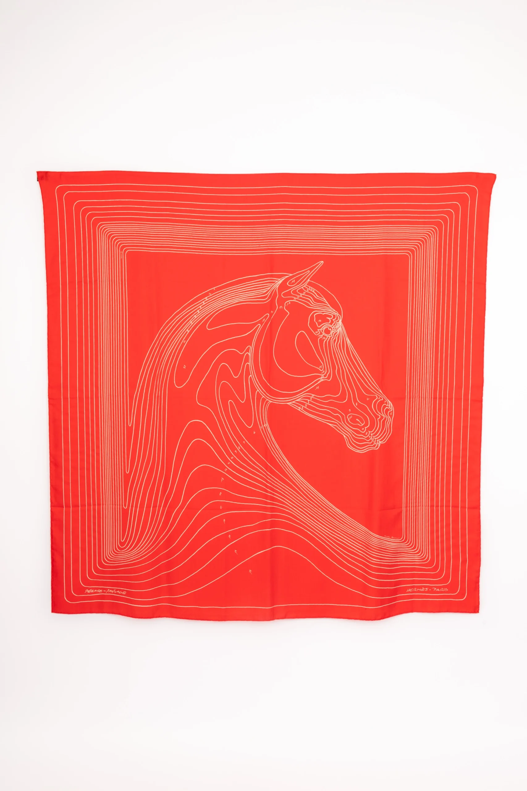 HERMÈS -(Made in France) Foulard en cachemire et soie intitulé « Pégase Paysage », dessiné par Christian Renonciat. Condition : Très bon état Dimensions : 140 cm x 140 cm