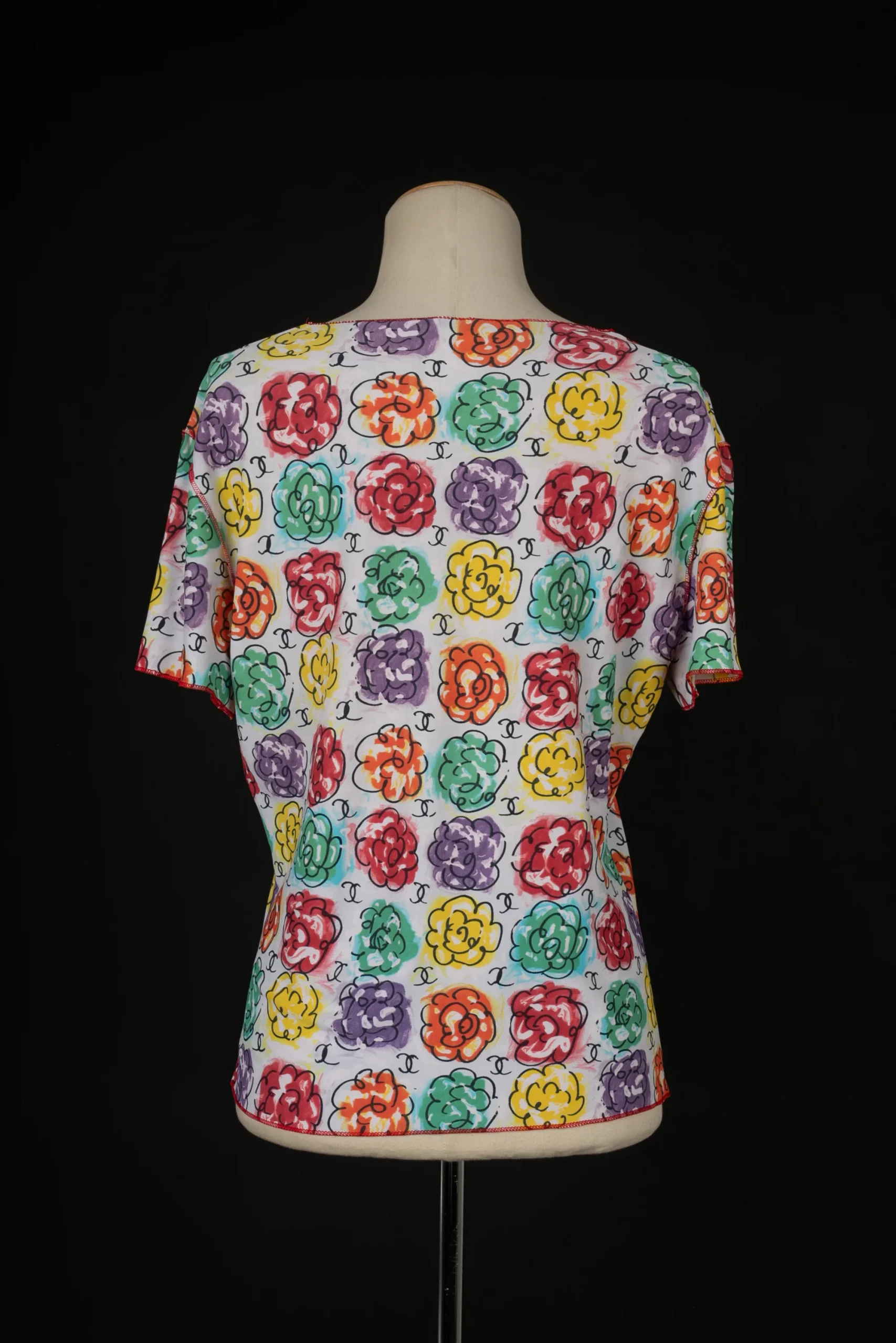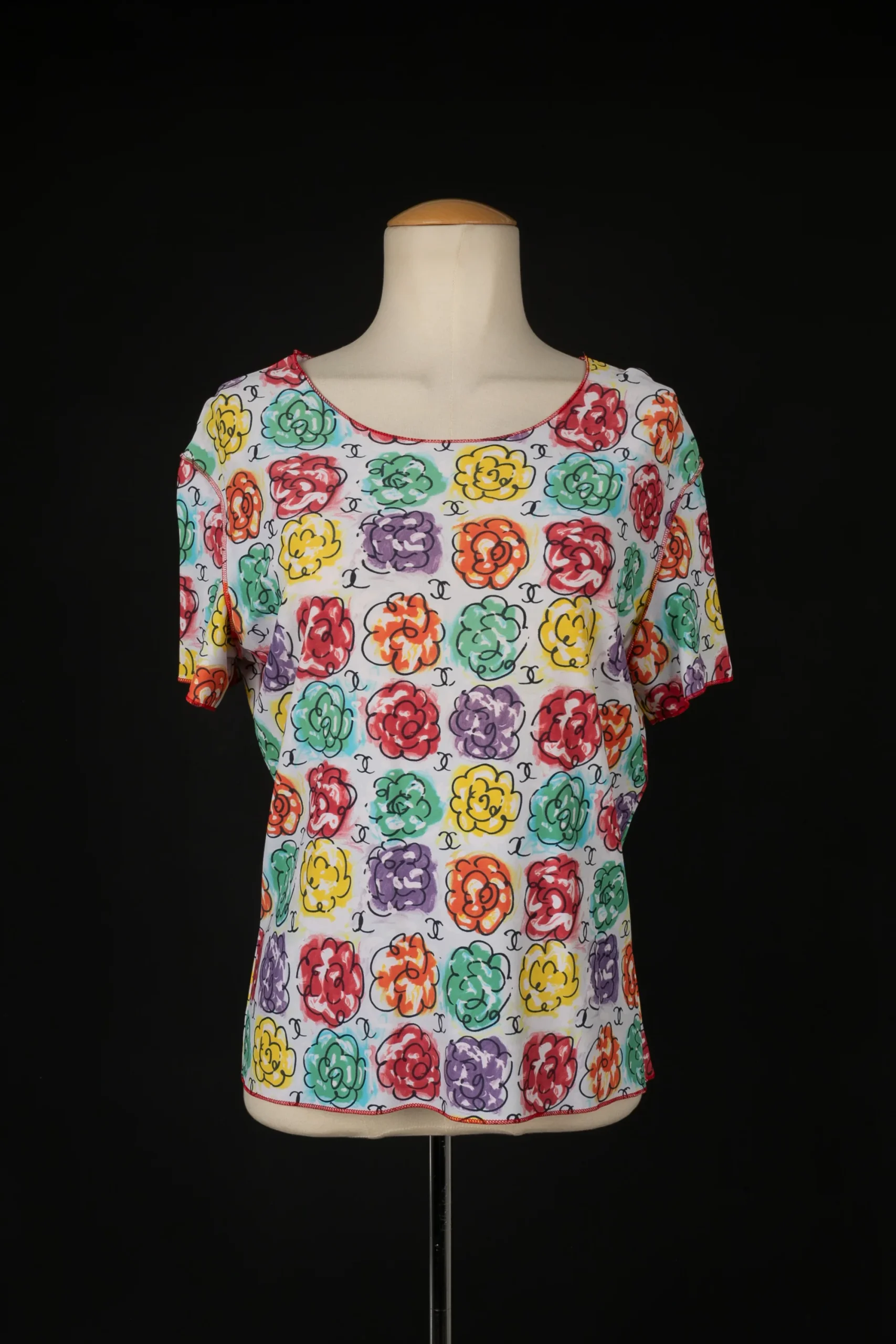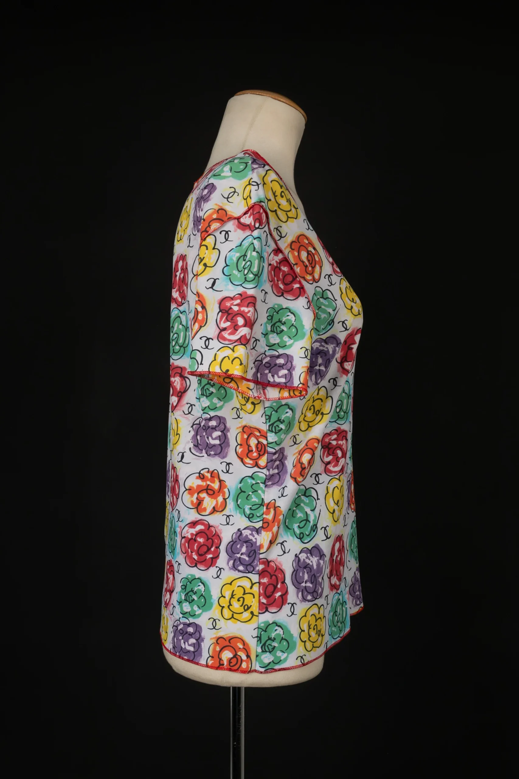 CHANEL -(Made in France) Top à motifs floral. Taille indiquée 44FR. Collection Printemps/Eté 2000.