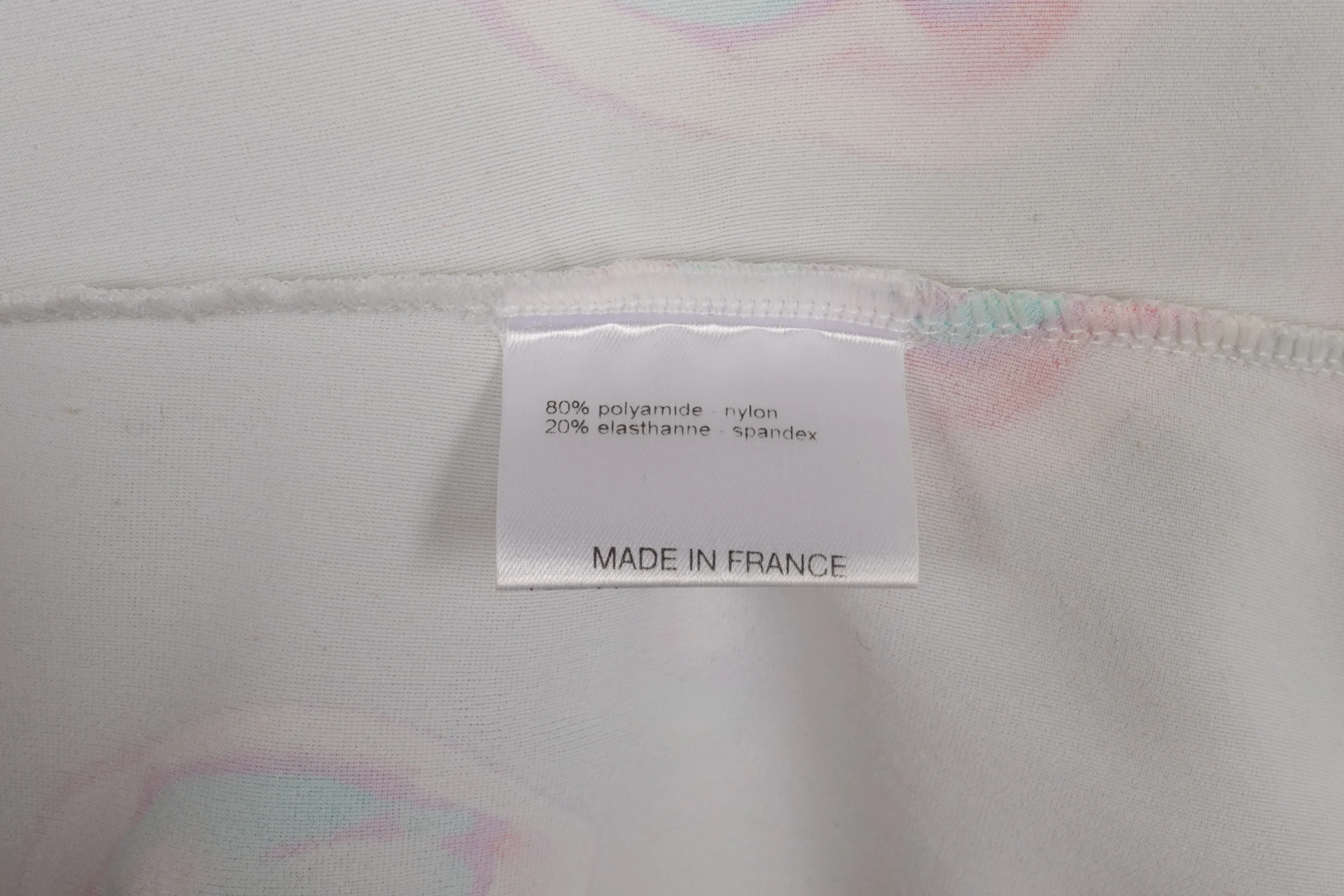 CHANEL -(Made in France) T-shirt en polyamide dans les tons pastels. Collection Summer 2000. Taille 44FR.