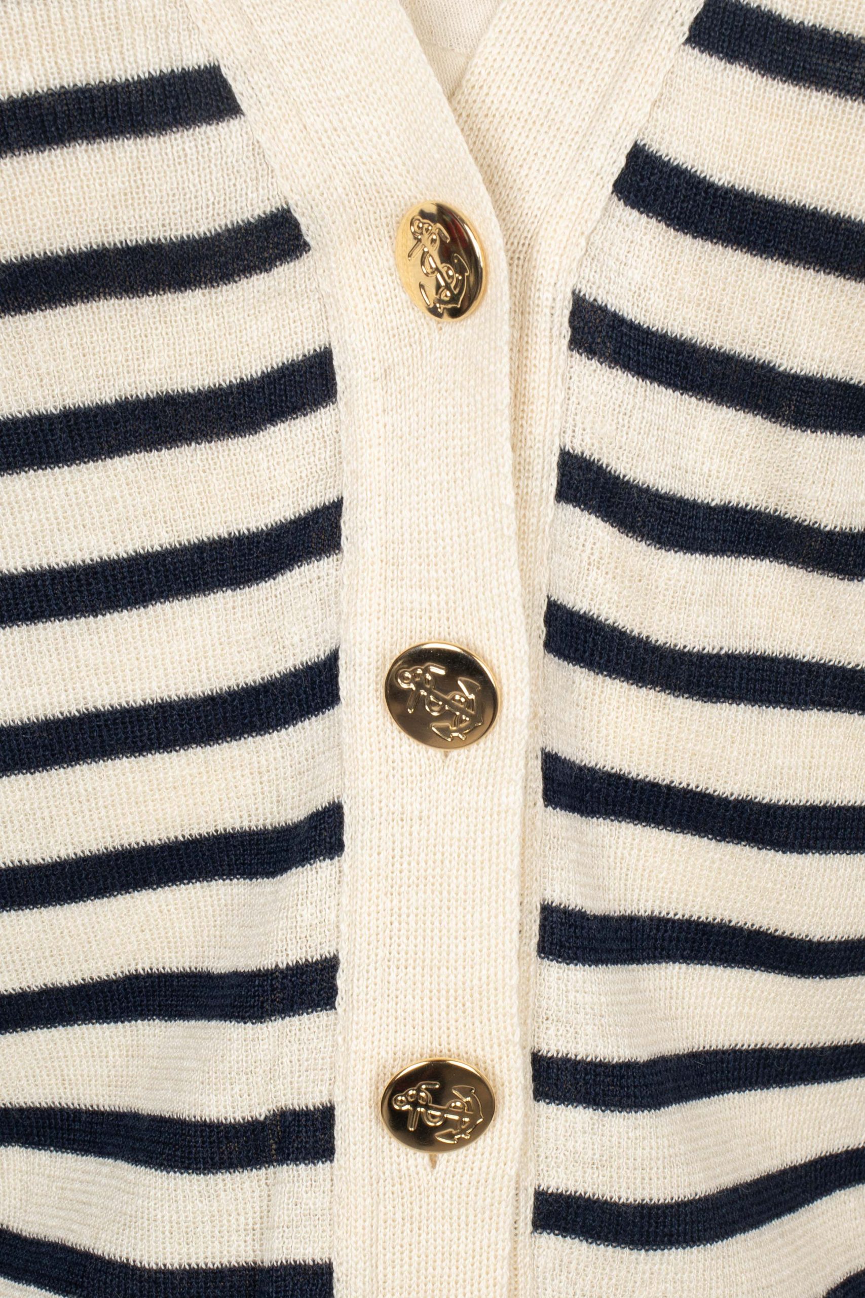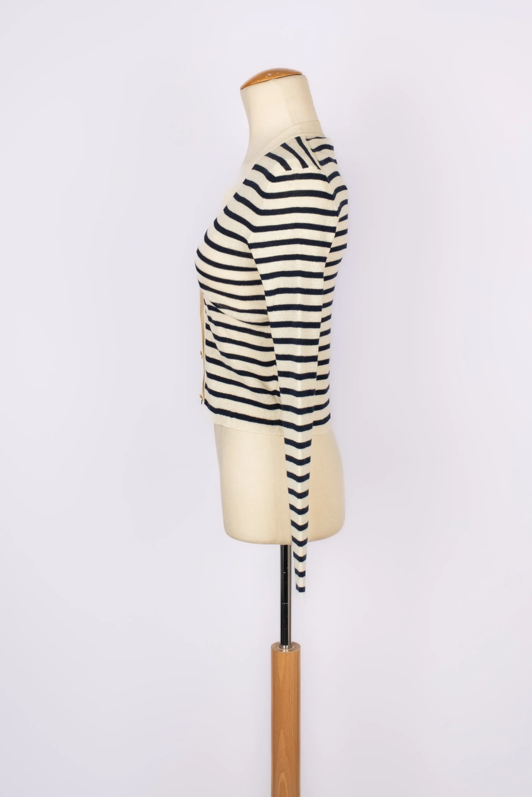 DIOR -(Made in Italy) Cardigan en lin, cachemire et soie à rayures bleu marine et blanc. Taille indiquée 38FR.