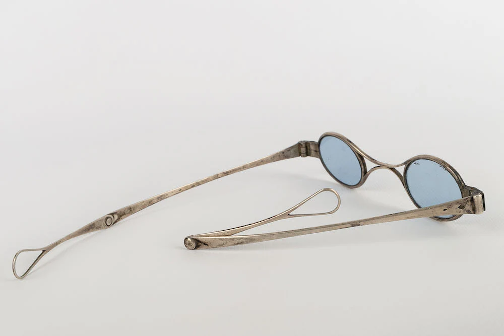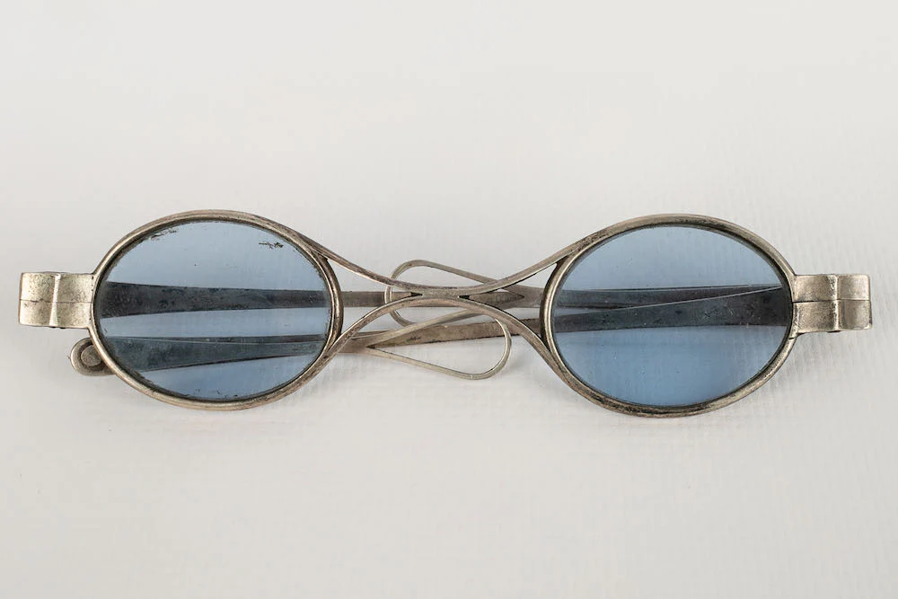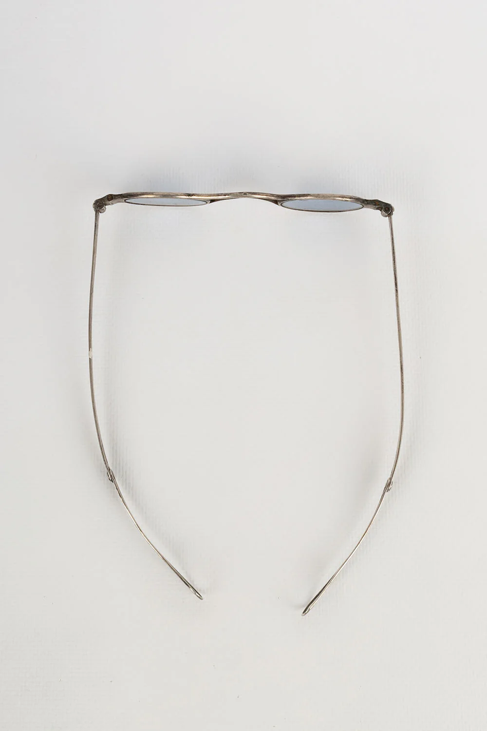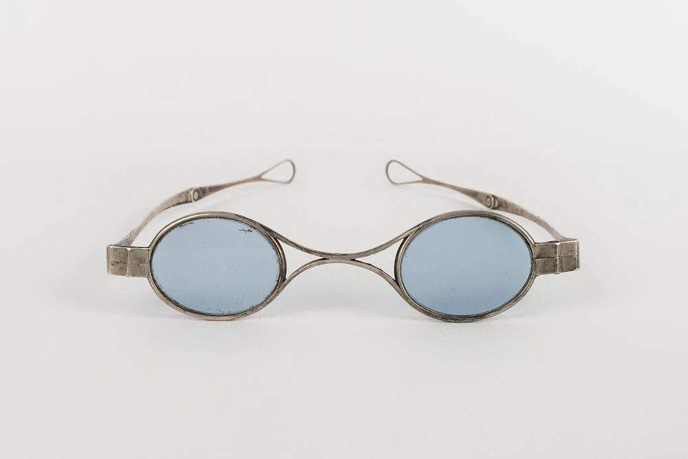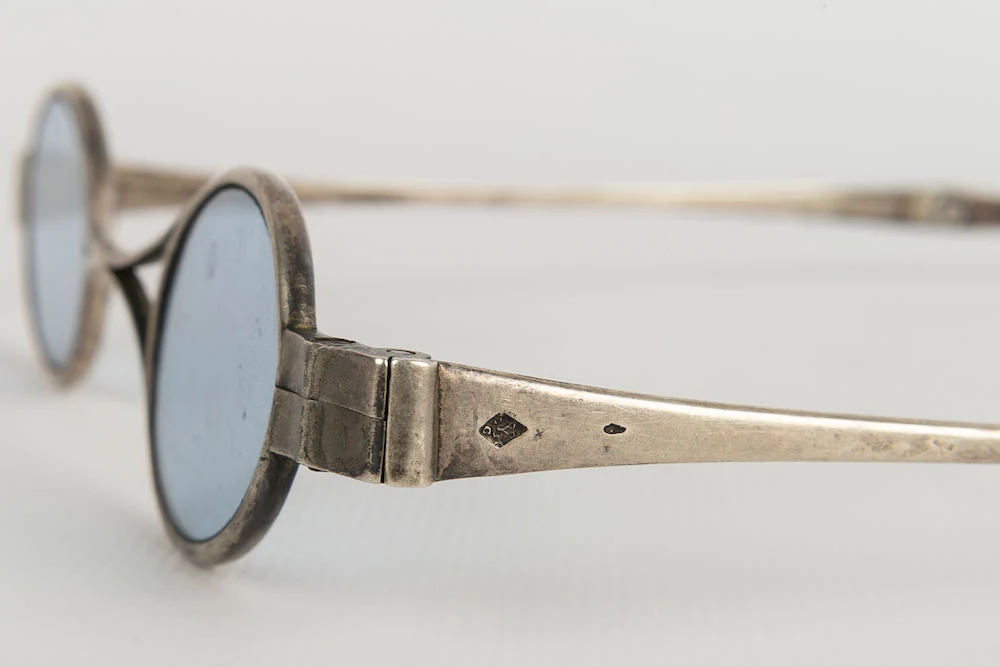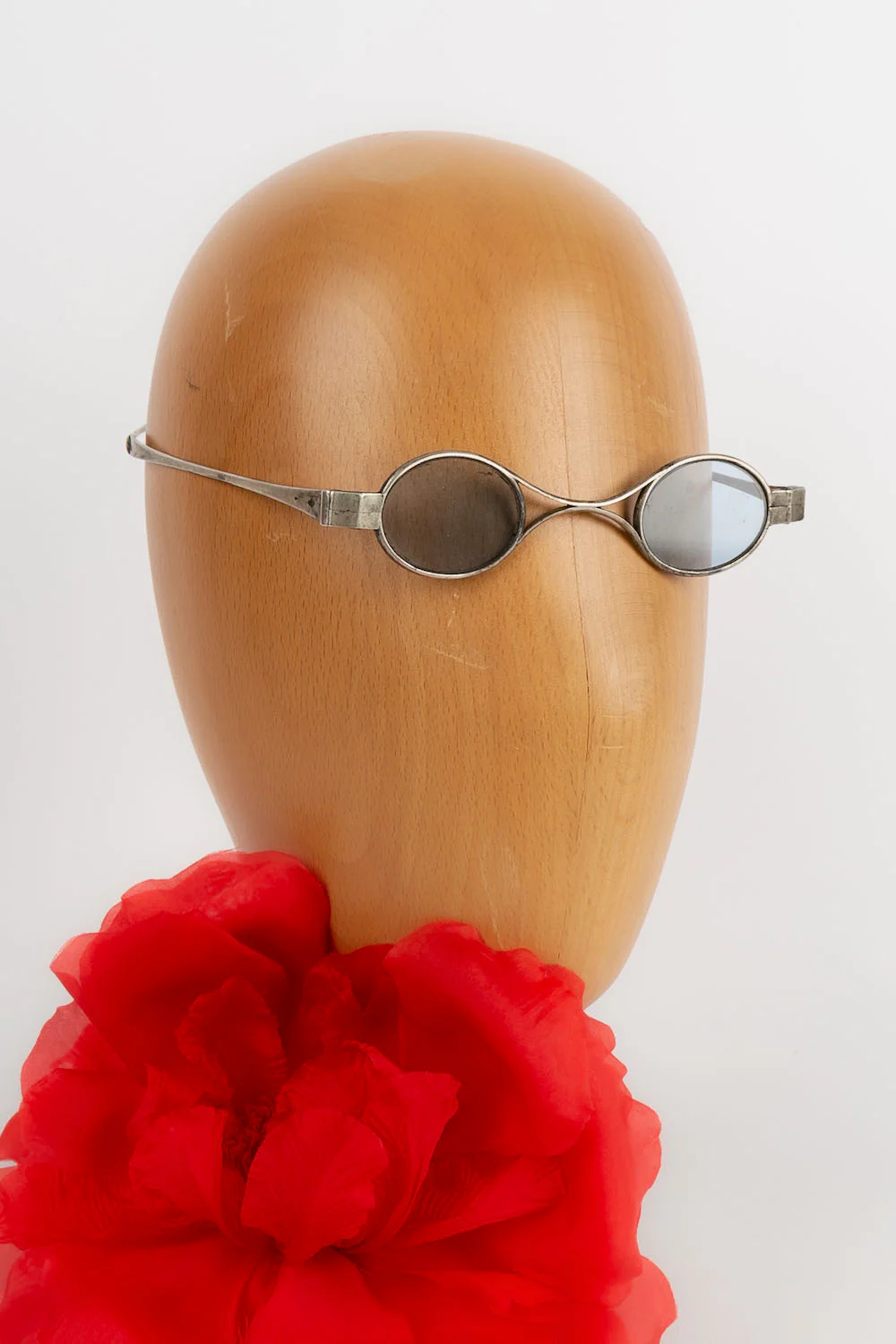 ANONYME -Lunettes en argent et verres bleus époque 1900. A signaler, quelques rayures sur le verre. Condition : Très bon état Dimensions : Longueur : 12,5 cm