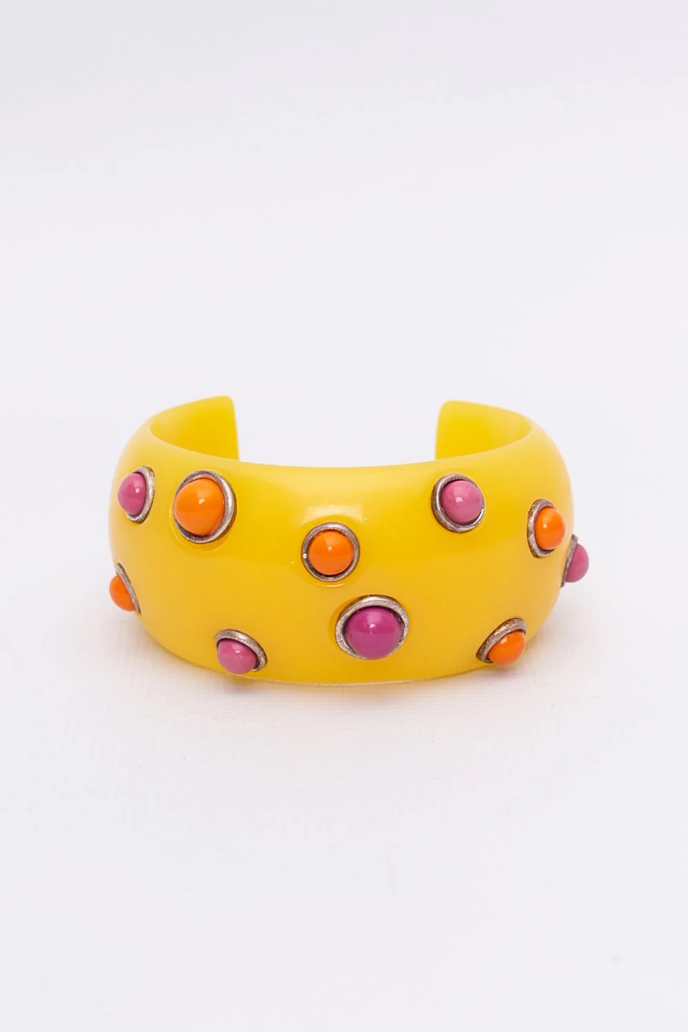 ISAKY – Manchette en résine pavé de cabochons. Etat :Bon état Dimensions :Circonférence : 13 cm – Ouverture : 3 cm – Hauteur : 3 cm
