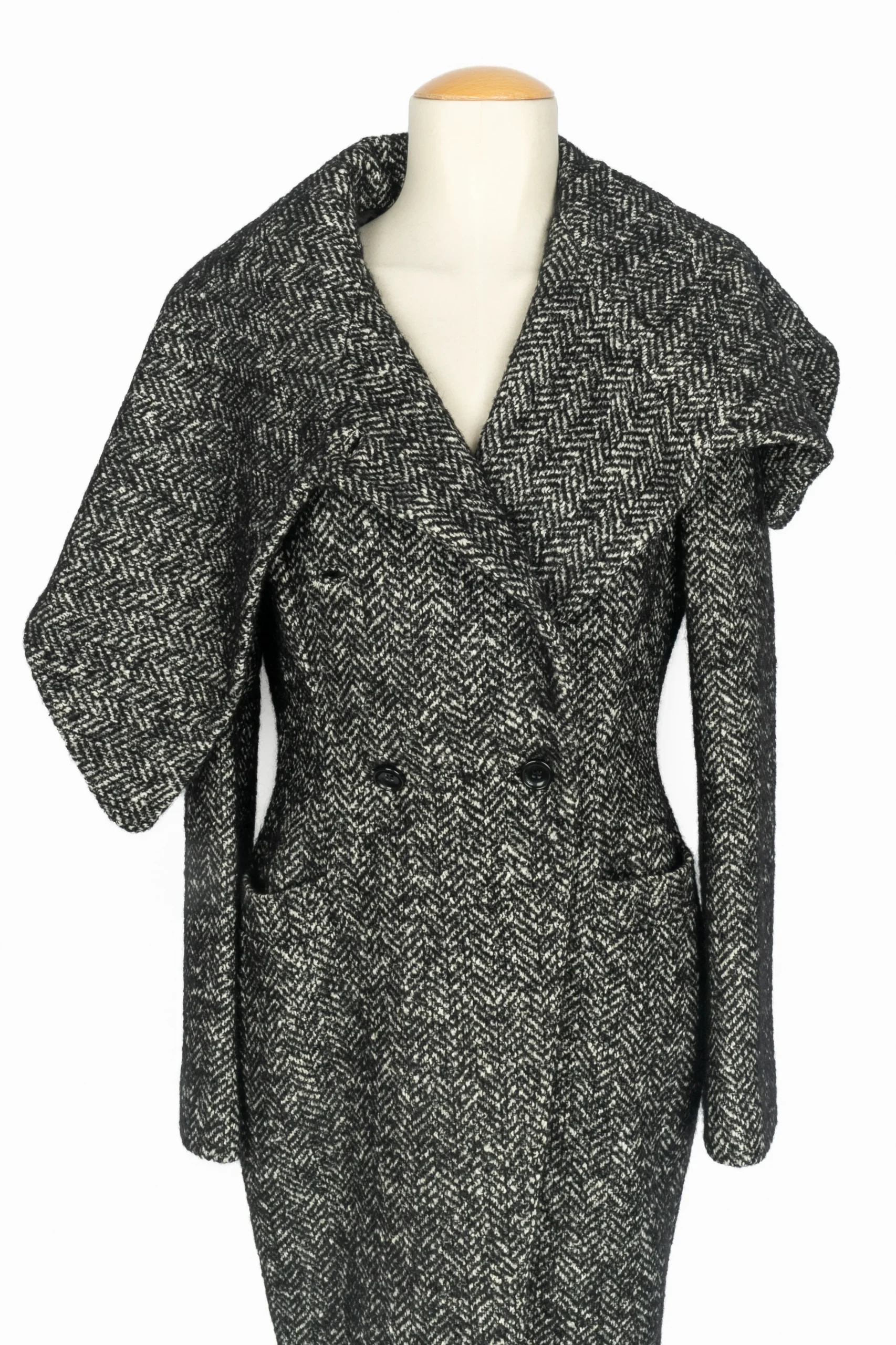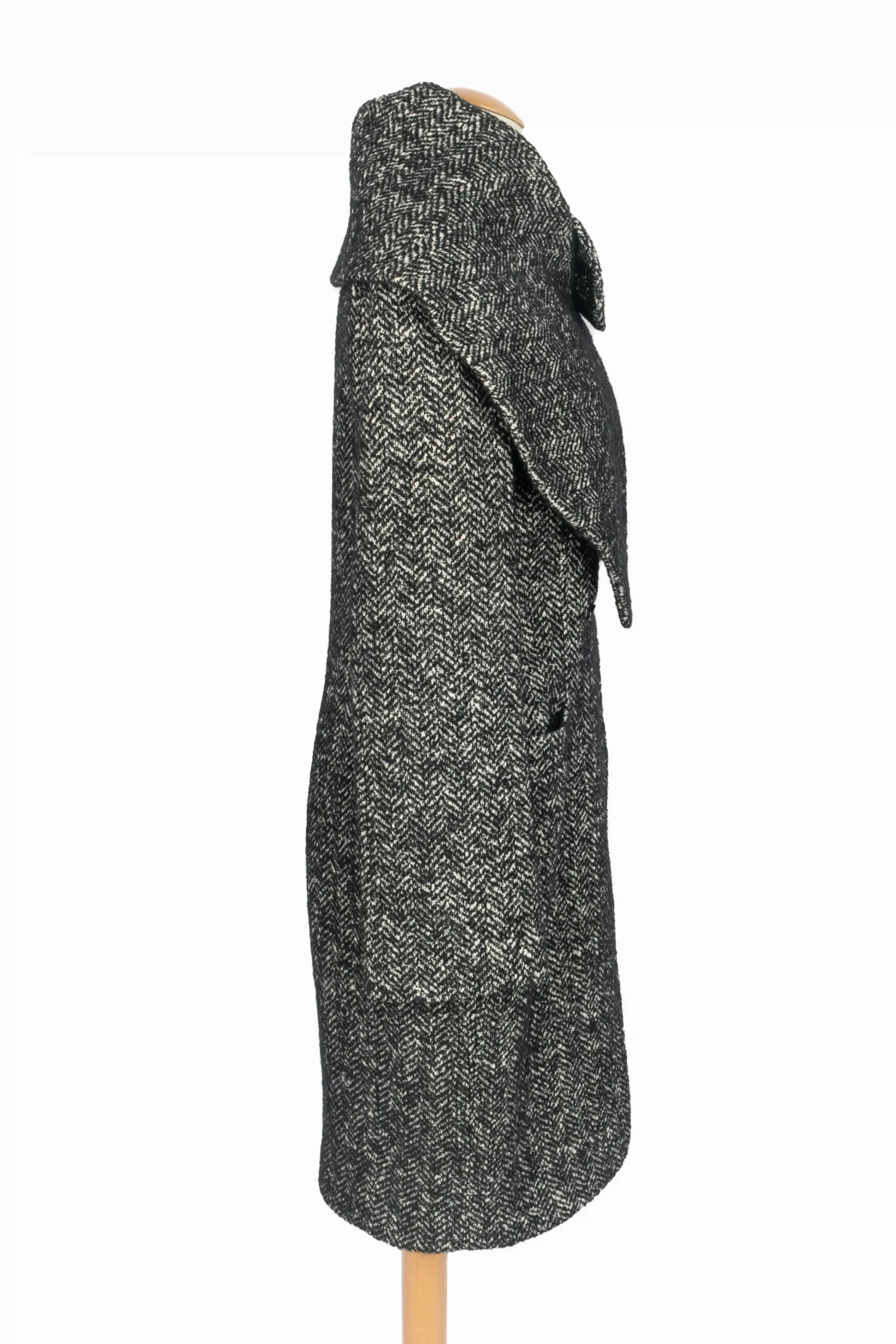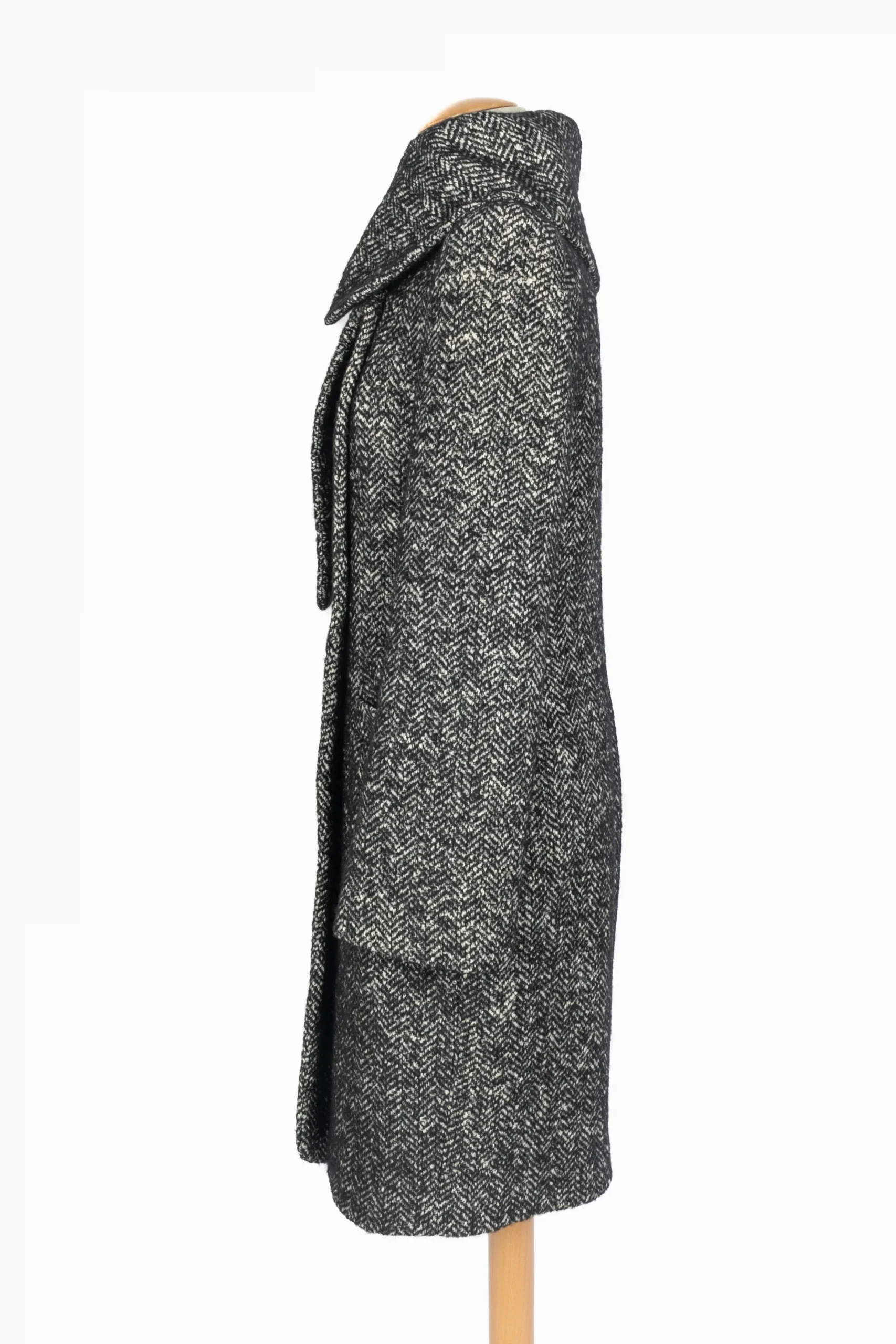 CAVALLI – (Made in italy) Manteau en laine et mohair gris chiné. Taille 44IT. Condition : Très bon état Dimensions : Largeur d’épaules : 45 cm – Longueur des manches : 65 cm – Longueur : 108 cm