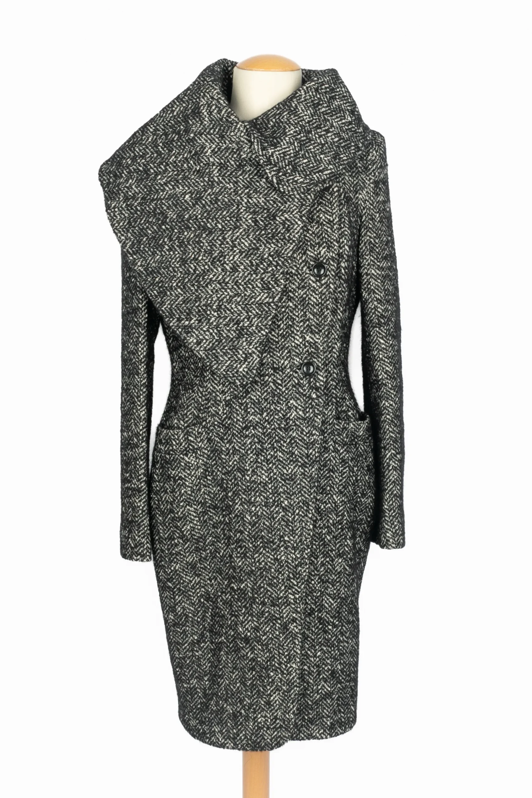CAVALLI – (Made in italy) Manteau en laine et mohair gris chiné. Taille 44IT.
