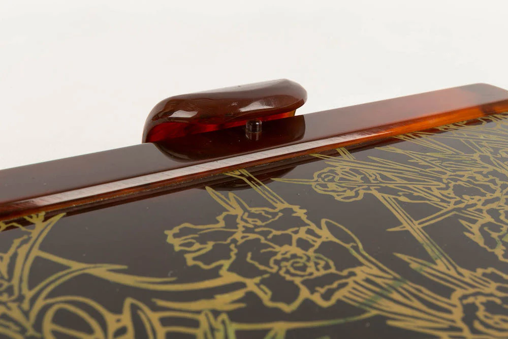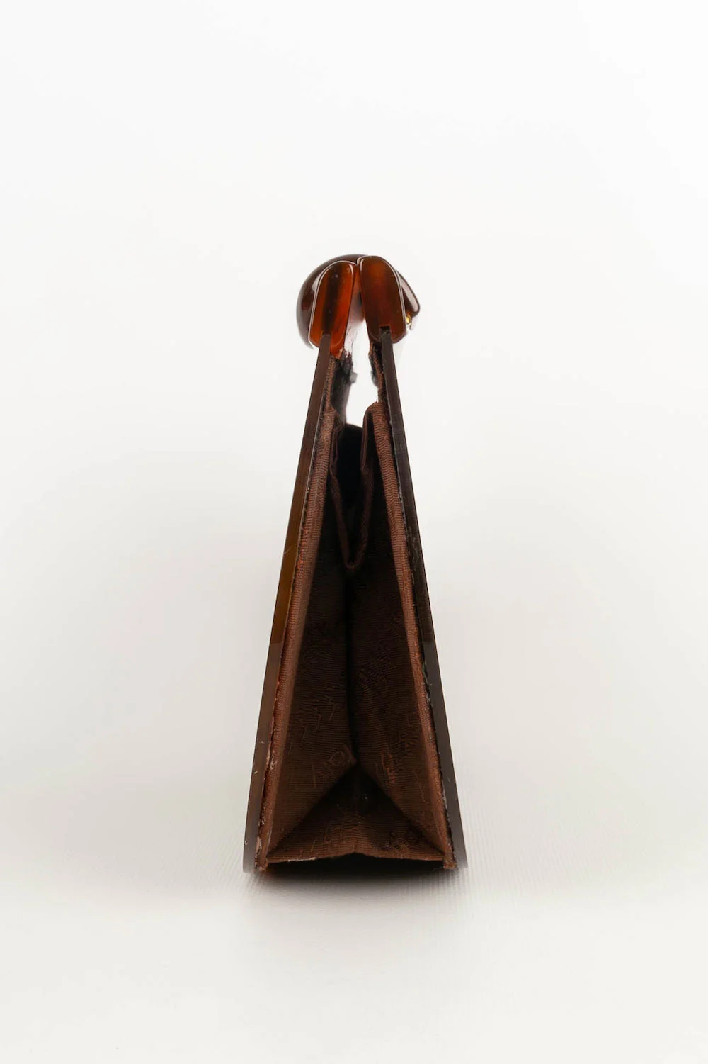 CHARLES JOURDAN -(Made in France) Pochette en bakélite. A signaler, le fermoir et la bakélite sont abimés. Condition : Bon état Dimensions : Hauteur : 17 cm – Longueur : 23 cm – Profondeur : 5 cm