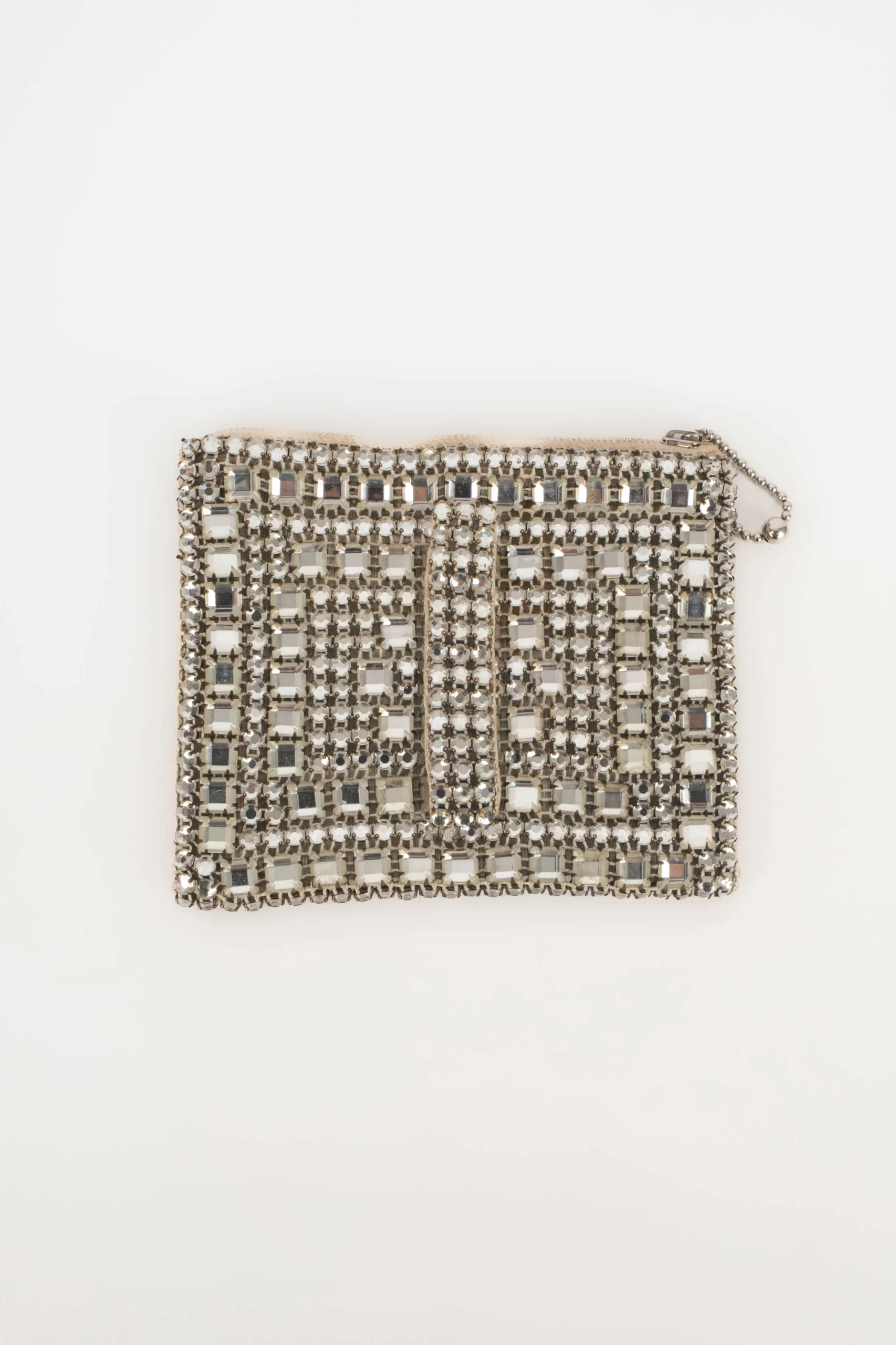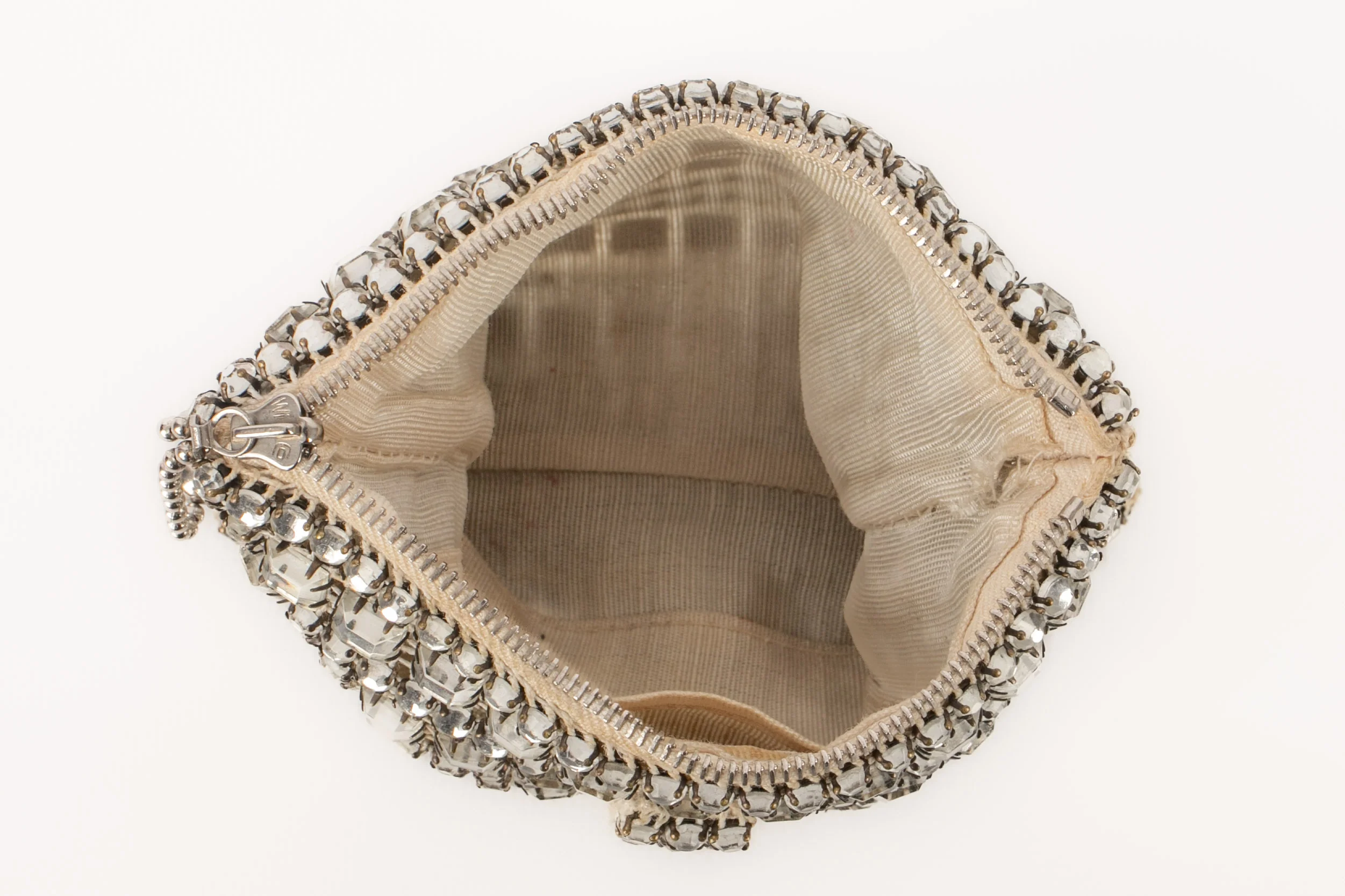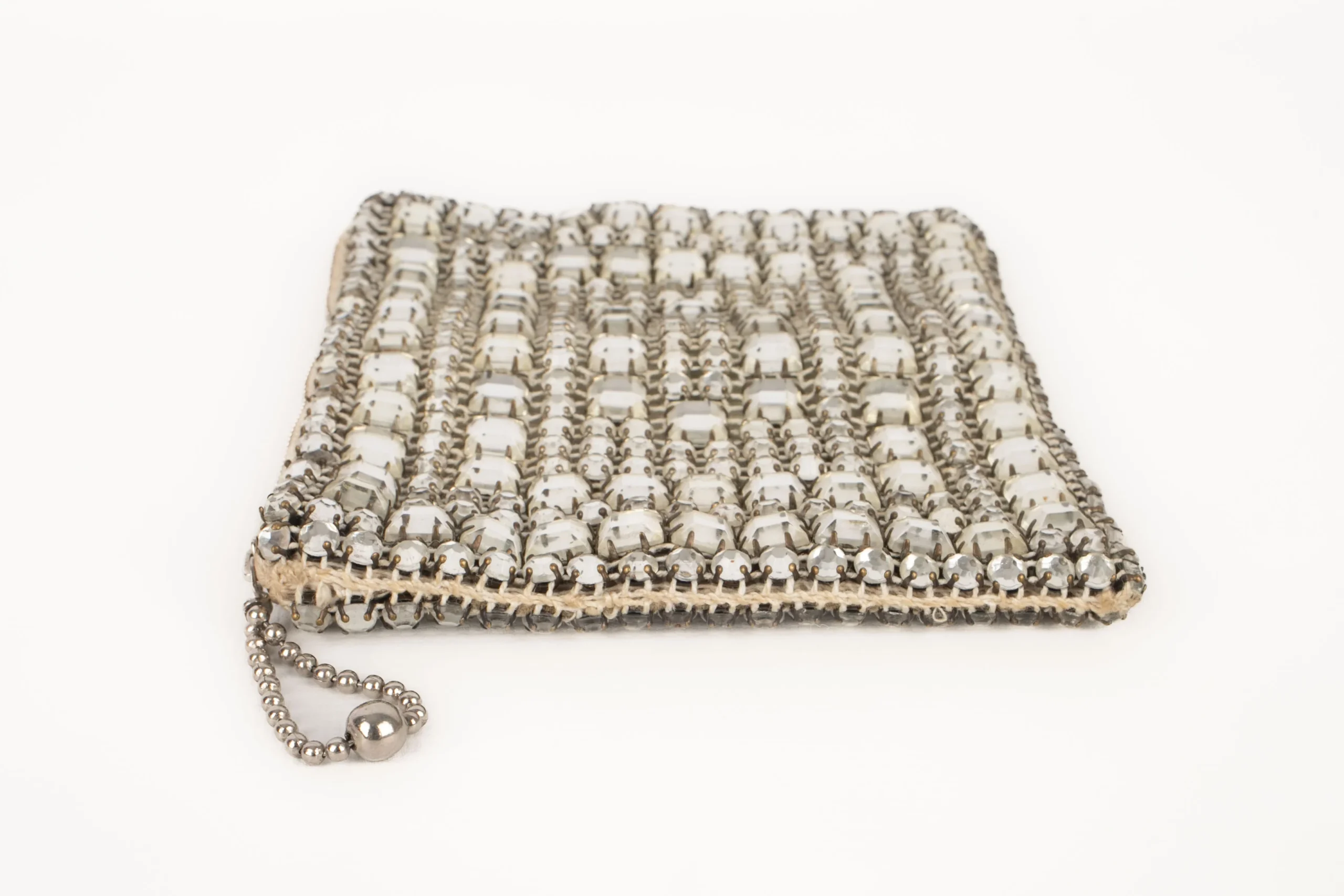 ANONYME -Joli petit sac du soir en tissu et strass argenté datant des années 1930. L’intérieur comporte des traces. Condition : Bon état Dimensions : 13 cm x 10 cm