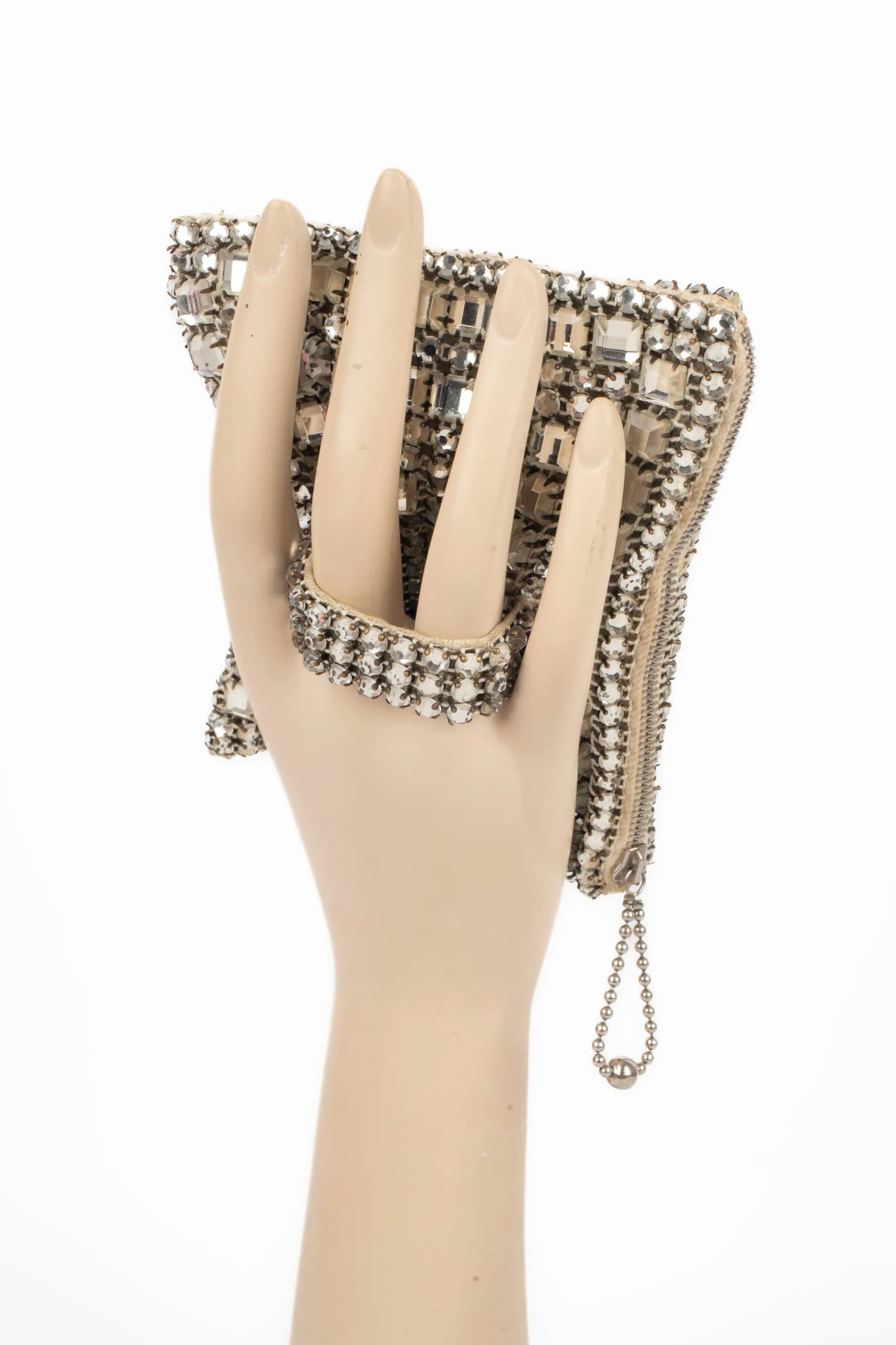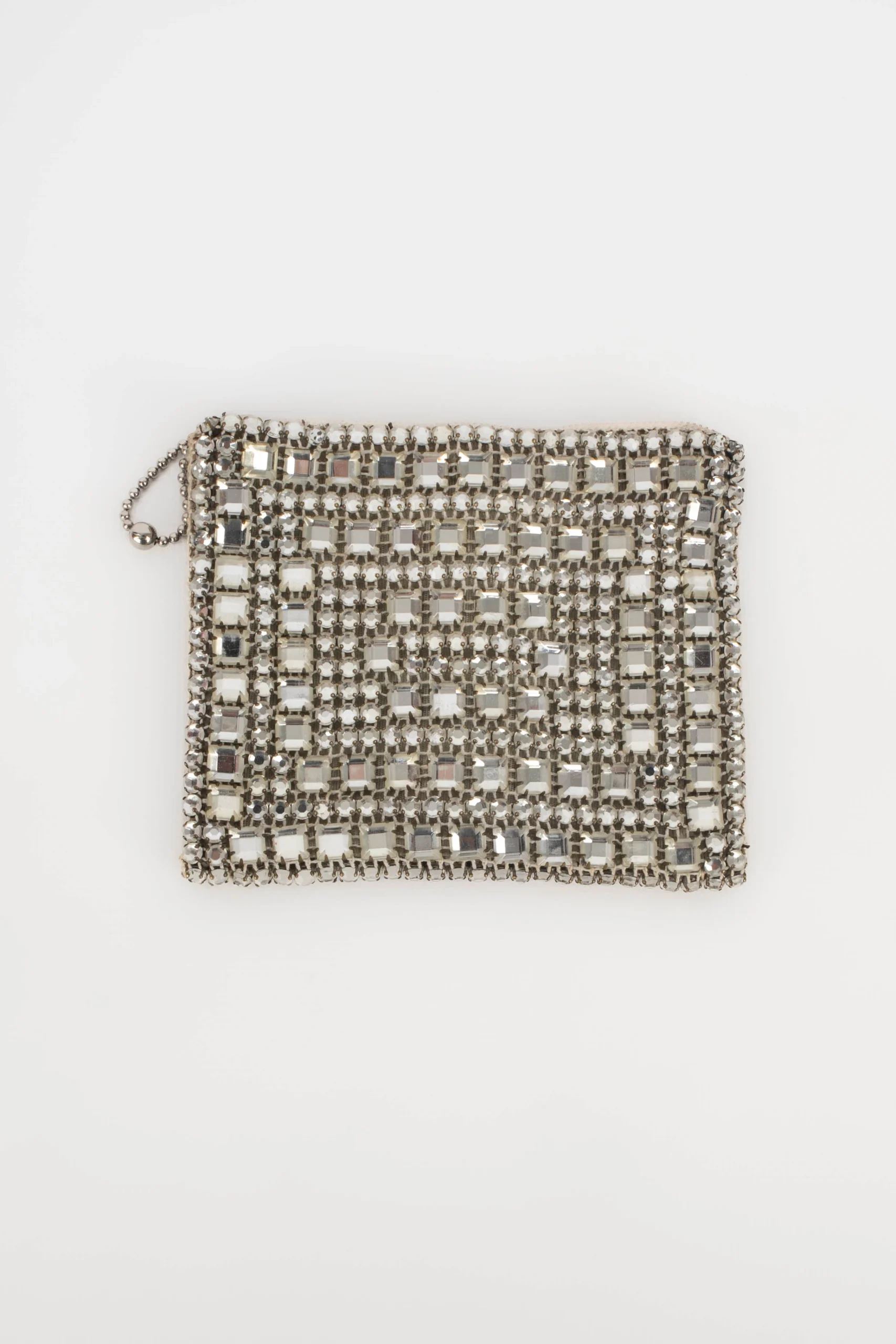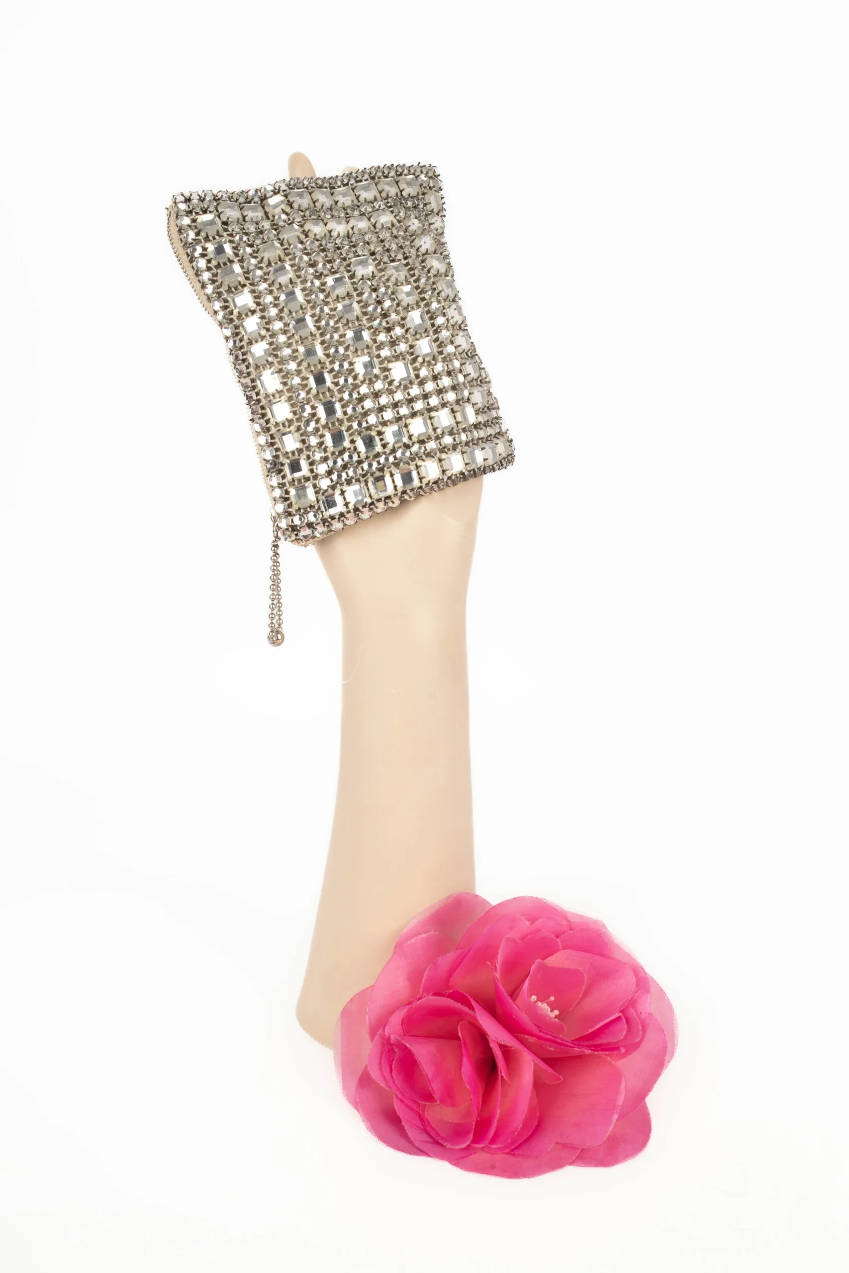 ANONYME -Joli petit sac du soir en tissu et strass argenté datant des années 1930. L’intérieur comporte des traces. Condition : Bon état Dimensions : 13 cm x 10 cm