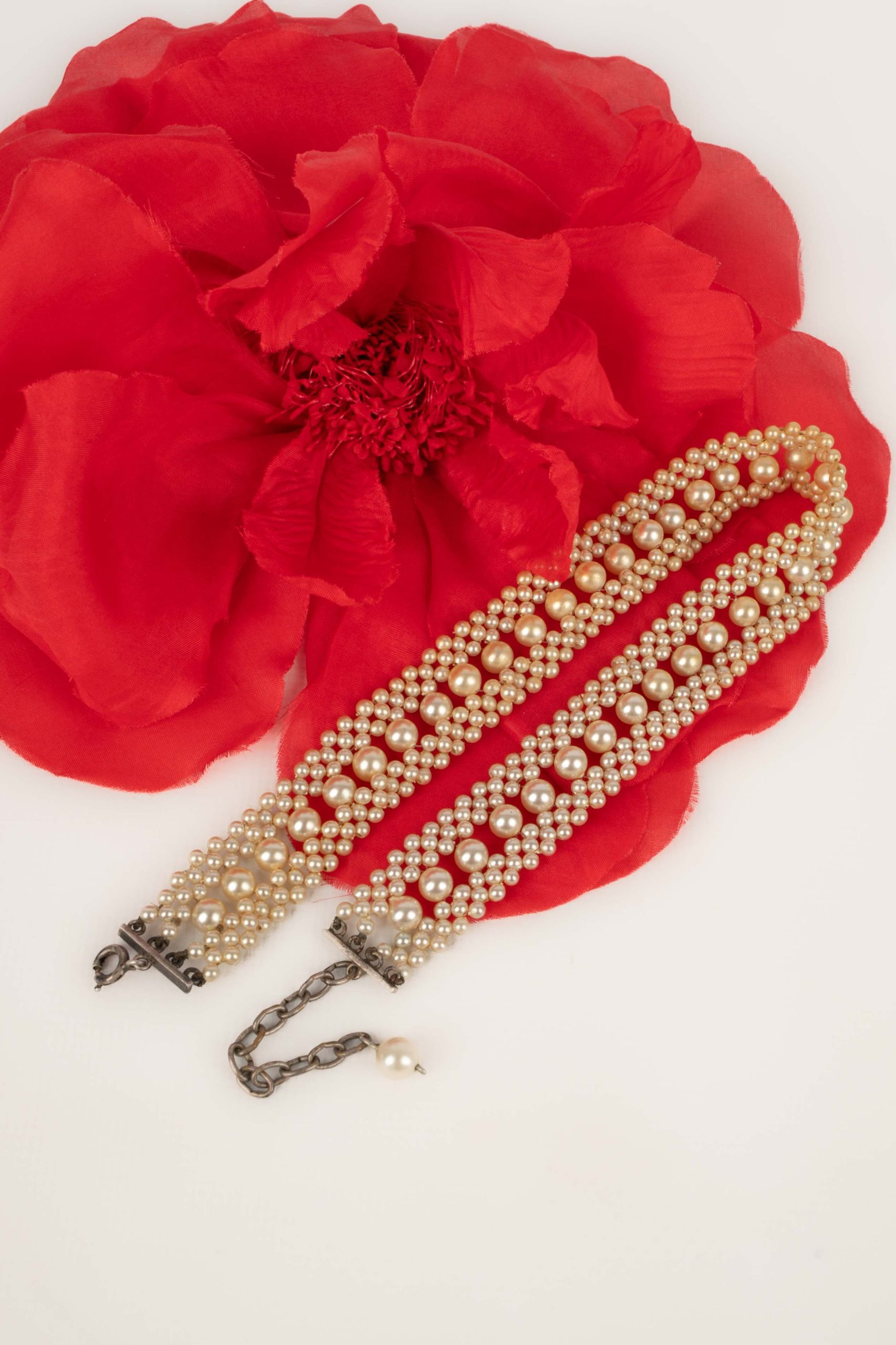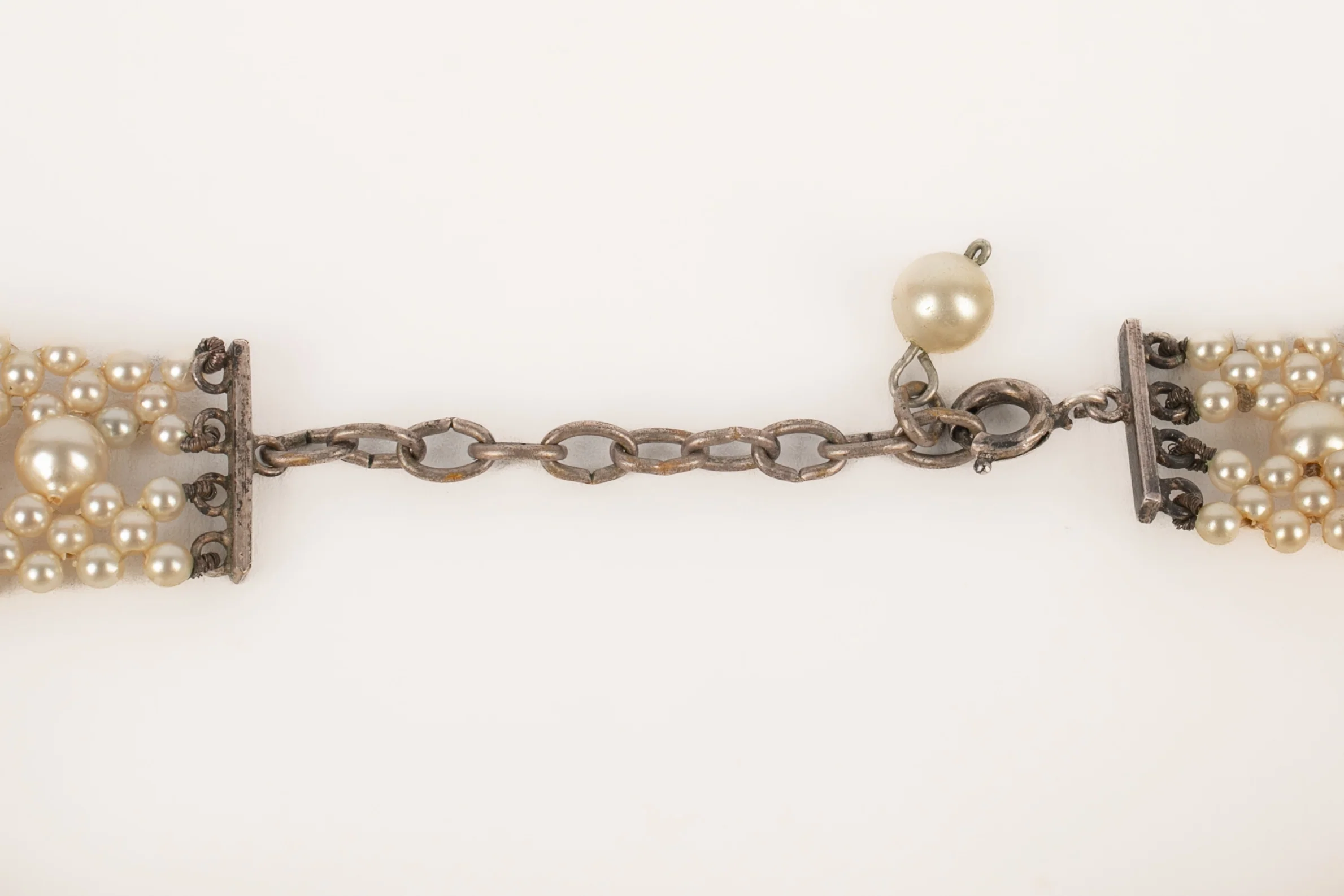 ANONYME -Collier ras de cou en perles nacrées fantaisies et métal argenté datant des années 1920.