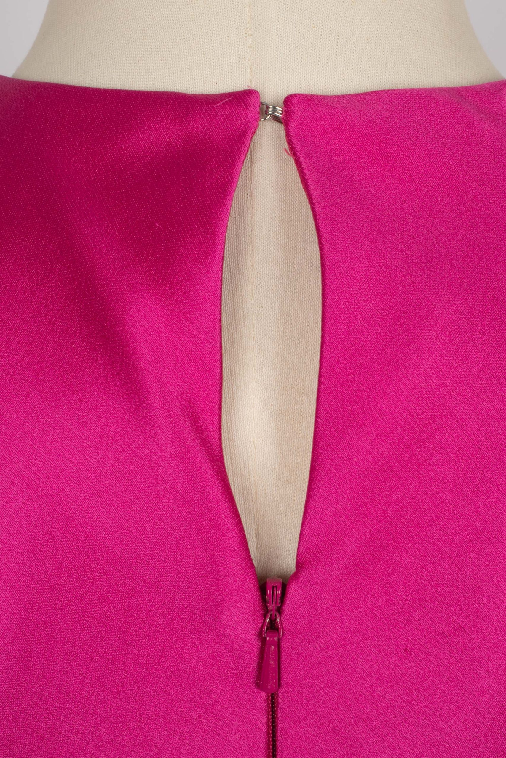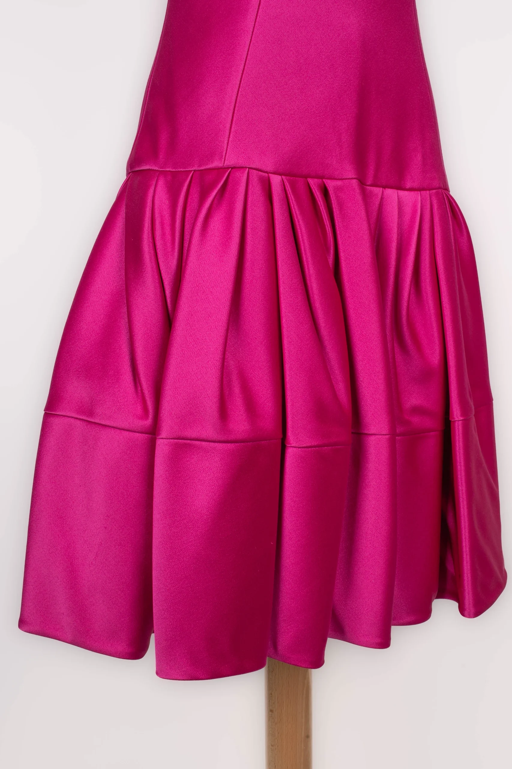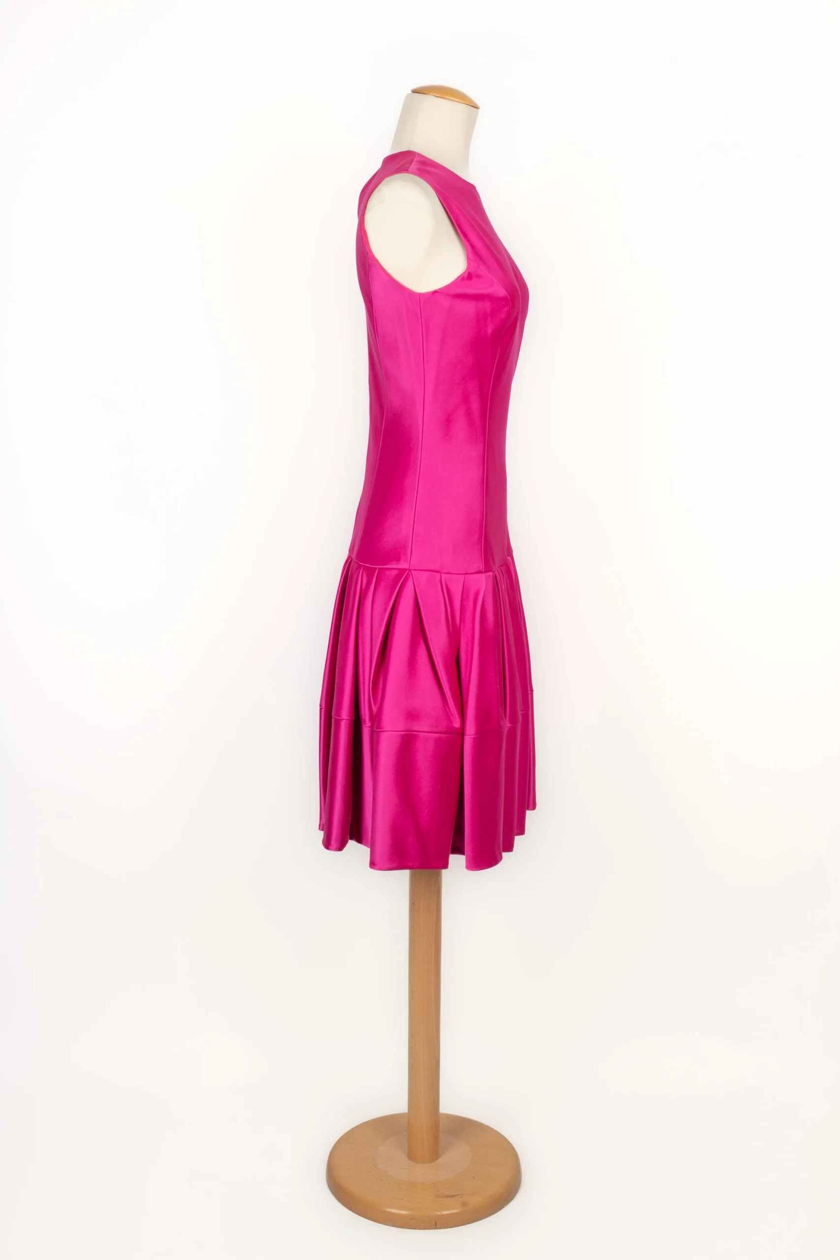 DIOR -(Made in France) Robe sans manches en satin fuchsia. Taille indiquée 36FR. Collection Pre-fall 2012, sous la direction de Raf Simons. Etiquette de marque absente.